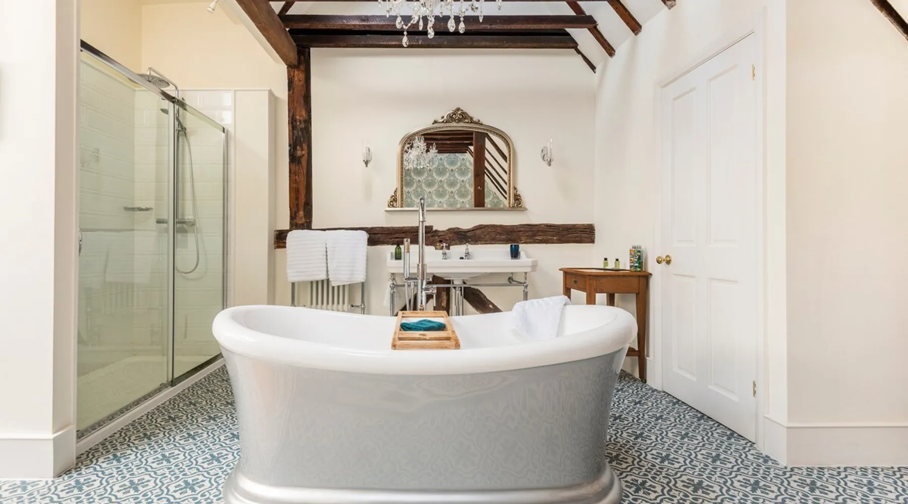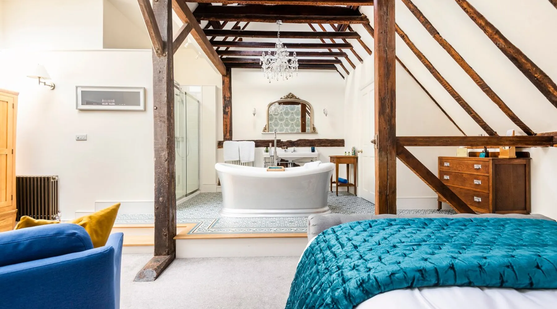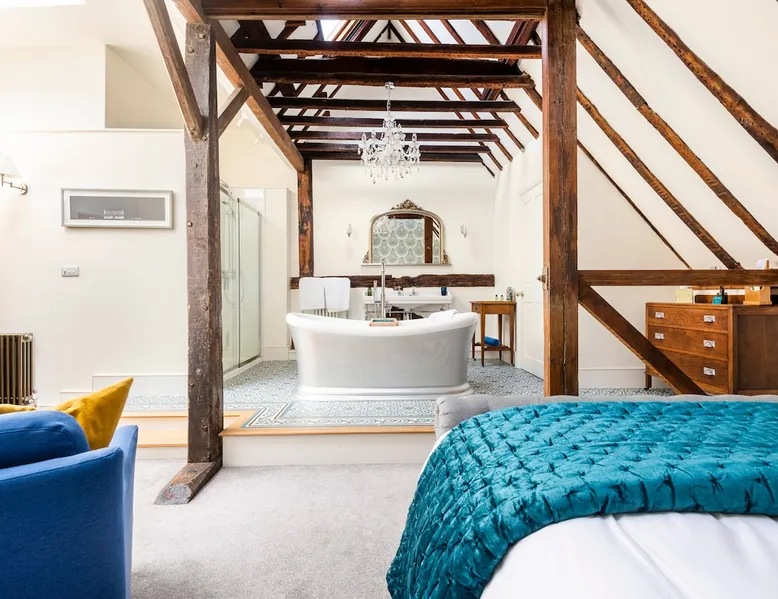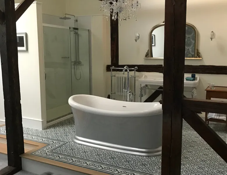Welcome to Number 5 Rye. This beautifully refurbished large bedroom with superb open en-suite is the perfect place for anybody wishing to spend a couple of days or more visiting the historic and ancient town of Rye. The bedroom consists of a king size bed and seating area, whilst the open en-suite boasts a magnificent double ended slipper bath, extra large shower and private enclosed toilet. The perfect space for that extra special romantic treat or special occasion getaway. The space A lovely light and airy room in one of the oldest rooms of our property, offering private space for visitors to Rye. Completely remodelled and refurbished in 2018, the room includes a king sized bed, large wardrobe, chest of drawers plus tea and coffee making facilities. The large open En-suite private bathroom includes a freestanding slipper bath, large separate shower and enclosed toilet. Guests may also make use of a guest sitting room with views across the rural landscape. Leading directly off the guest sitting room is a roof terrace which guest are more than welcome to use to watch the gorgeous sunsets of Rye. The TV with DVD player are also available. This is a quality home from home in our boutique bed and breakfast at Number 5 Rye. During your stay We are here to help you enjoy your visit to Rye and are on hand if needed. Other things to note Please note the property is located on the first floor and access is via stairs from the ground floor. Due to the configuration of the house, we are unable to accept guests with babies or children. Weekend bookings require a minimum of 2 nights. Parking is available from £2.50 per day in the Cattle Market Car Park, which is located approximately 2 minutes walk away. Alternatively parking is also available at Rye Station. Bicycles can be securely stored in the property. If driving, when arriving drop off your bags at our front door and then go and park your car in the car park which is 2 minutes walk from our house.