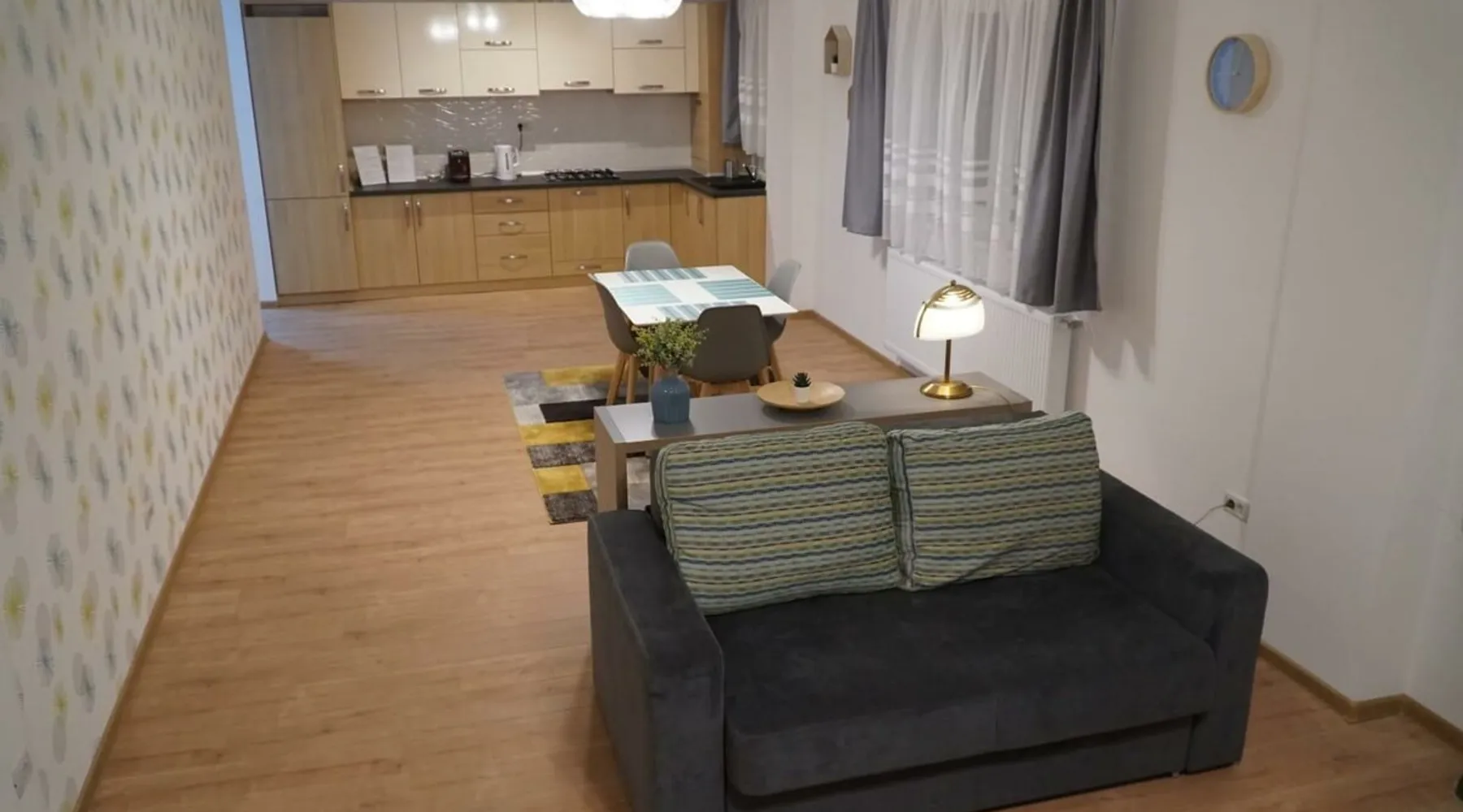 Scandinavian style which decorate the condo are special and was made by an important local designer. The confort was the first requirment for designer team. The condo are located at the top of the building and from the terace of ap. the view of the lake which are not far from building is amazing. The space Very nice, new and special decorated apartment. All goods, furniture, the whole building which include the place are new. The View from the terace are spectacular. The apartment have many facilities. Other things to note Many shopping places and restaurants are near.