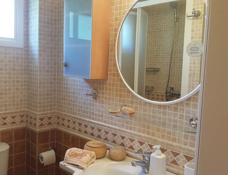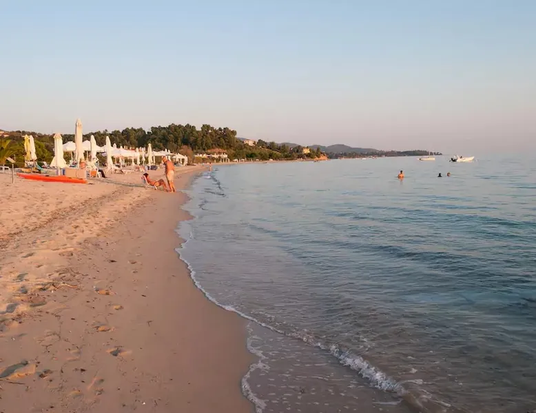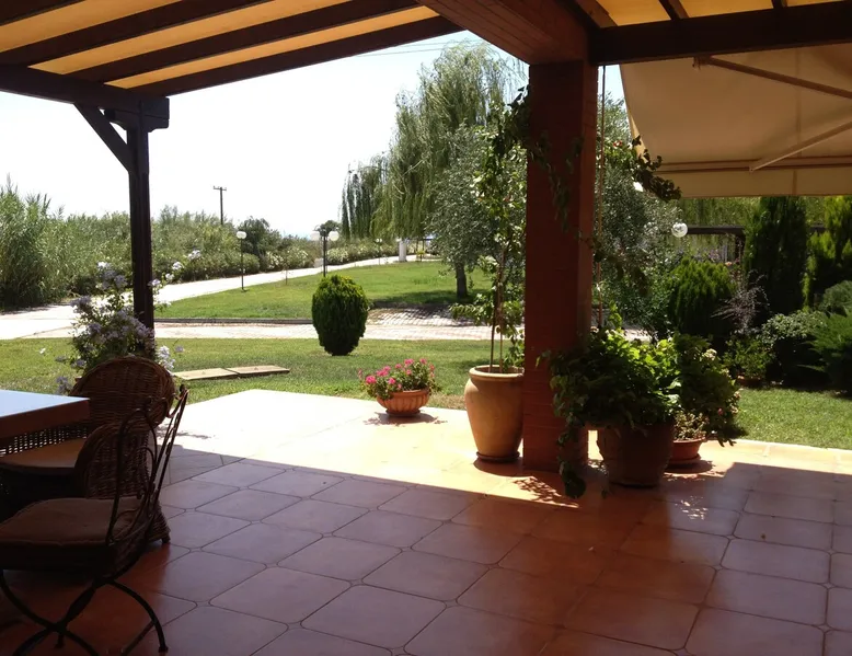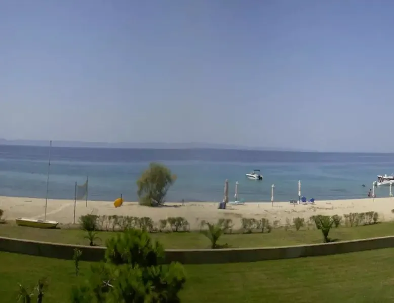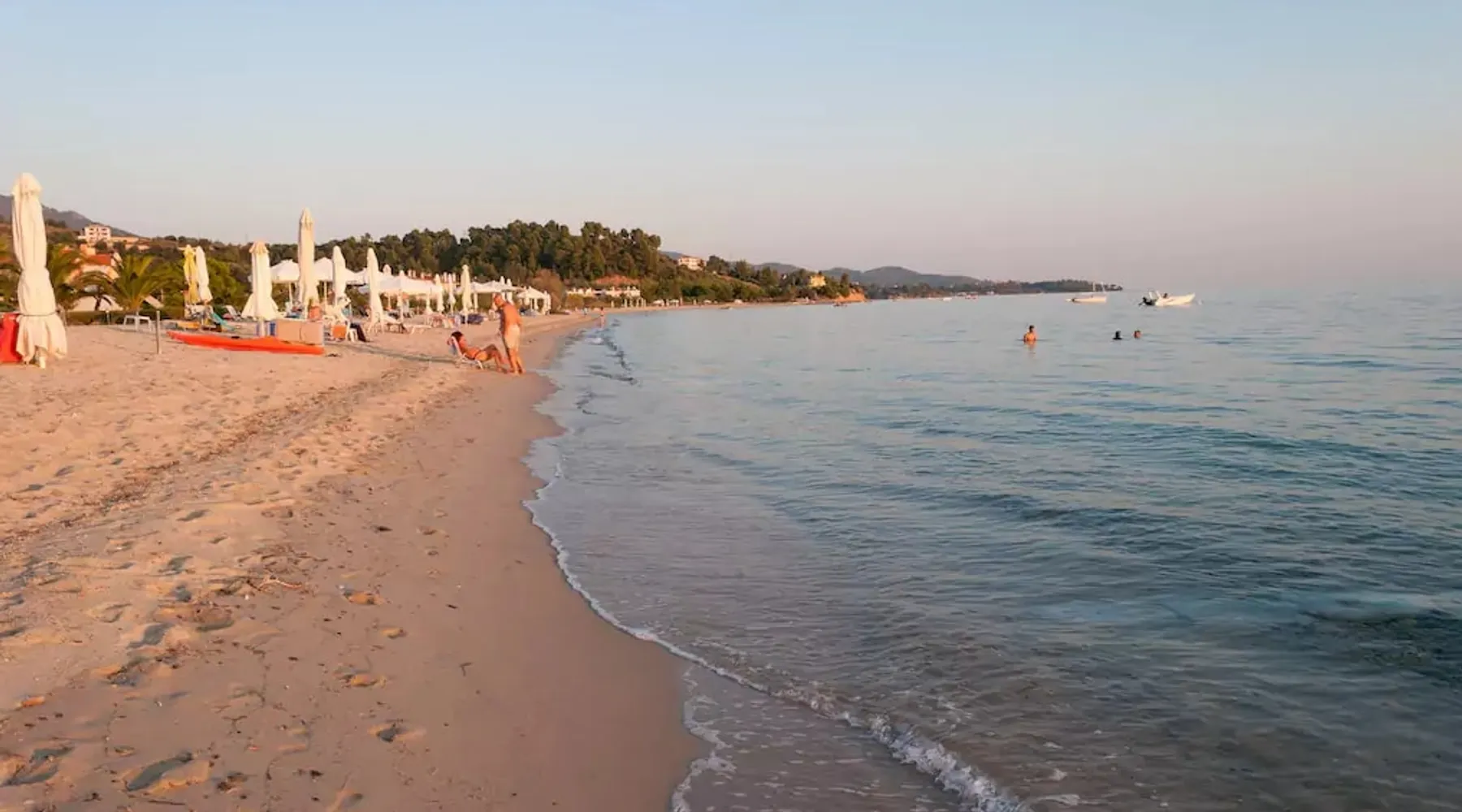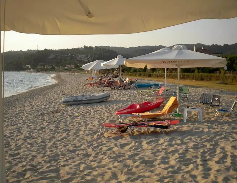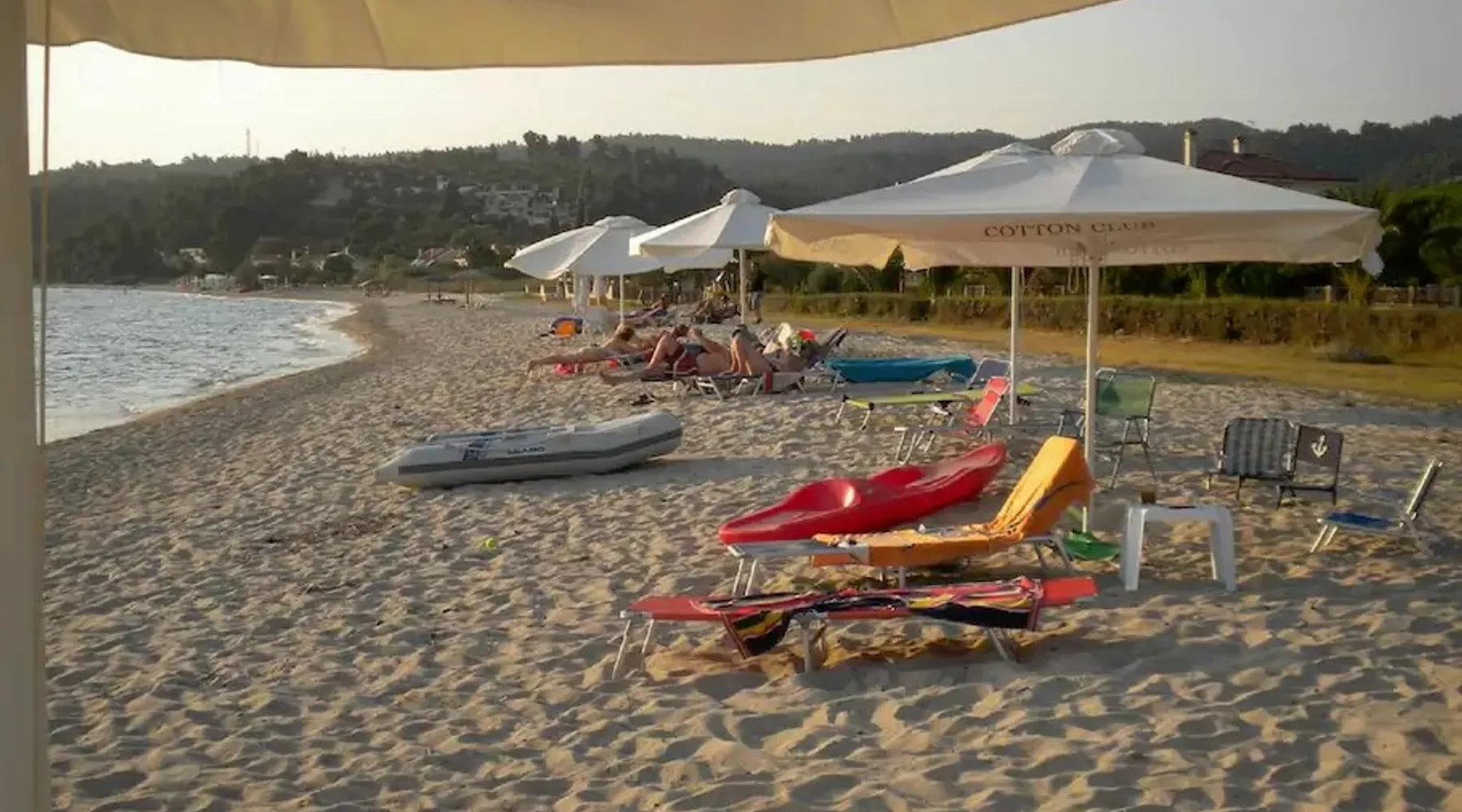 80m2, 3 floors. Fully furnished. Fully airconditioned. Comfortably accommodates 5 people. Ground floor : fully furnished living room, TV, fully equipped kitchen (fridge/freezer, oven, dishwasher) bathroom, washing machine. 1st floor: 2 bdrs. with shared balcony, bathroom. 2nd floor: attic 1 bdr. 2 private spacey porches with patio furniture. Surrounded by a large area of green lawn and a garden. 2 private roofed parking spaces Direct access to the beach. Private umbrella with 2 sunbeds. The space This exclusive property is located in Halkidiki, Sithonia, Neos Marmaras in the area Tripotamos (see details in section below). It is located just 50 meters away from a serene golden sand shore with crystal clear waters. The beach is one of the most secluded ones in the area. We provide our visitors with a private umbrella as well as two sunbeds of which they shall have exclusive use during their stay. The property is surrounded by a vast area of green lawn as well as a well-kempt garden. The vivid colors will mesmerize you and you can fully enjoy the lush surroundings while relaxing on either of the 2 verandas furnished with comfortable patio furniture, on the back and front of the house. On the inside, the house has a total area of 80m2 and is built in a 3 floor layout. It is fully furnished and can comfortably accommodate up to 5 people. It is fully air-conditioned in all floors and bedrooms. The ground floor consists of a fully furnished living room with a TV as well as a fully equipped kitchen (with a fridge/freezer, oven, sink, dishwasher, kitchen table, kitchen ware) and a bathroom with a washing machine. The first floor has two bedrooms - one with a king sized bed (2 persons) and the other with two single beds - both of which come with plenty of closet space and have access to a balcony with view of the sea. The bedroom in the attic is equipped with a sofa that unfolds into a double bed. Our visitors have free and direct access to the beach which is no more than a few meters away. Registration Details 00000337329