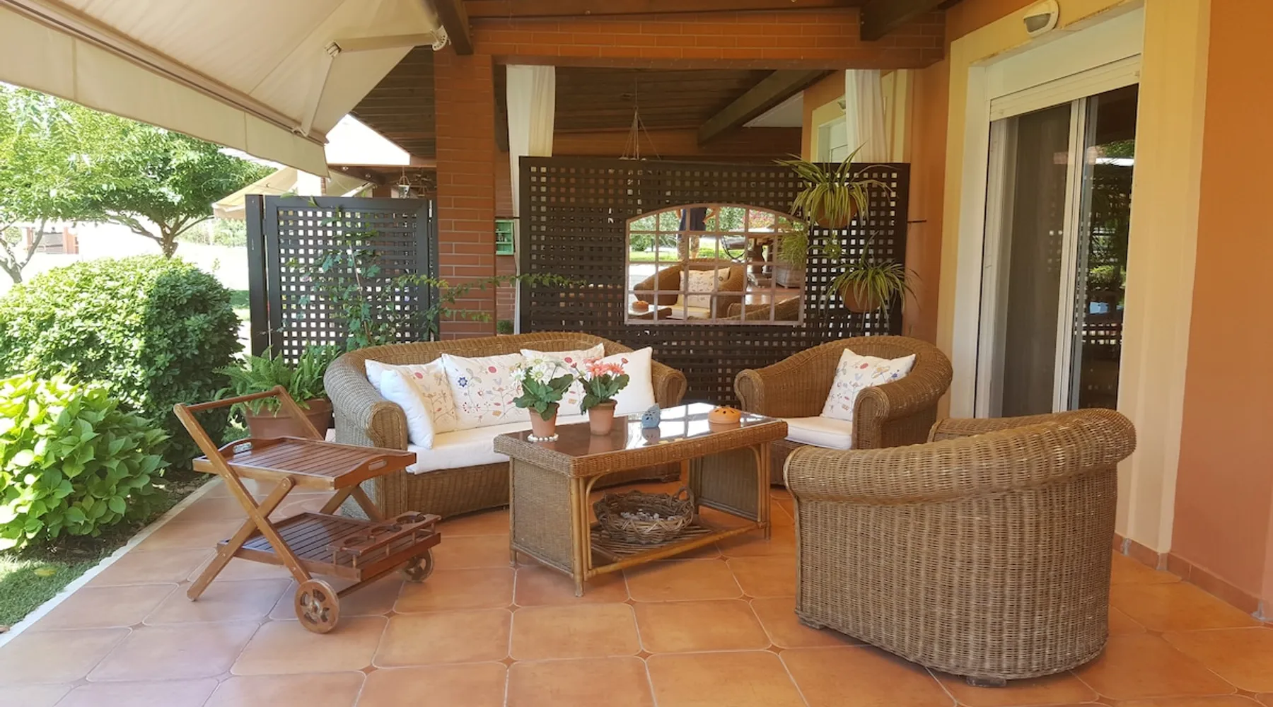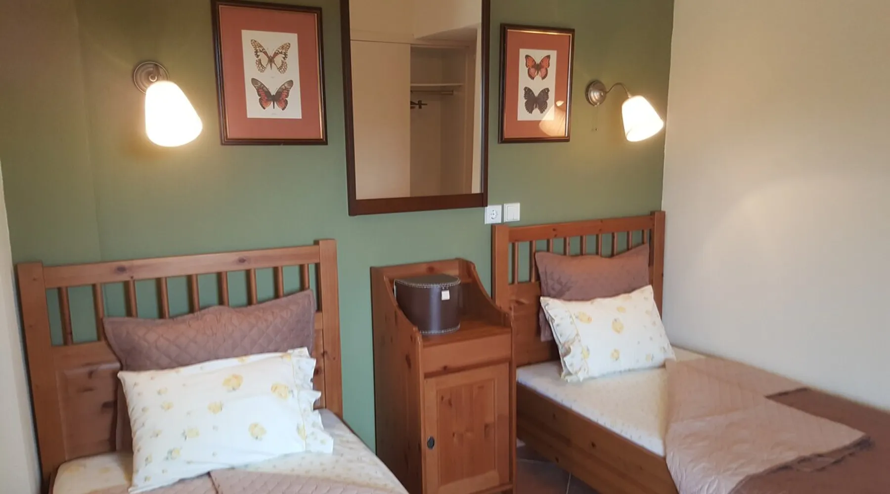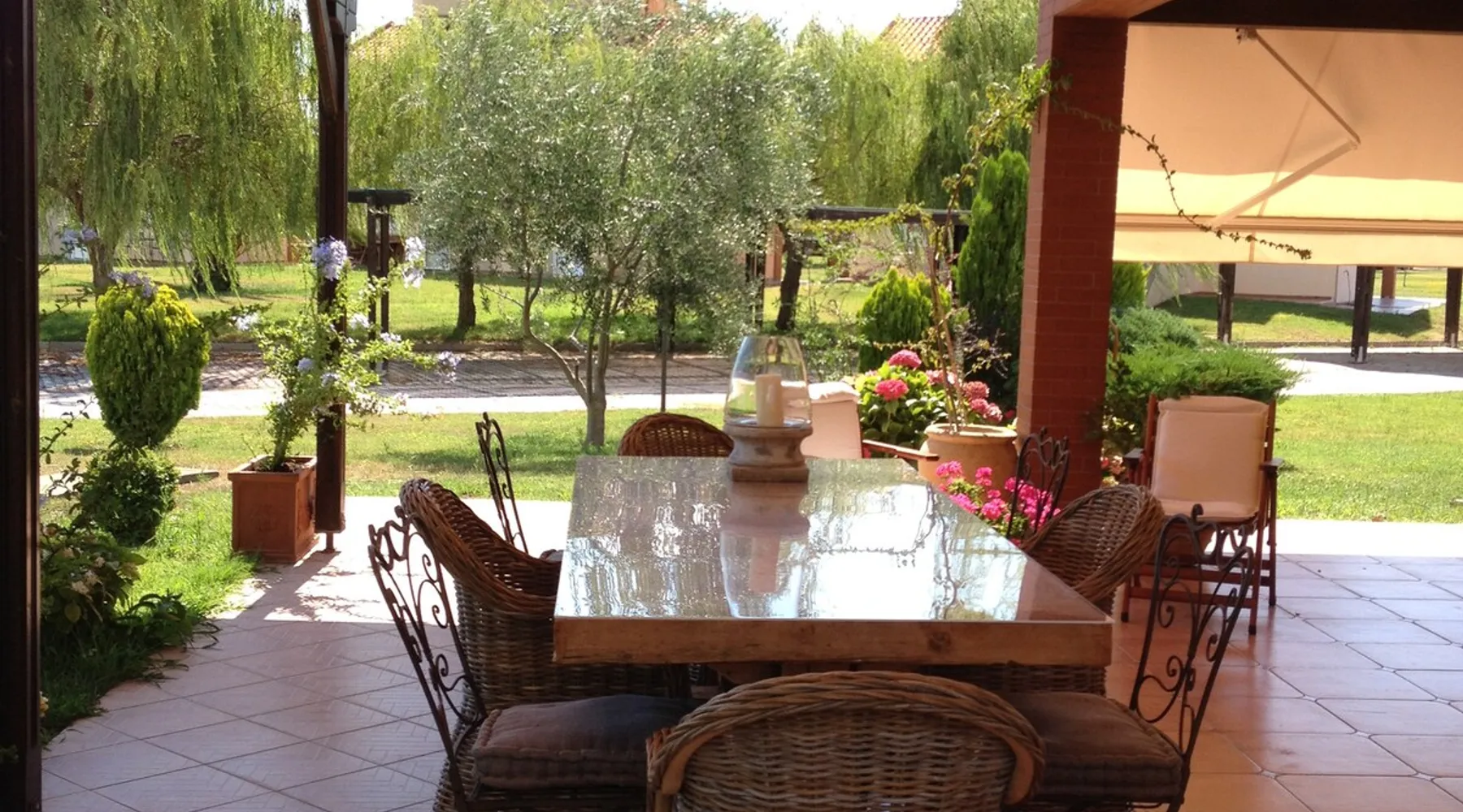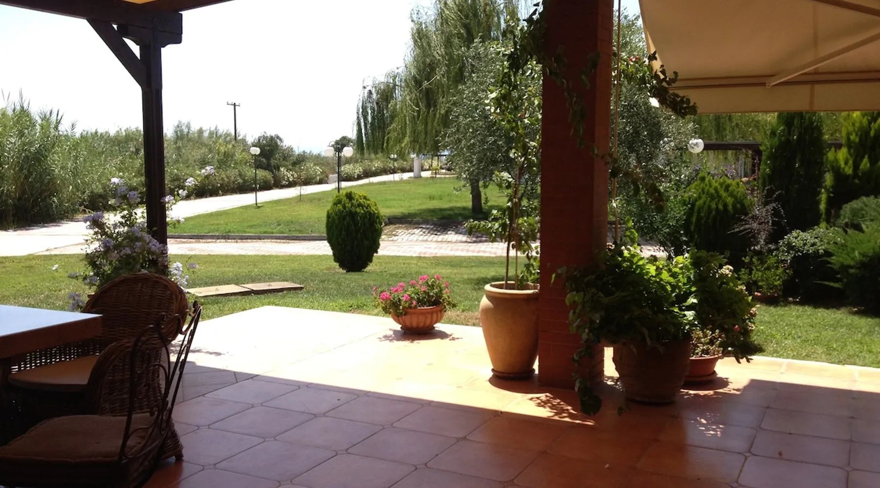 80m2, 3 floors. Fully furnished. Fully airconditioned. Comfortably accommodates 5 people. Ground floor : fully furnished living room, TV, fully equipped kitchen (fridge/freezer, oven, dishwasher) bathroom, washing machine. 1st floor: 2 bdrs. with shared balcony, bathroom. 2nd floor: attic 1 bdr. 2 private spacey porches with patio furniture. Surrounded by a large area of green lawn and a garden. 2 private roofed parking spaces Direct access to the beach. Private umbrella with 2 sunbeds. The space This exclusive property is located in Halkidiki, Sithonia, Neos Marmaras in the area Tripotamos (see details in section below). It is located just 50 meters away from a serene golden sand shore with crystal clear waters. The beach is one of the most secluded ones in the area. We provide our visitors with a private umbrella as well as two sunbeds of which they shall have exclusive use during their stay. The property is surrounded by a vast area of green lawn as well as a well-kempt garden. The vivid colors will mesmerize you and you can fully enjoy the lush surroundings while relaxing on either of the 2 verandas furnished with comfortable patio furniture, on the back and front of the house. On the inside, the house has a total area of 80m2 and is built in a 3 floor layout. It is fully furnished and can comfortably accommodate up to 5 people. It is fully air-conditioned in all floors and bedrooms. The ground floor consists of a fully furnished living room with a TV as well as a fully equipped kitchen (with a fridge/freezer, oven, sink, dishwasher, kitchen table, kitchen ware) and a bathroom with a washing machine. The first floor has two bedrooms - one with a king sized bed (2 persons) and the other with two single beds - both of which come with plenty of closet space and have access to a balcony with view of the sea. The bedroom in the attic is equipped with a sofa that unfolds into a double bed. Our visitors have free and direct access to the beach which is no more than a few meters away. Registration Details 00000337329