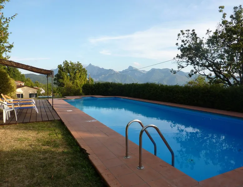 Spacious, rural Tuscan villa set among olive groves with stunning panoramic views & large, private pool. Florence, Lucca & Pisa are day trips,local beaches & the dramatic coastline of the Cinqe Terre are 45 mins by car, hill walks from your doorstep The space Two master bedrooms at the front of the house have full length French doors leading onto the full width south facing balcony with panoramic views across the valley and to the Alpe Apuane. The large twin rooms at the rear of the house look out over the garden and terrace. The separate bathroom and shower room are designed for all to access. Ample living areas downstairs include a wood burning oven, selection of guide books, reading books and board games. The farmhouse style kitchen is well equipped and there's plenty of space for indoor eating but the large terrace outside is the perfect place for leisurely meals, a beer or prosecco. The long garden leads to a large, private pool, backed by chestnut woods. Wake up to swallows gathering, watch fireflies and stars at night, listen to the cowbells, relax! Guest access The spacious villa is for your sole use. Registration Details IT045007C2LKPOGH8X