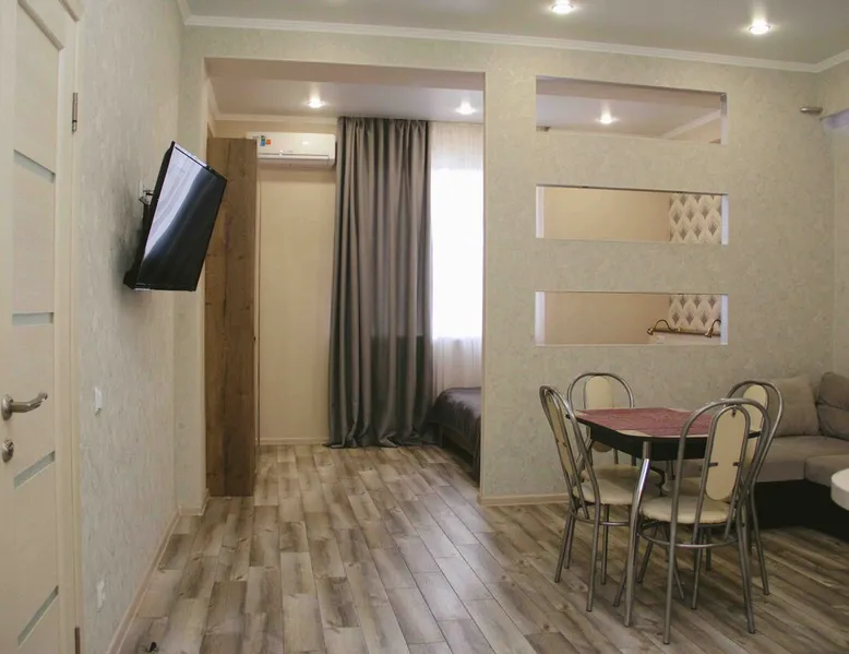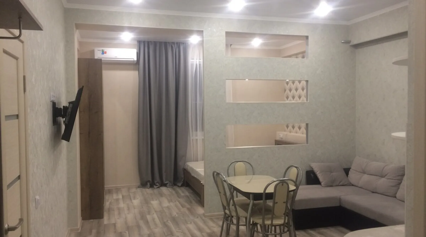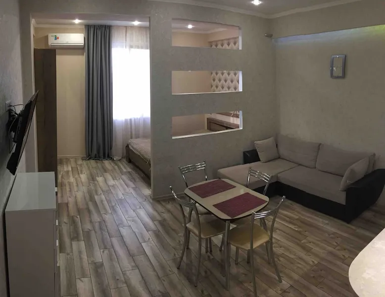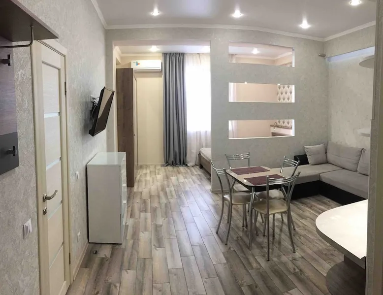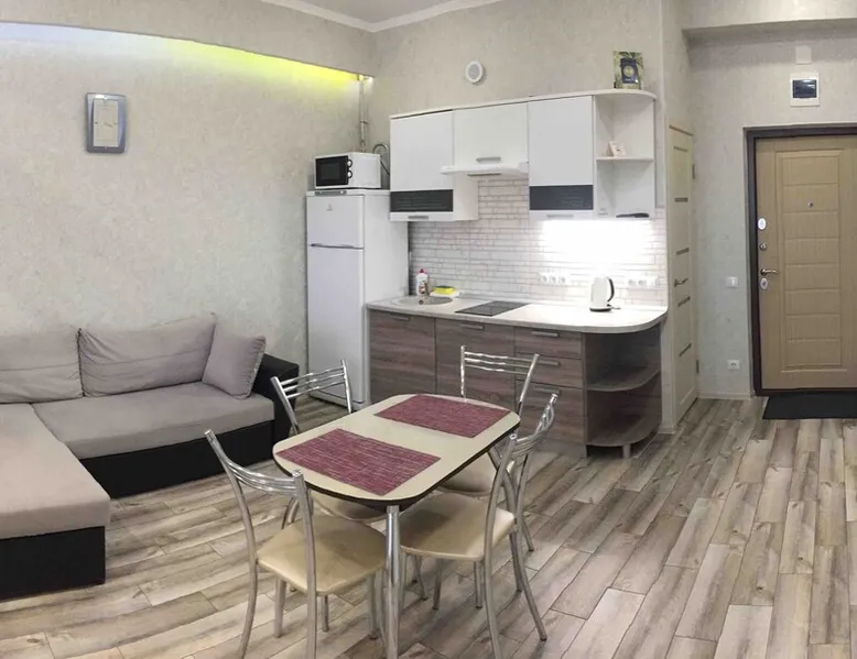 Hello dear guests!!! Our studio is designed for 4 people.The studio has everything you need for a comfortable stay,linen,all the necessary utensils, soap, shampoo, towels.iron,ironing board.Wi-Fi.Vacuum cleaner.Washing machine, TV.Parking Auto.The studio is located in a convenient place to relax,to the sea and entertainment complex Mandarin 4 minutes walk.Market.Family Hypermarket Magnet.Olympic Park is all within walking distance. The space Fully available for guests Other things to note Come in a good mood and we will give you more!!!!