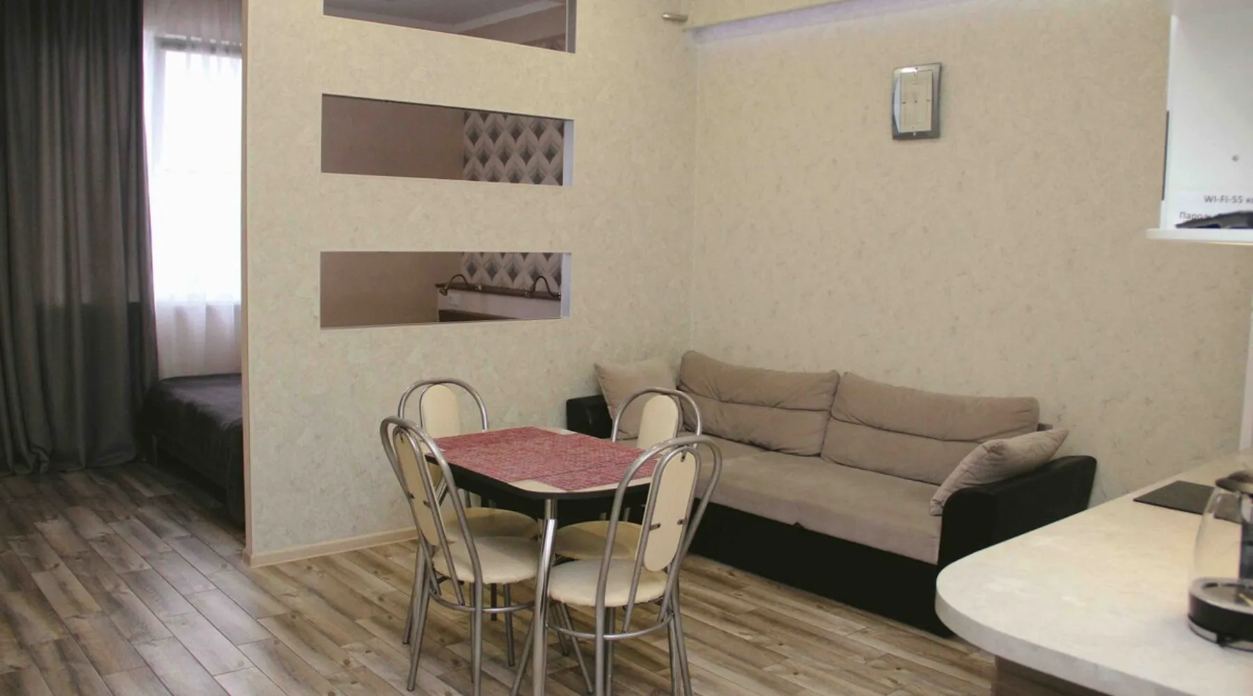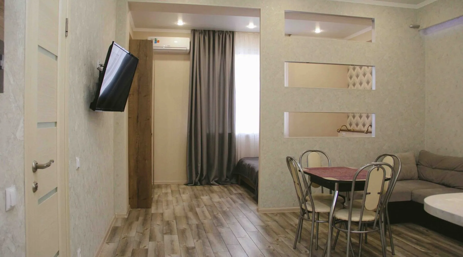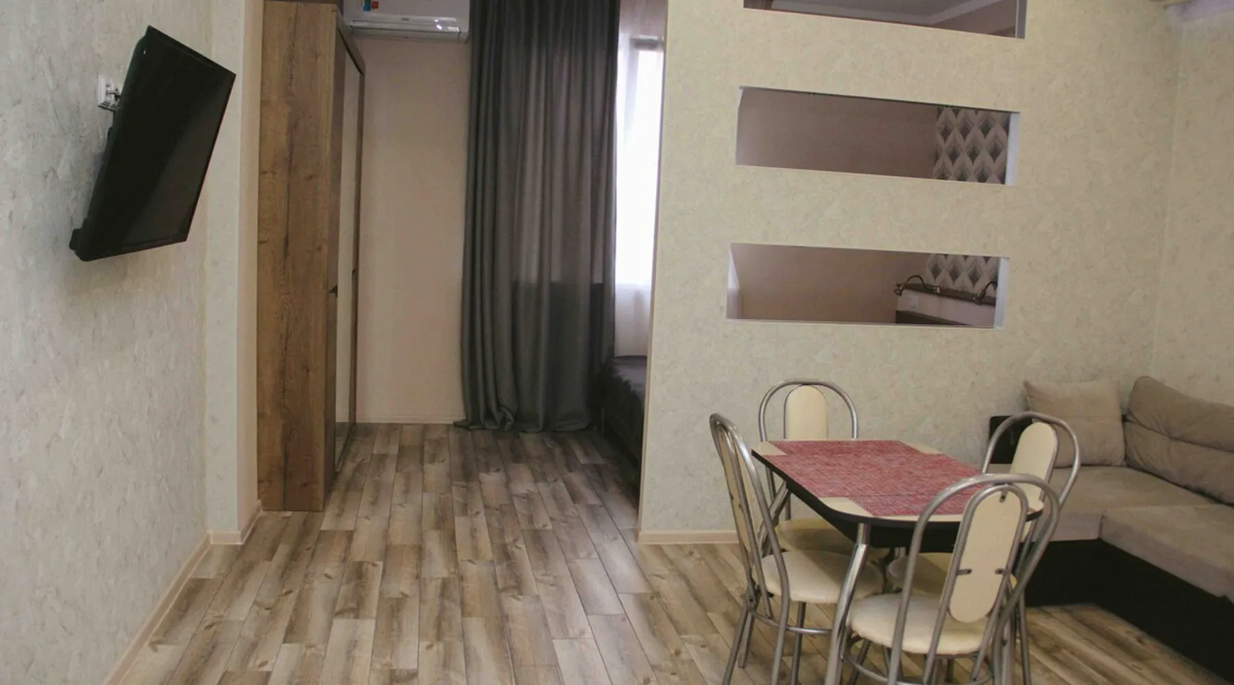 Hello dear guests!!! Our studio is designed for 4 people.The studio has everything you need for a comfortable stay,linen,all the necessary utensils, soap, shampoo, towels.iron,ironing board.Wi-Fi.Vacuum cleaner.Washing machine, TV.Parking Auto.The studio is located in a convenient place to relax,to the sea and entertainment complex Mandarin 4 minutes walk.Market.Family Hypermarket Magnet.Olympic Park is all within walking distance. The space Fully available for guests Other things to note Come in a good mood and we will give you more!!!!