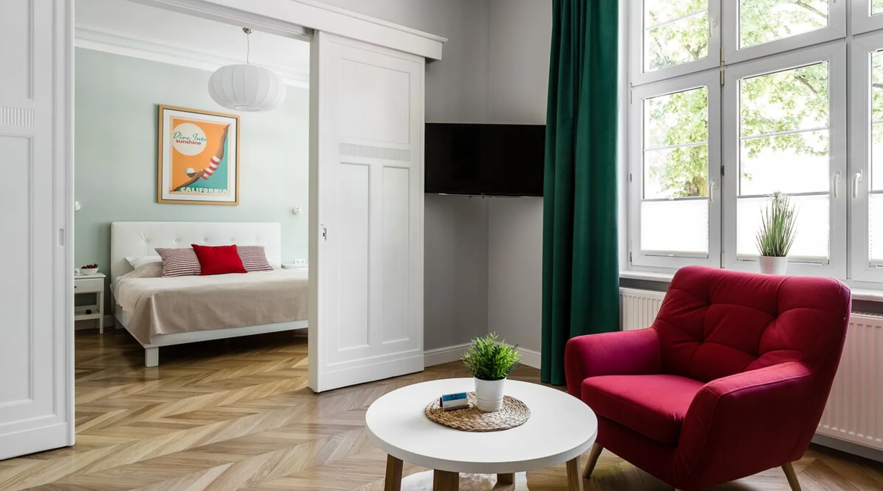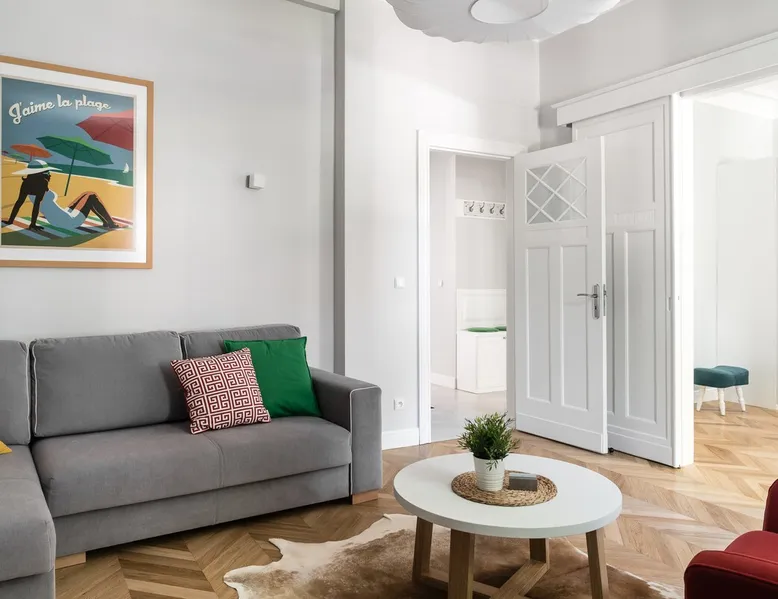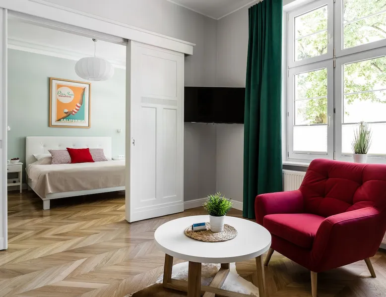 Monaco 1 is located in a tenement house full of elegance and class. The apartment is equipped with a spacious bedroom and a living room, which is also equipped with a sofa bed with sleeping option. High quality materials and attention to the smallest details combined with the perfect location of lower Sopot will appeal to anyone craving rest. The space The apartment is fully equipped with modern appliances, ensuring a comfortable stay for both families and groups of friends. It is designed for up to 4 people. It offers a cozy bedroom with a double bed, a spacious living room with a sofa bed, a fully equipped kitchen and a small balcony. Additionally, the apartment has a bathroom with a shower. Both the bedroom and the living room have LED TVs with access to cable TV, which will make the time spent in this unique place more pleasant. Other things to note Check-in takes place at the Sanhaus Apartments office .The office is open from 09.00 to 19.00. If you arrive after office hours, please contact us. Thank you. The desire to receive a VAT invoice can only be reported at the time of booking.