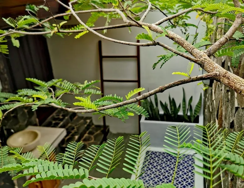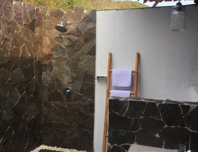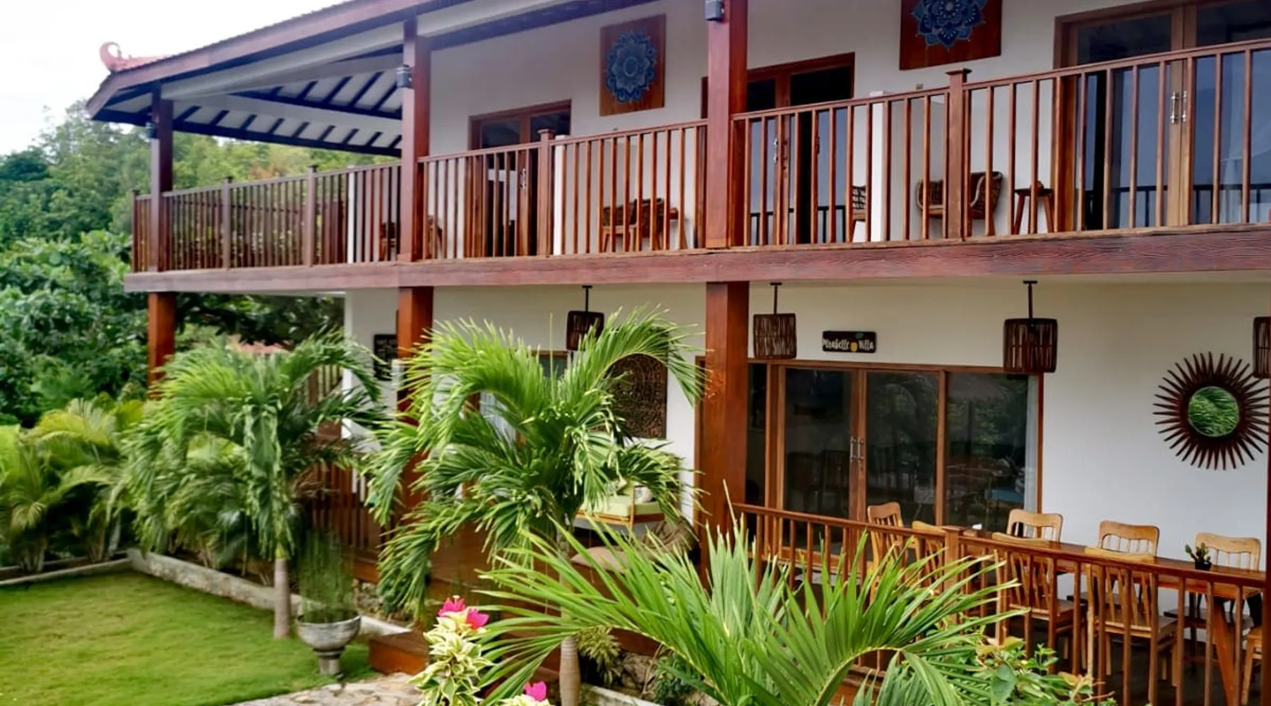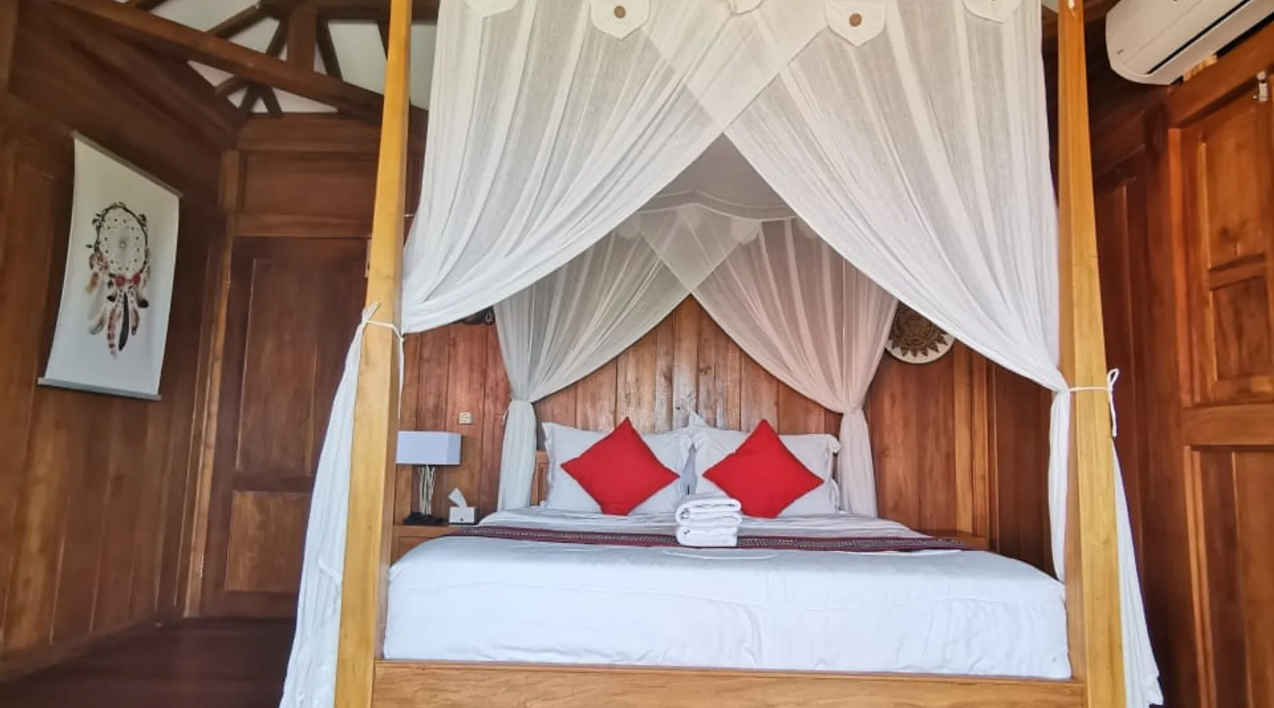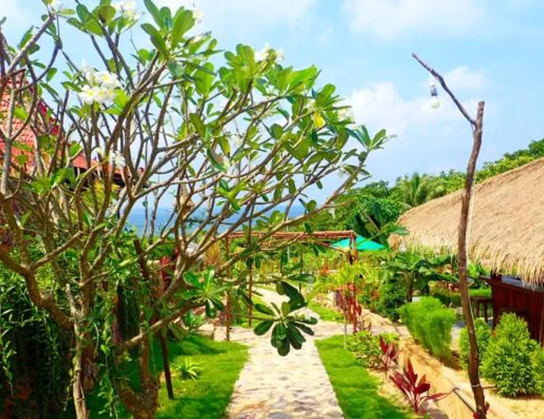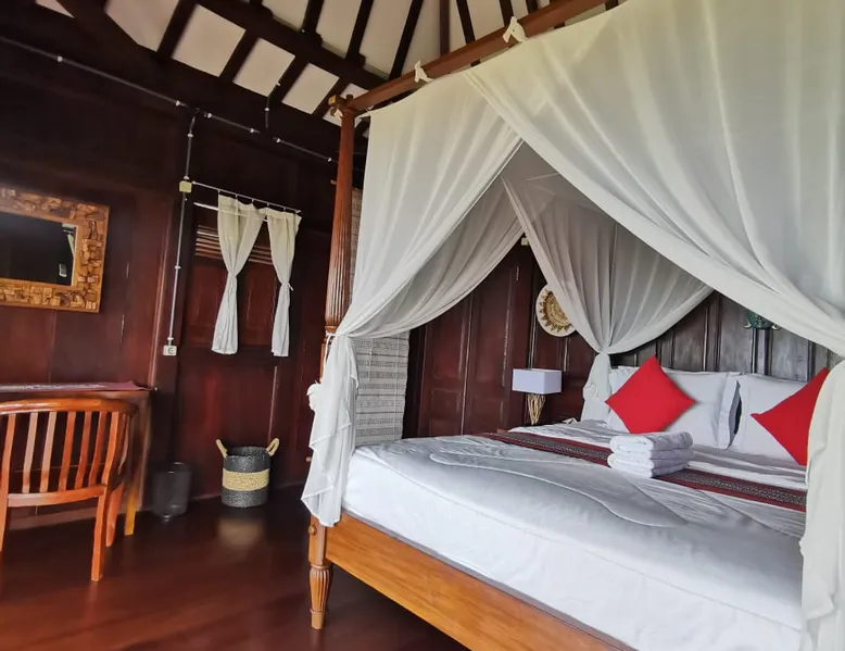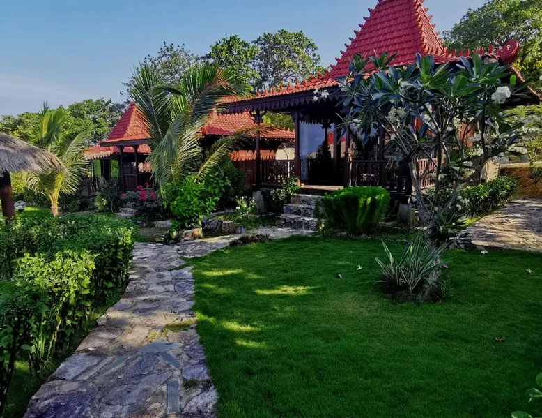 Situated in the most quiet area (but less 5min from center by scooter), Mirabelle Joglo Village is a unique experience for nature lovers searching for a peacefull place in harmony with nature. Traditionnal javanese-design village where you can enjoy your stay without the noise of the center and its loud mosquee.With a 32 meter square of cozy living space, our bungalows are ideal for a couple looking for a getaway in a more private setting.Each bungalow offer private terrace and view on the sea