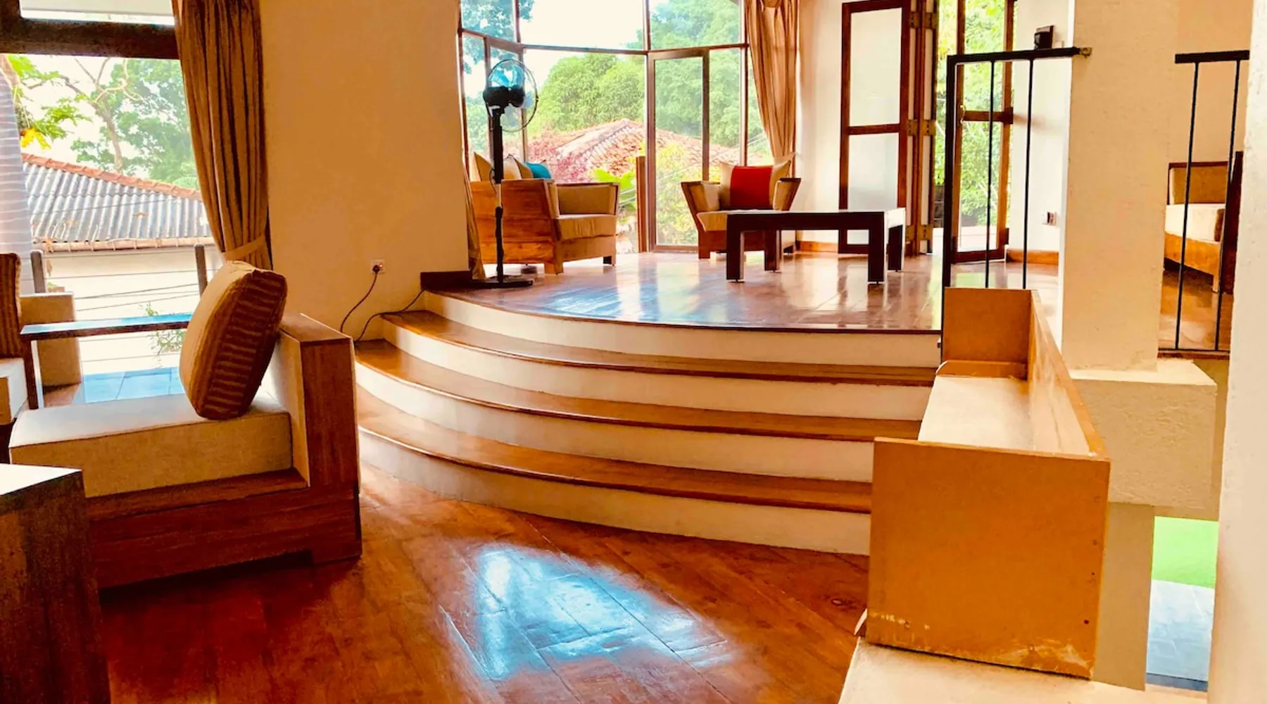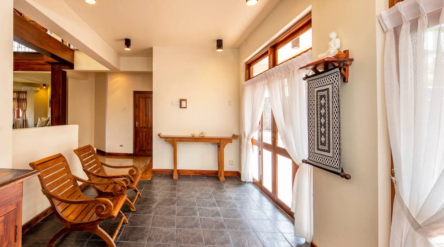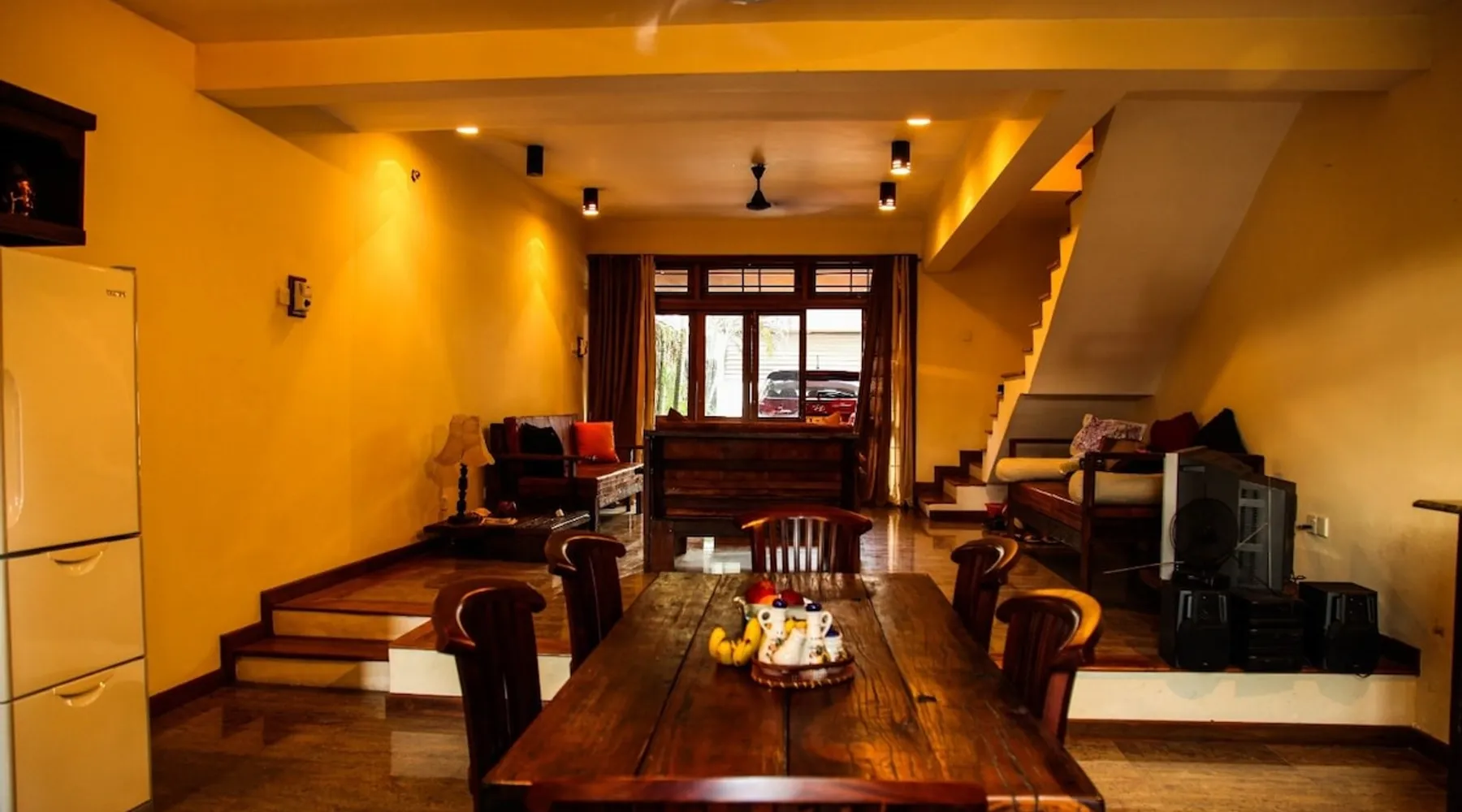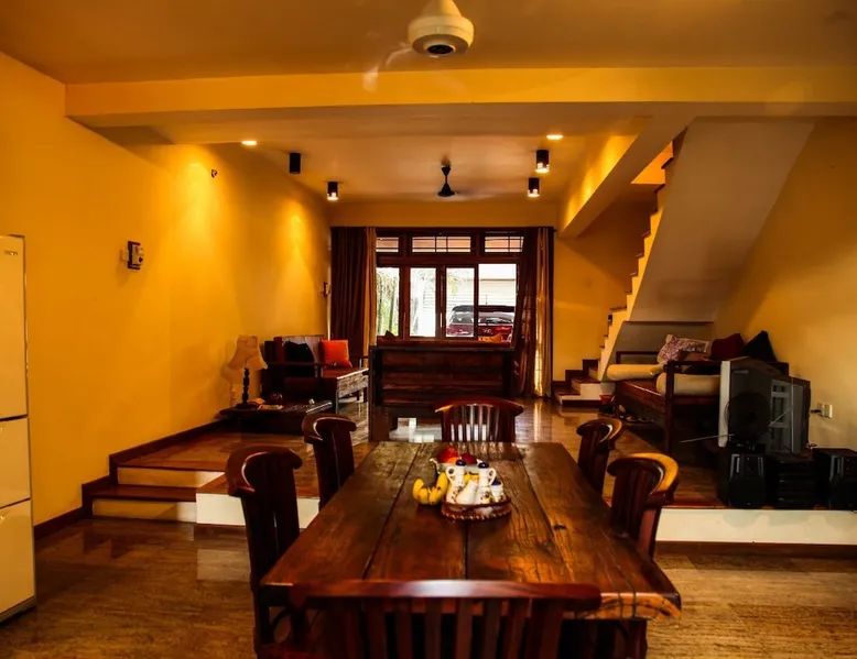 Grand home for vacations, reunions, events in Colombo suburb. Unique indoor outdoor space. Sleeping accommodation for 5 couples and one single. Total of 11 people. Two more kids sharing bed. Full-time caretaker and chef for Srilankan food. Partial view of Diyawanna lake and parliament. Can rent only the main house, only the guest house or all six bed-rooms. Guest number based fees. 500$ a day fee outside guests for events or gathering. The space Grand home for vacations, gatherings, retreats or reunions for extended family, friends or colleagues in Colombo suburb. Full-time caretaker/butler for help with utilizing home. Uber eats or hire a private chef for catering. Minimum stay is one week. Special higher rates for shorter stays or events. Safe and secure neighborhood by security given to parliament. Partial view of lake and parliament. Expansive outdoors-indoors entertaining spaces. Second floor of main home has two large entertaining spaces. Seven-foot walls with granite stone, roller gates and a charming private-gated formal entrance gives complete privacy even with all doors and windows open. Separate entrance for guest house. Both units connected by the backyard to make one interconnected if needed or used separately. Neat contemporary garden designed with pavers, grass, planters and warm night lighting for entertaining. Outdoor, covered, stainless steel kitchen with granite counters/bar, four-burner gas stove and teppanyaki- grill surface with many uses for catering or event hosting. AC in both homes. Each individual bed room and all common living space can be cooled. The 4800 sq foot main home has four bedrooms and 3 full en-suite bathrooms. Powder room/half bath and laundry. Outdoor/caretaker full bathroom. Caretaker bedroom. Full kitchen with stove, fridge/freezer, microwave, oven with outside exhaust. Smaller 1600 sq foot guest house has two full baths and two bed rooms. Another full kitchen with dish washer, stove/oven, microwave and fridge. Another washer and dryer. Two cars can be parked in main home and one car in smaller home. Elegant minimalist mahogany and teak furniture. Some valued family designed furniture from restored local wood. Each bedroom with closet space or almirahs. King/queen beds and one single bed. Linen bedding. Can rent only one or more rooms, entire main house, only the guest house or all six bed-rooms. Eleven adults and five children can be accommodated. Listed price is for one adult, to encourage travelers on work, add fees for more guests. Contact host travel plan. Guest access Entire property. Caretaker being available at all times is very helpful to maintain and utilize various facilities at home and to avoid calls to host. Other things to note Close to hospital, parliament, major highways, and shopping and lake/parks/walking paths.