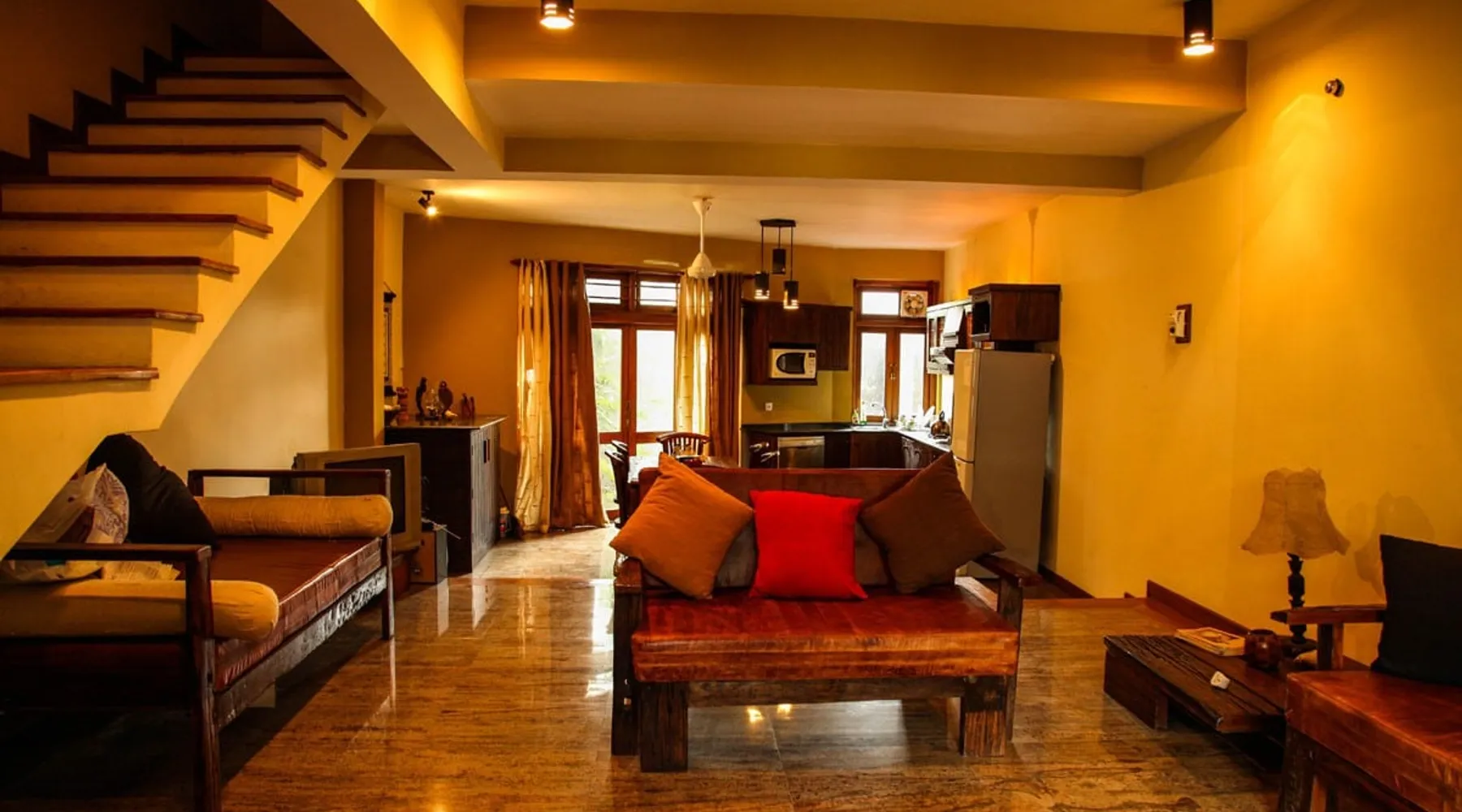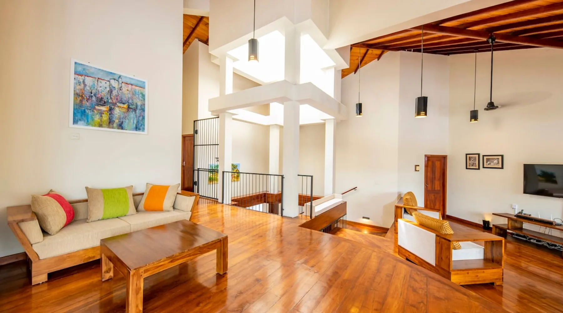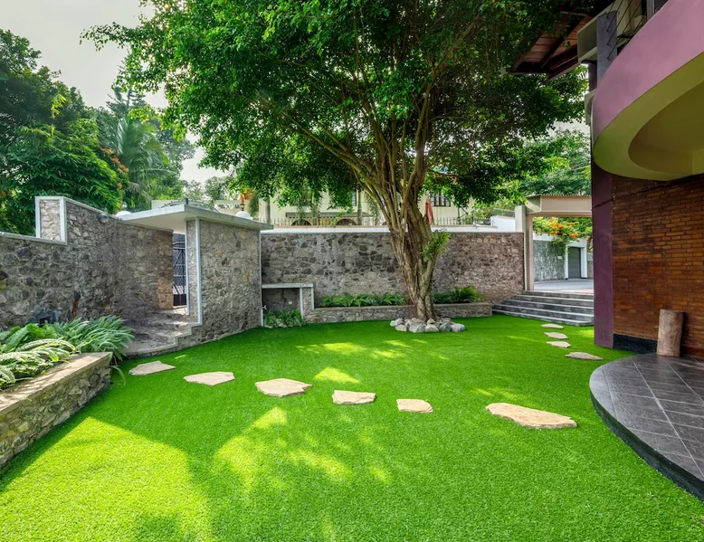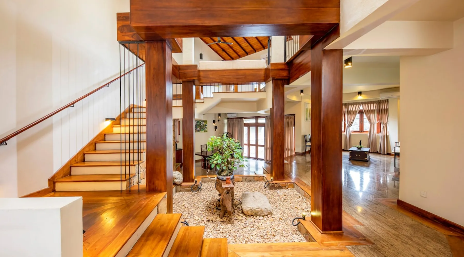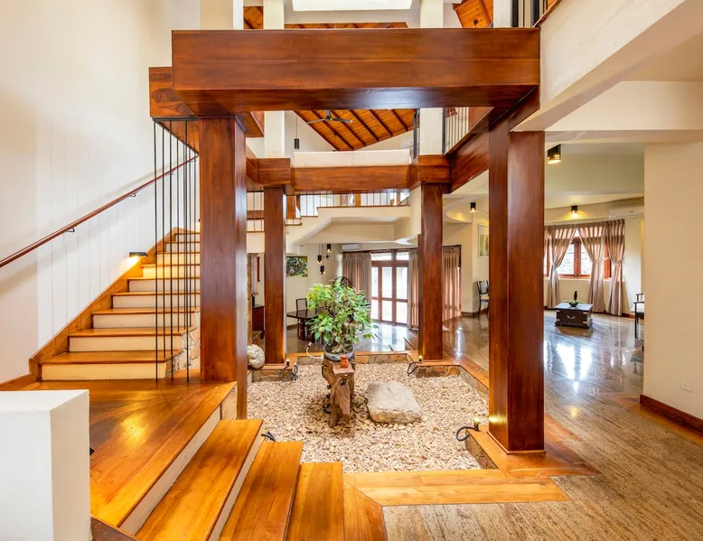 Grand home for vacations, reunions, events in Colombo suburb. Unique indoor outdoor space. Sleeping accommodation for 5 couples and one single. Total of 11 people. Two more kids sharing bed. Full-time caretaker and chef for Srilankan food. Partial view of Diyawanna lake and parliament. Can rent only the main house, only the guest house or all six bed-rooms. Guest number based fees. 500$ a day fee outside guests for events or gathering. The space Grand home for vacations, gatherings, retreats or reunions for extended family, friends or colleagues in Colombo suburb. Full-time caretaker/butler for help with utilizing home. Uber eats or hire a private chef for catering. Minimum stay is one week. Special higher rates for shorter stays or events. Safe and secure neighborhood by security given to parliament. Partial view of lake and parliament. Expansive outdoors-indoors entertaining spaces. Second floor of main home has two large entertaining spaces. Seven-foot walls with granite stone, roller gates and a charming private-gated formal entrance gives complete privacy even with all doors and windows open. Separate entrance for guest house. Both units connected by the backyard to make one interconnected if needed or used separately. Neat contemporary garden designed with pavers, grass, planters and warm night lighting for entertaining. Outdoor, covered, stainless steel kitchen with granite counters/bar, four-burner gas stove and teppanyaki- grill surface with many uses for catering or event hosting. AC in both homes. Each individual bed room and all common living space can be cooled. The 4800 sq foot main home has four bedrooms and 3 full en-suite bathrooms. Powder room/half bath and laundry. Outdoor/caretaker full bathroom. Caretaker bedroom. Full kitchen with stove, fridge/freezer, microwave, oven with outside exhaust. Smaller 1600 sq foot guest house has two full baths and two bed rooms. Another full kitchen with dish washer, stove/oven, microwave and fridge. Another washer and dryer. Two cars can be parked in main home and one car in smaller home. Elegant minimalist mahogany and teak furniture. Some valued family designed furniture from restored local wood. Each bedroom with closet space or almirahs. King/queen beds and one single bed. Linen bedding. Can rent only one or more rooms, entire main house, only the guest house or all six bed-rooms. Eleven adults and five children can be accommodated. Listed price is for one adult, to encourage travelers on work, add fees for more guests. Contact host travel plan. Guest access Entire property. Caretaker being available at all times is very helpful to maintain and utilize various facilities at home and to avoid calls to host. Other things to note Close to hospital, parliament, major highways, and shopping and lake/parks/walking paths.