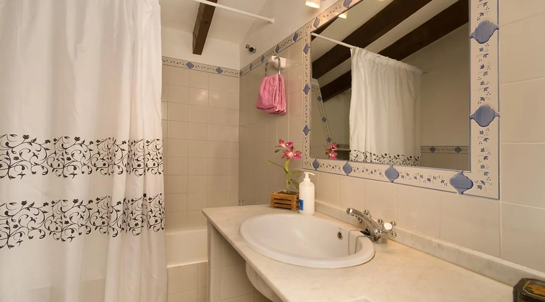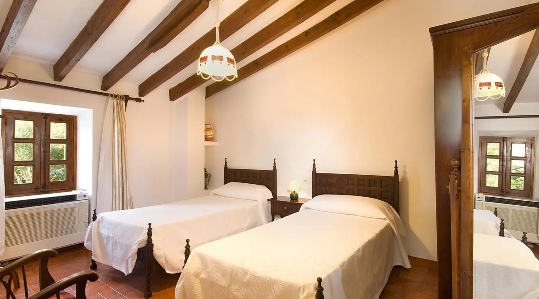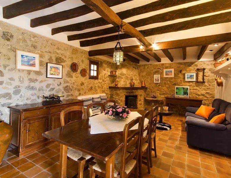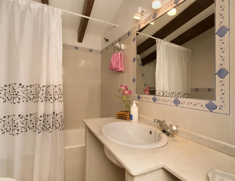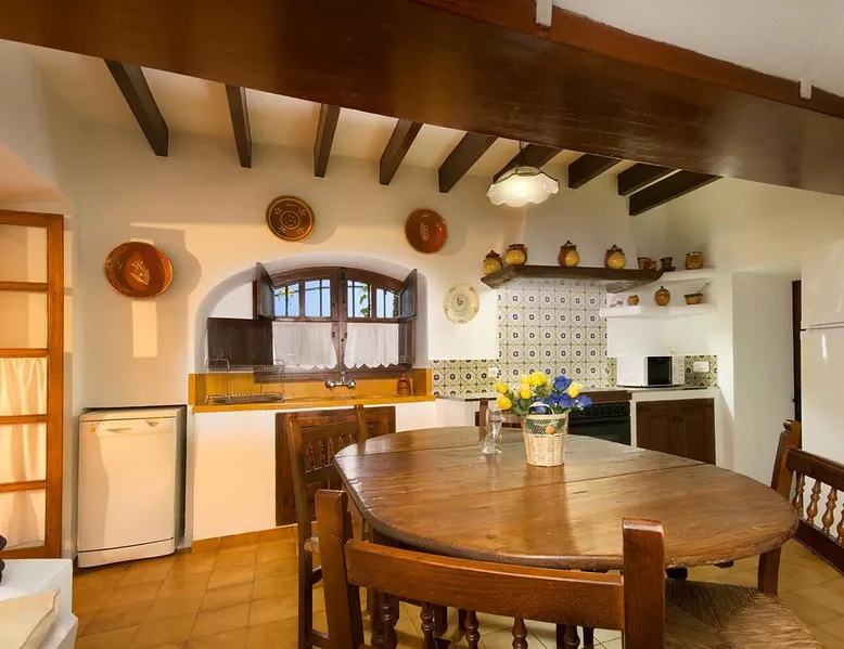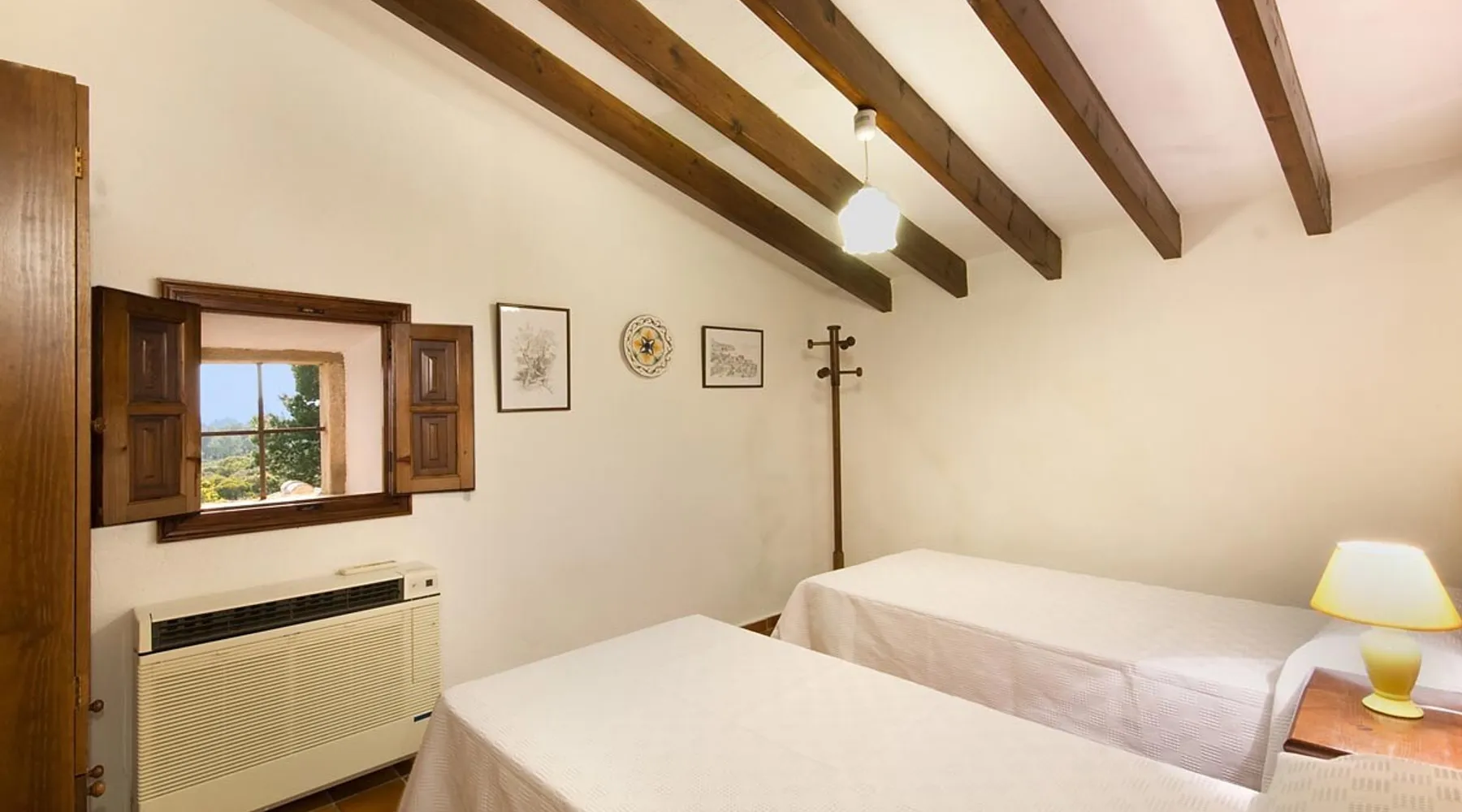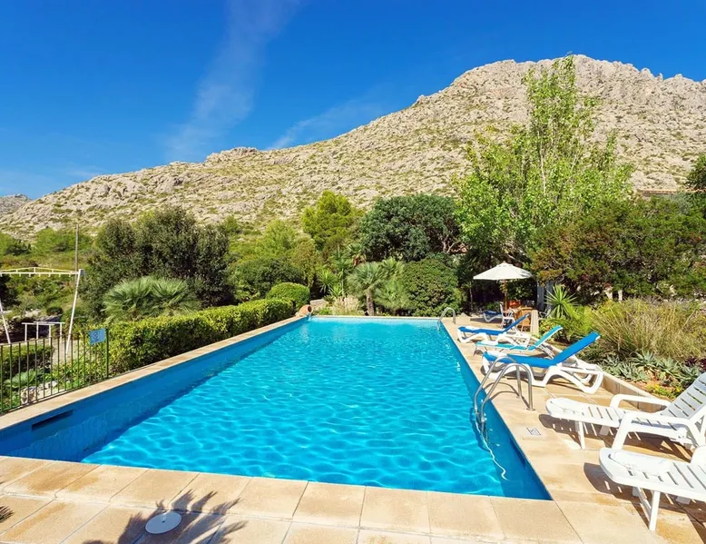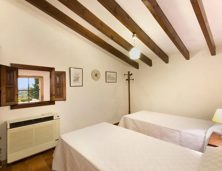 Ca’n Piedro is a wonderful Majorcan semi-detached country house in the beautiful area of Boquer, very close to Puerto Pollenca and its beaches. Thick stone walls, high beamed ceilings and original tiled floors keep the finca cool in the height of summer. It is furnished with some beautiful polished antique Majorcan furniture, some of it original to the house. The space Ca’n Piedro is a wonderful Majorcan semi-detached country house in the beautiful area of Boquer, very close to Puerto Pollenca and its beaches. Thick stone walls, high beamed ceilings and original tiled floors keep the finca cool in the height of summer. It is furnished with some beautiful polished antique Majorcan furniture, some of it original to the house. Enormous sensitivity to the buildings' original design and decoration has been used to make updates to the building, but really making this Finca stand out amongst others are its stunning gardens and large pool with views over Puerto Pollensa and the bay. Location The popular resort of Puerto Pollensa, with its seemingly endless choice of restaurants and bars is a little over a 10 minutes’ walk and the beach just 5 mins further. Ca’n Piedro is surrounded by some of the most impressive scenery on Mallorca and makes a good base for walking, bird-watching, sketching and cycling. There is a private trekking/trail running circuit of 310 metres to the rear of the Villa. Outside Ca’n Piedro Swimming Pool - 14m x 5m Poolside Sun Terrace - Sun beds and parasol. BBQ Casita - Bbq. Sink and taps, tiled work top, table and chairs. Covered Dining terrace - Table and chairs Garden - Extensive garden of palms and flowering shrubs with stone paths and seating areas. Trekking Trail - There is a private trekking/trail running circuit of 310 metres to the rear of the Villa. Inside Ca'n Piedro Ground floor Kitchen - Electric hob and oven, dishwasher, fridge freezer, and breakfast table and chairs. Breakfast table and chairs. Side door to Bbq casita. Living area - Sofas and cushioned bench sofa, Tv (limited channels/news only), Dining Area - Polished wood table and chairs First Floor Double bedroom - 1 double bed, windows to mountain. Twin bedroom,ensuite bathroom- 2 single beds, mountain view window. Ensuite bath with shower over, wash basin, W. c Con. unit Twin bedroom - 2 single beds, windows to hillside. Air Con. unit Family bathroom - Bath with shower over, wash basin, WC. Housekeeping Your Villa will be prepared for you on arrival with fresh bath and hand towels, beds will be made up. For stays of 7 nights or more - house towels will be changed every 3 - 4 days. For stays of 14 nights or more - bed linen is changed every 7 nights. Parking There is plenty of parking space for cars at the entrance to the property. Guest access The villa and pool is for your private use only as well as the garden. Bed linen & towels are provided as well as pool towels. The cleaner will come in during your stay & change them, depending on how many days you are staying. All of this is included in the price. Other things to note Included services - Swimming pool: Services available according to season Opening date: 01/04. Closing date: 31/10. Price: Included in the booking- tree-nation, 2x trees planted : Price: Included in the booking - Bed linen: Change each 7 days - Towels: Change each 4 days Optional services - Cot/Crib: Price: Included in the booking. - Baby high chair: Price: Included in the booking. - Second Cot : Price: EUR 40.00 per booking. - Second High Chair: Price: EUR 40.00 per booking. Registration Details Mallorca - Regional registration number ETV1105