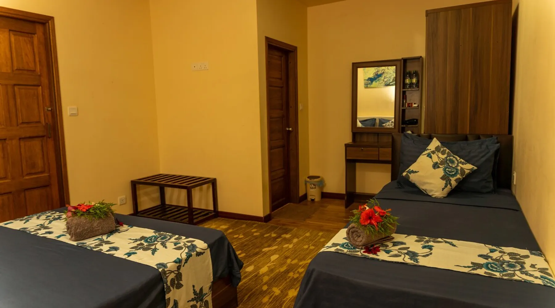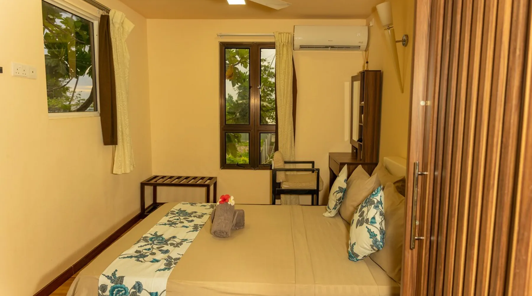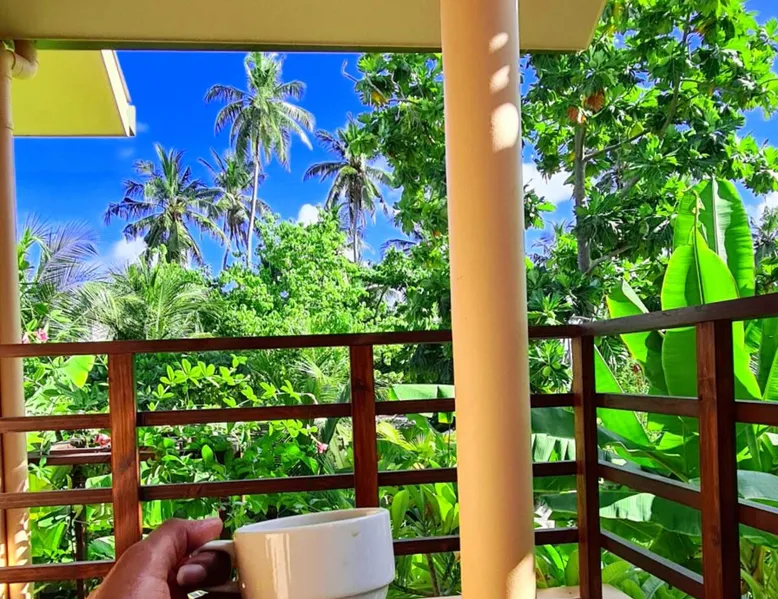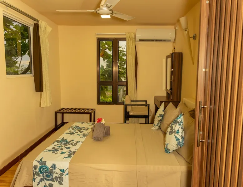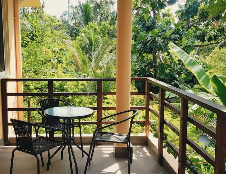 Within a walking distance of 1 minute from Bikini beach, daisy cottage offers 2 stories with 6 Comfortable Rooms ranging from 5 Deluxe double rooms with balcony on 1st floor and 1 family room with a private balcony. With a breathtaking view from our balcony, we also have a private garden area where our guests can enjoy a meal or have a coffee at the garden swing while feeding the koi fishes in our inbuilt Lotus pond. Rooms are spacious and equipped with A/C and all basic amenities. Guest access Daisy Cottage Garden , Lotus koi Pond, Garden Swings, balcony, BBQ Grill