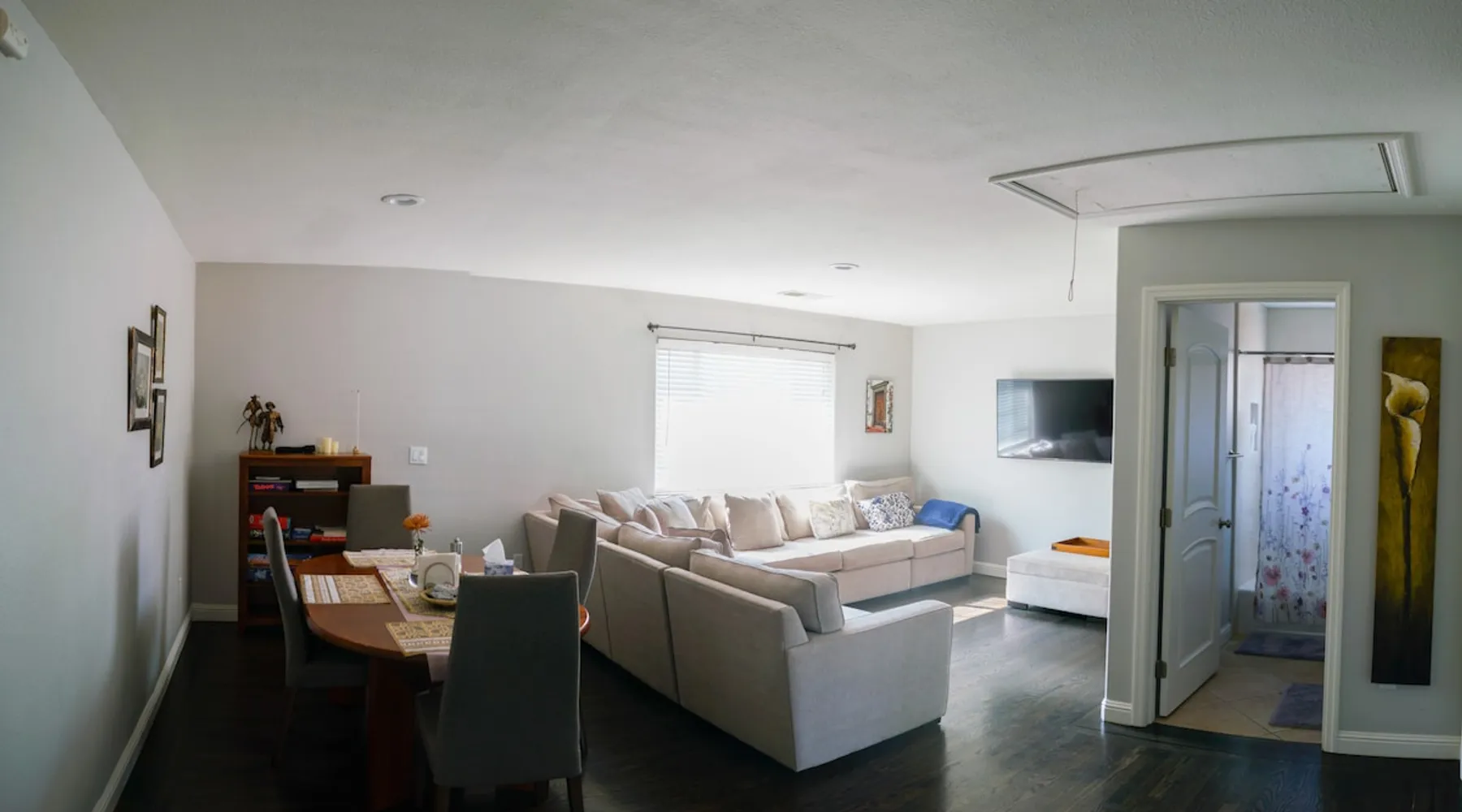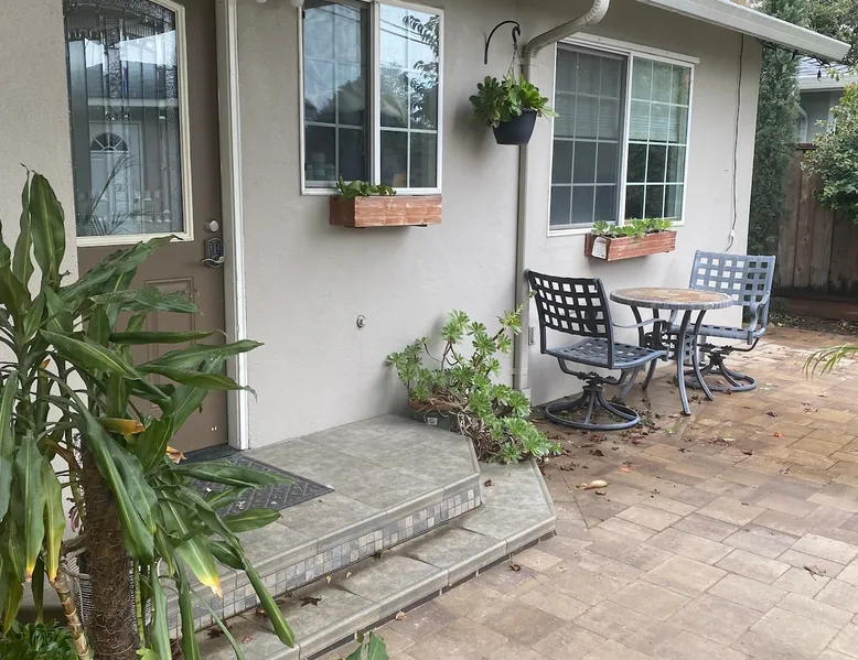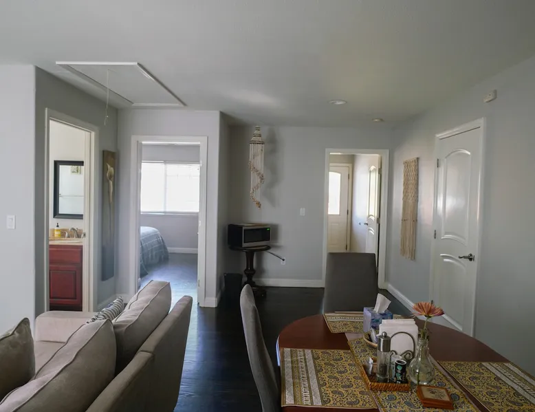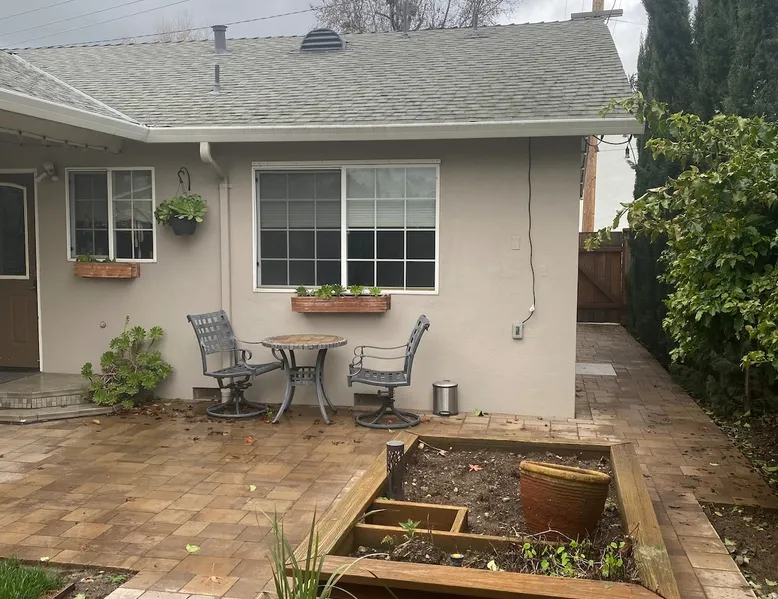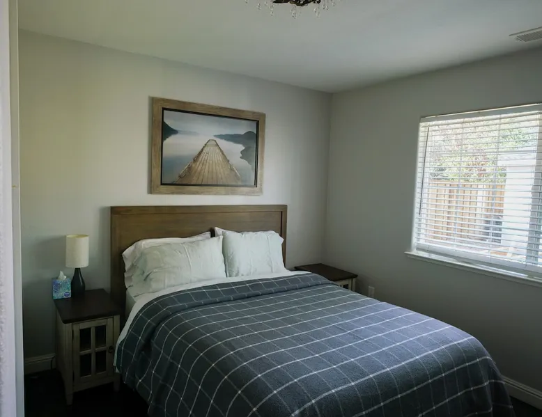 The cottage has separate entrance for the independent bedroom, living-cum-dining area and a small kitchen for our guests. Cottage has queen bed in the bedroom and comfortable sectional sofa and dining table in the living-cum-dining area. Cottage is connected to rest of the house through adjoining wall. The space Bedroom: Queen bed Living cum Dining area: Sectional sofa and dining table with 4 chairs Bathroom