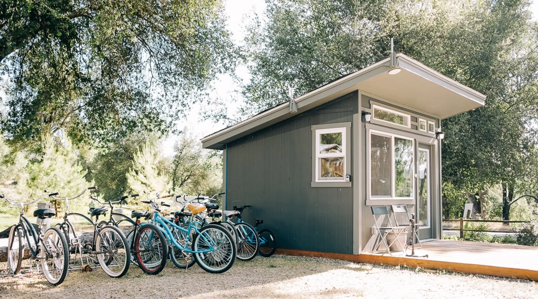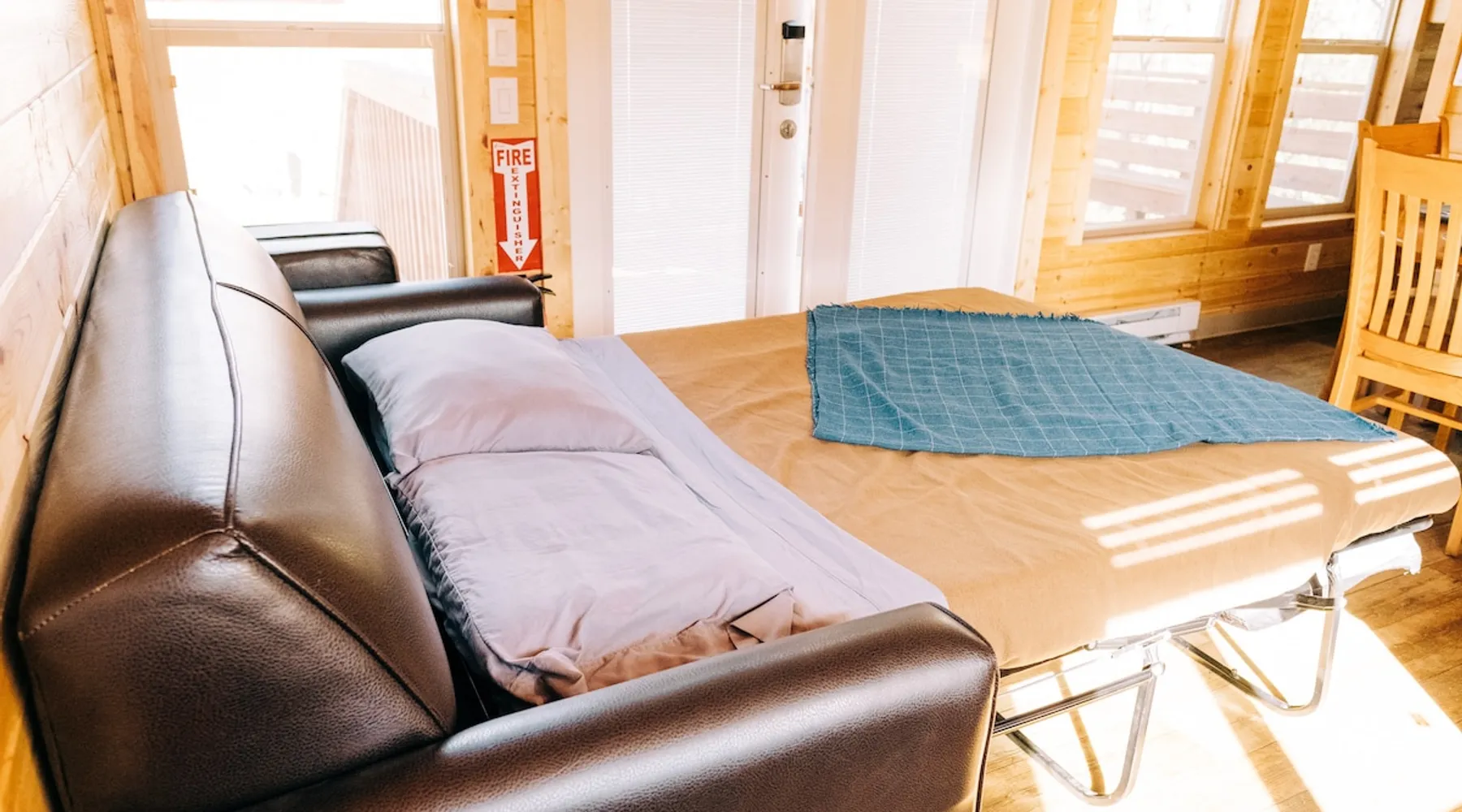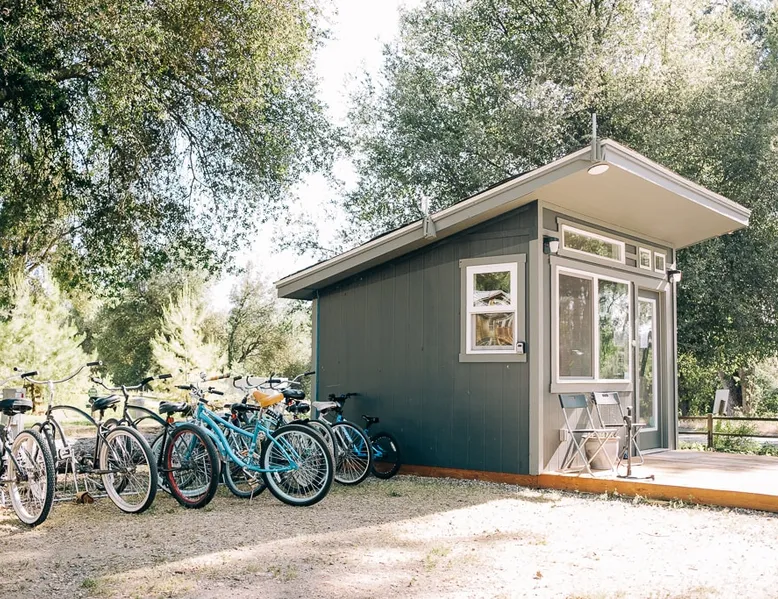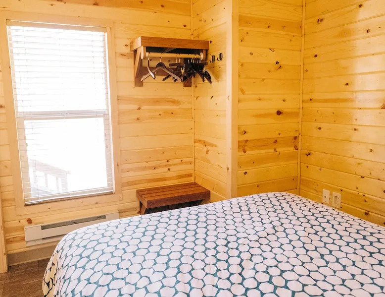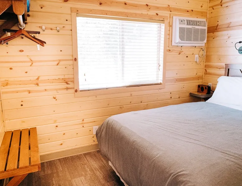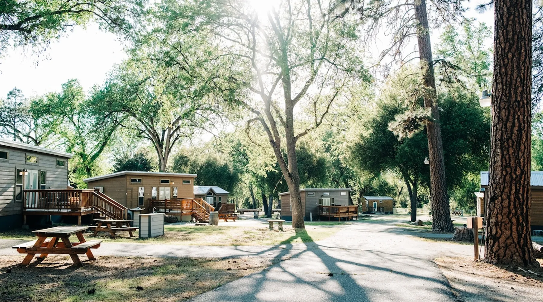 Welcome to your cozy Yosemite retreat nestled in the peaceful Sierra Foothills - a comfortable escape for families, couples, & small groups. - Sleeps 6 | 2 bedrooms | 3 beds | 1 bath - Shared hot tub (Oct-Apr) & shared pool (May-Sep) - Private patio, backyard space & hammock - Kitchenette w/ dining table workspace - Fast wifi (91 Mbps) - Pet-friendly & family-ready The space Soft morning light filters through the trees as you step onto your private patio, the cool Sierra air settling around you. Birds move across the quiet meadows nearby, and the surrounding foothills create a peaceful backdrop that encourages you to slow down, breathe, and settle in. As winter settles over this part of California, the cabin becomes a warm and comfortable place to return to after exploring the nearby trails or spending time in the crisp outdoor air. Sleeping arrangements Inside the 400 sq. ft. cabin, two private bedrooms each offer a queen bed with soft lighting for winding down at the end of the day. In the living area, a leather sofa converts into a full-sized bed, allowing up to six guests to stay comfortably. Fresh linens and essential bedding are provided so you can rest well between days spent outdoors. Outdoor living This cabin sits within the Sierra Foothills in a glamping-style resort setting, surrounded by grass, trees, and wide open spaces. In the colder months, the shared hot tub is available from October to April during specific hours, offering a relaxing spot to warm up after time outside. You also have access to a private patio or balcony, a hammock, outdoor furniture, and a backyard space on the property. Complimentary bikes are available for exploring the nearby grounds, and a lake can be reached by a path or dock. Walking trails, ponds, creeks, and streams are located across the street, giving you plenty of opportunities for fresh air and gentle winter exploration. Kitchen and dining A kitchenette provides the basics for preparing simple meals, with a refrigerator, microwave, cooking essentials, dishes, and silverware. A dining table serves as a comfortable place for shared meals or as a dedicated workspace when needed. A pour-over coffee setup is provided so you can begin your day with a warm cup in the quiet of the morning. Bathroom The cabin includes a full bathroom with a bathtub and hot water, along with bathroom essentials for your stay. It is a practical, comfortable space to refresh after being outdoors. Family-friendly touches Families will find the cabin equipped with a crib, a pack n play/travel crib, a high chair, outlet covers, board games, and children's books and toys, making it easy to settle in with little ones. Connectivity and comfort Fast wifi, verified at 91 Mbps, supports streaming or remote work. A window AC unit, ceiling fan, and heating help maintain a comfortable indoor environment throughout the year. Entertainment includes a Bluetooth speaker and books and reading material. Resort access and features Guests can access nearby resort facilities, free parking on the premises, and an EV charger. Exterior security cameras are located at the camp store and swimming pool for safety. The property is pet-friendly, allowing you to bring up to two dogs. Self check-in is available through a keypad for a smooth arrival. Neighborhood The surrounding park-like setting is quiet and shaded, offering a peaceful place to spend time outdoors. Trails, water features, and natural scenery are just steps away, creating a simple yet relaxing foothills experience. Guest access Guests will also have access to the 140 acre former golf course, which is a great place to take a walk on the miles of concrete pathways. When the weather is warmer (typically mid-May through early September), guests also have access to the Lodge swimming pool. The pool is open from 8am to 8pm each day. Other things to note Our wifi is strong at the cabins & pool area and we are connected to the internet with a reliable fiber connection. We only allow dogs, fee may apply. No other pets are allowed; no exceptions to this policy.