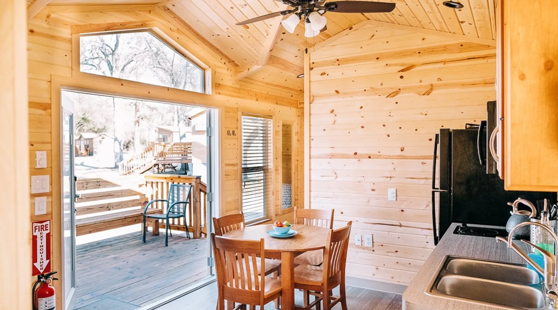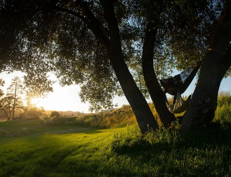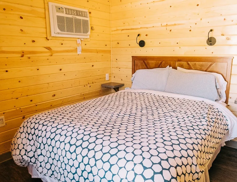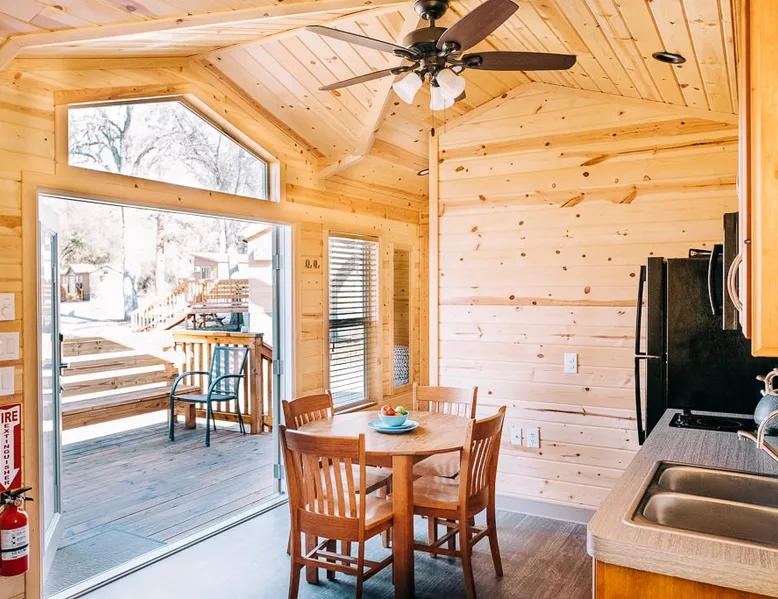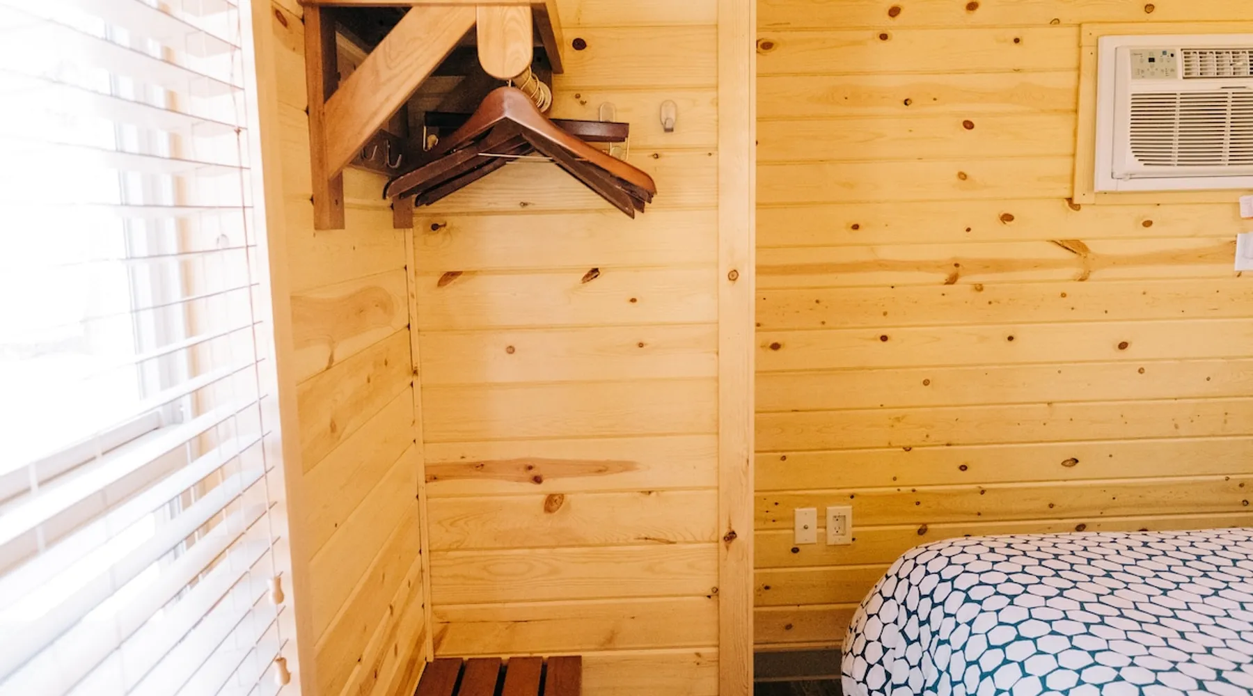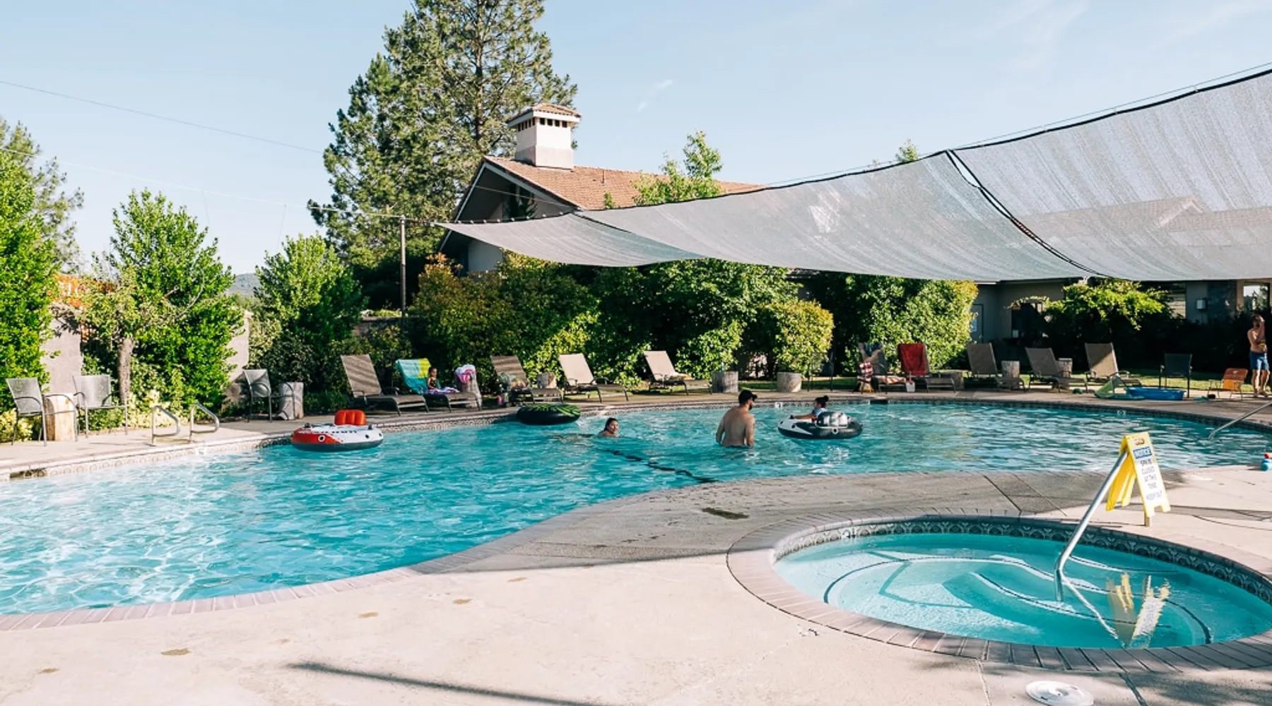 Welcome to your cozy Yosemite retreat nestled in the peaceful Sierra Foothills - a comfortable escape for families, couples, & small groups. - Sleeps 6 | 2 bedrooms | 3 beds | 1 bath - Shared hot tub (Oct-Apr) & shared pool (May-Sep) - Private patio, backyard space & hammock - Kitchenette w/ dining table workspace - Fast wifi (91 Mbps) - Pet-friendly & family-ready The space Soft morning light filters through the trees as you step onto your private patio, the cool Sierra air settling around you. Birds move across the quiet meadows nearby, and the surrounding foothills create a peaceful backdrop that encourages you to slow down, breathe, and settle in. As winter settles over this part of California, the cabin becomes a warm and comfortable place to return to after exploring the nearby trails or spending time in the crisp outdoor air. Sleeping arrangements Inside the 400 sq. ft. cabin, two private bedrooms each offer a queen bed with soft lighting for winding down at the end of the day. In the living area, a leather sofa converts into a full-sized bed, allowing up to six guests to stay comfortably. Fresh linens and essential bedding are provided so you can rest well between days spent outdoors. Outdoor living This cabin sits within the Sierra Foothills in a glamping-style resort setting, surrounded by grass, trees, and wide open spaces. In the colder months, the shared hot tub is available from October to April during specific hours, offering a relaxing spot to warm up after time outside. You also have access to a private patio or balcony, a hammock, outdoor furniture, and a backyard space on the property. Complimentary bikes are available for exploring the nearby grounds, and a lake can be reached by a path or dock. Walking trails, ponds, creeks, and streams are located across the street, giving you plenty of opportunities for fresh air and gentle winter exploration. Kitchen and dining A kitchenette provides the basics for preparing simple meals, with a refrigerator, microwave, cooking essentials, dishes, and silverware. A dining table serves as a comfortable place for shared meals or as a dedicated workspace when needed. A pour-over coffee setup is provided so you can begin your day with a warm cup in the quiet of the morning. Bathroom The cabin includes a full bathroom with a bathtub and hot water, along with bathroom essentials for your stay. It is a practical, comfortable space to refresh after being outdoors. Family-friendly touches Families will find the cabin equipped with a crib, a pack n play/travel crib, a high chair, outlet covers, board games, and children's books and toys, making it easy to settle in with little ones. Connectivity and comfort Fast wifi, verified at 91 Mbps, supports streaming or remote work. A window AC unit, ceiling fan, and heating help maintain a comfortable indoor environment throughout the year. Entertainment includes a Bluetooth speaker and books and reading material. Resort access and features Guests can access nearby resort facilities, free parking on the premises, and an EV charger. Exterior security cameras are located at the camp store and swimming pool for safety. The property is pet-friendly, allowing you to bring up to two dogs. Self check-in is available through a keypad for a smooth arrival. Neighborhood The surrounding park-like setting is quiet and shaded, offering a peaceful place to spend time outdoors. Trails, water features, and natural scenery are just steps away, creating a simple yet relaxing foothills experience. Guest access Guests will also have access to the 140 acre former golf course, which is a great place to take a walk on the miles of concrete pathways. When the weather is warmer (typically mid-May through early September), guests also have access to the Lodge swimming pool. The pool is open from 8am to 8pm each day. Other things to note Our wifi is strong at the cabins & pool area and we are connected to the internet with a reliable fiber connection. We only allow dogs, fee may apply. No other pets are allowed; no exceptions to this policy.