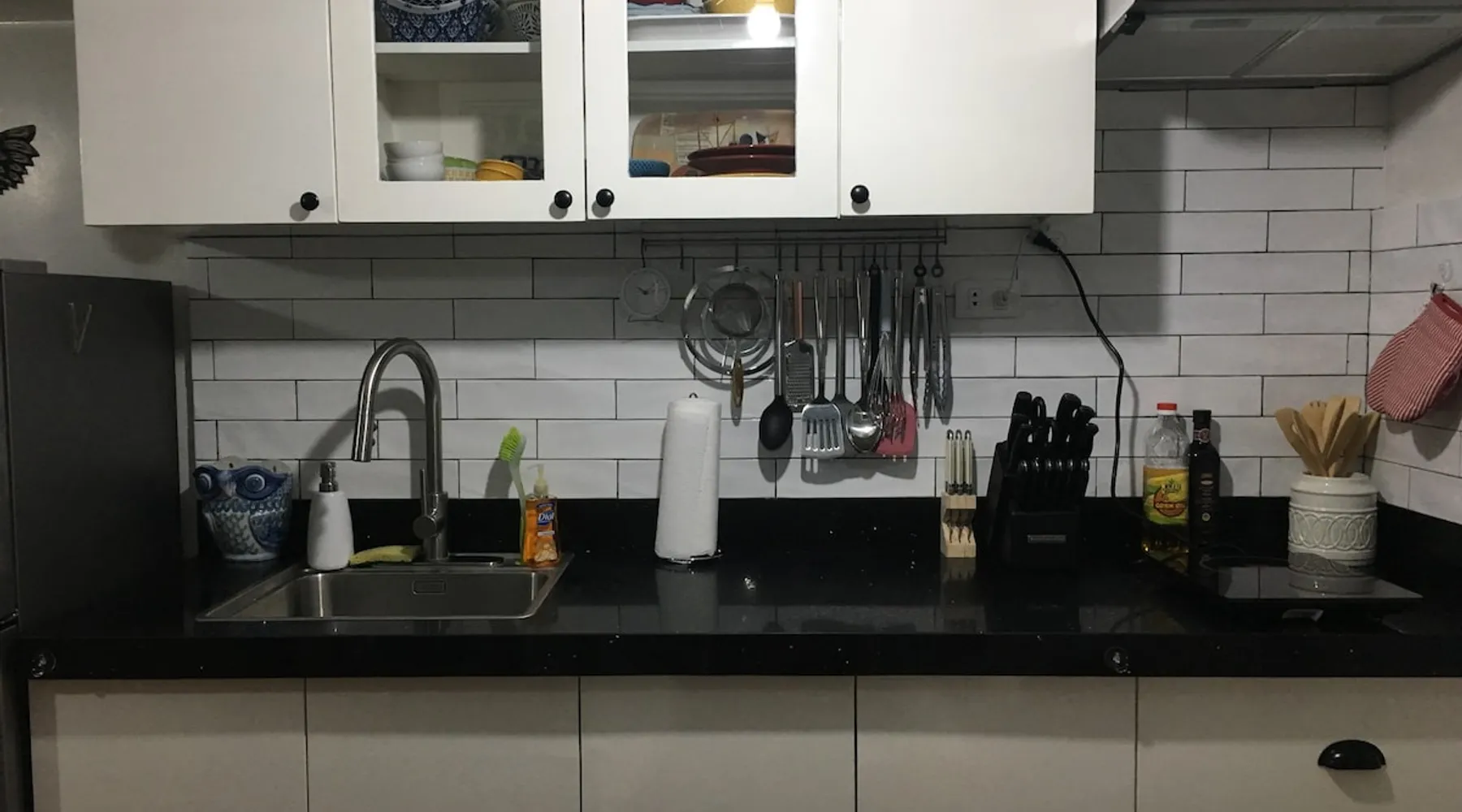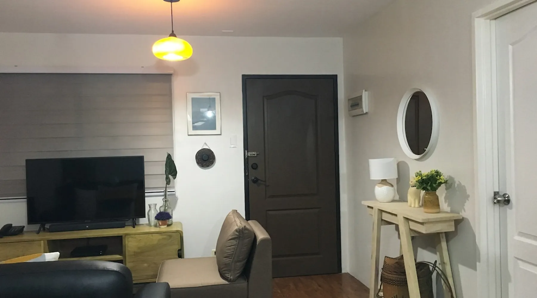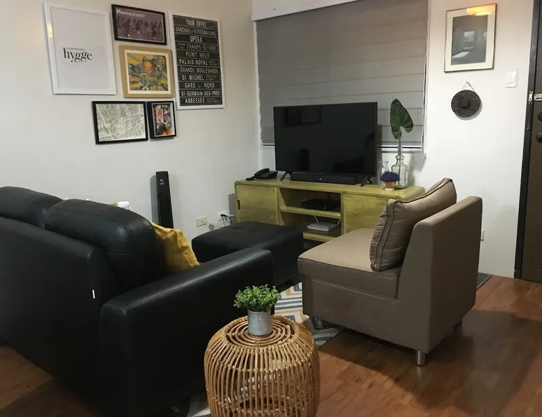 A recently renovated condominium unit we personally decorated, uniquely inspired by Scandinavian design. The living room has a feeling of cozy contentment and well-being for enjoying the simple things in life. Our kitchen is fully equipped with everything for a comfortable stay. It has a refrigerator, microwave oven, toaster oven, coffeemaker, single induction cooker, rice cooker, pots and pans, dinner ware, dining and cooking utensils, drinking glasses, wine glasses and serving bowls. The space There is a Smart TV with our Netflix and Amazon Prime information loaded up for your use. You can hang your clothes on the rooftop in a secured laundry cage. Clothes clips and plastic hangers are provided. Other things to note Telephone available (local calls only)
