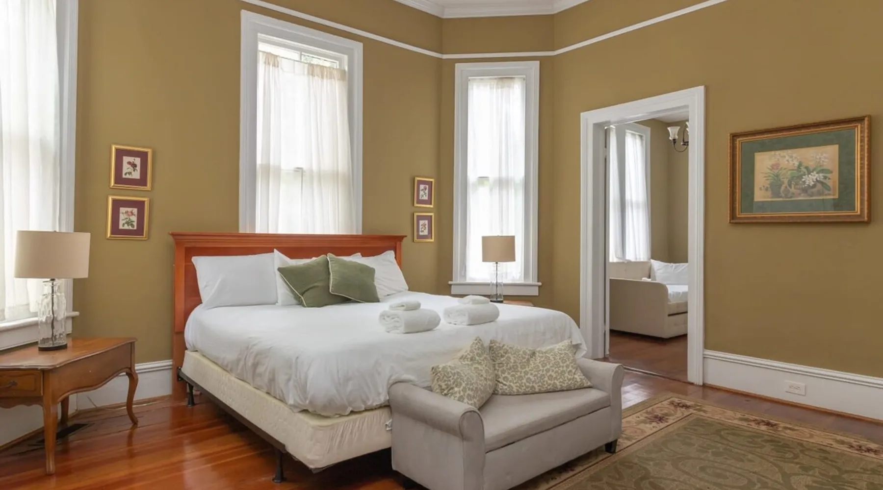 This iconic 3,500 sq ft mansion, a cornerstone of Columbus since the Civil War, has been modernized for luxury living. Located just 20 minutes from Fort Moore and under 10 minutes from the riverfront and downtown, it offers unbeatable convenience. After exploring, relax on the front porch swing! We also have an awesome Tiny Home in the back available for separate rental—just search for Columbus Tiny House. We provide both professional photos and real-time images from our cleaning team, ensuring The space Whether you are wanting to relax on the front porch, grill out in the back yard, detox in the tub, or cook a big meal in the kitchen, we want this to be a cozy home away from home. Work from any room in this mansion with the extra strong Wifi! Fans of historic homes will love the stain glass, original floors, and other details. The kitchen, bathrooms, and bedrooms are all fully furnished and complete with all amenities. This place is great for family and friends to spend time together. ***A pack 'n play/travel crib is available upon request.*** ***Vacuum available upon request*** Guest access You will have access to the full home. We also have Columbus' first Tiny Home in the back of the property that may be rented out to other guests. The driveway is for the use of the Mansion guests. Other things to note ***A pack 'n play/travel crib is available upon request.*** We require a signed rental agreement and for guest to be 21 years of age to book. If you notify us of your intent to cancel prior to the lapse of the free cancellation period, we will return 97% of your payment. The other 3% will already have been collected by the credit card processing company, and we have no way to return that portion of the payment. We are a pet friendly home. Pets must be crated when they are left unattended in the home. We do not allow pets on furniture or beds, and all waste must be cleaned up from the yard. All pets require a non-refundable pet fee. If there is evidence of pet hair on the furniture, excess hair in the home, stains, or waste found in the yard or home, you will be charged the cost to clean this. In the event that a security deposit is collected, we will retain all or part of the security deposit to cover any costs associated with additional cleaning due to pets.