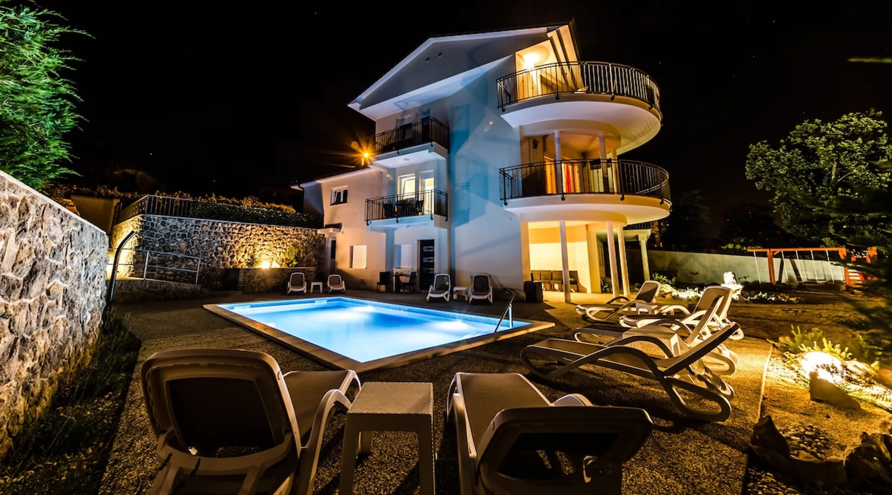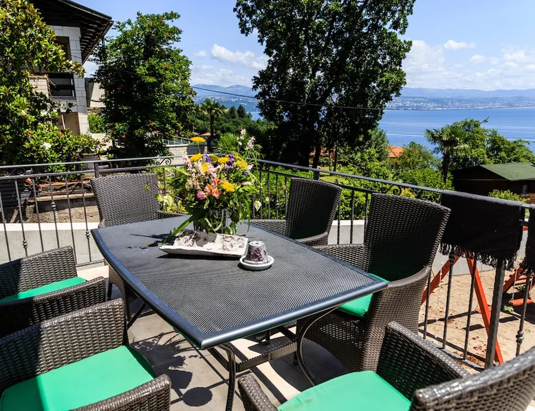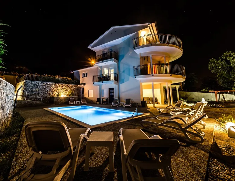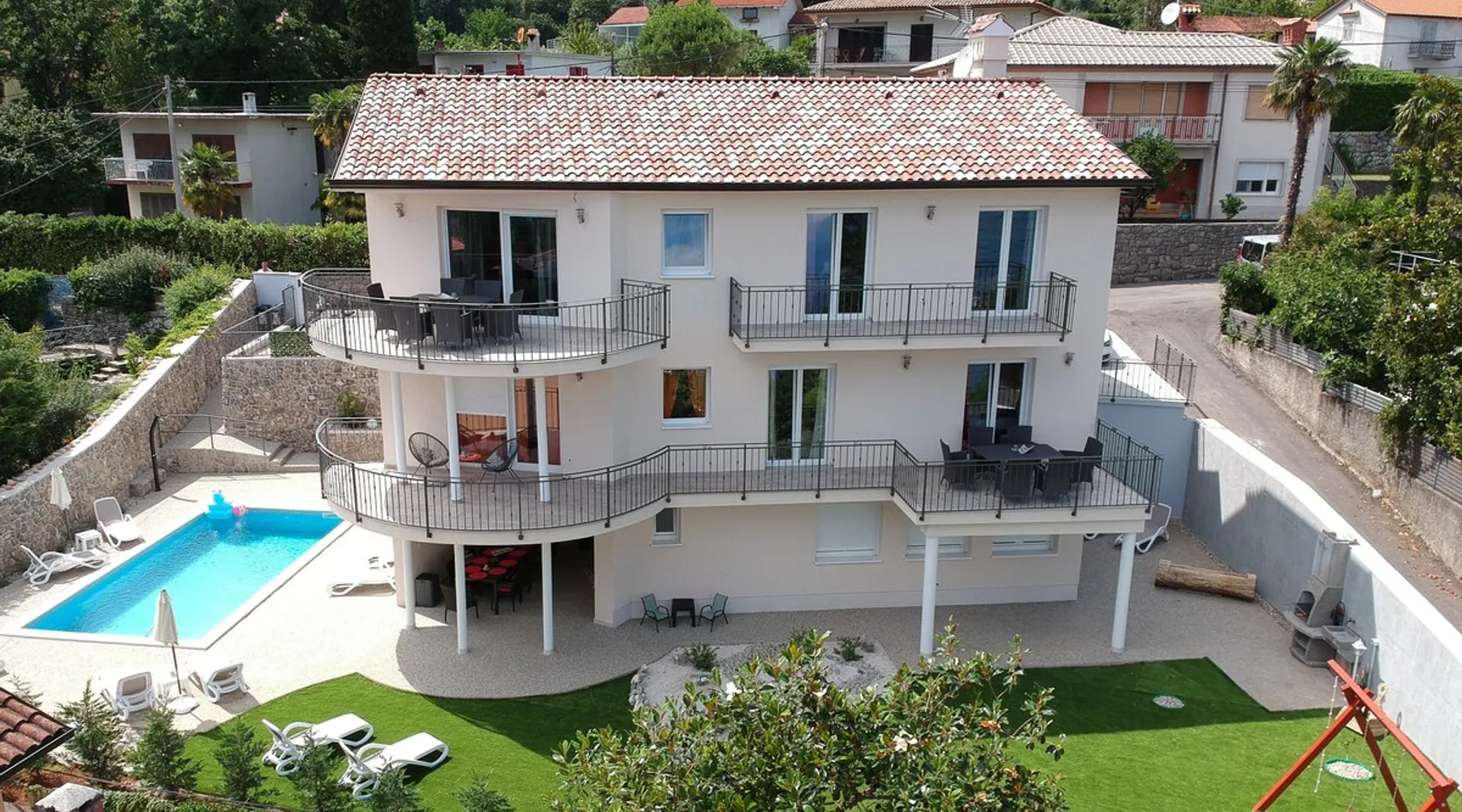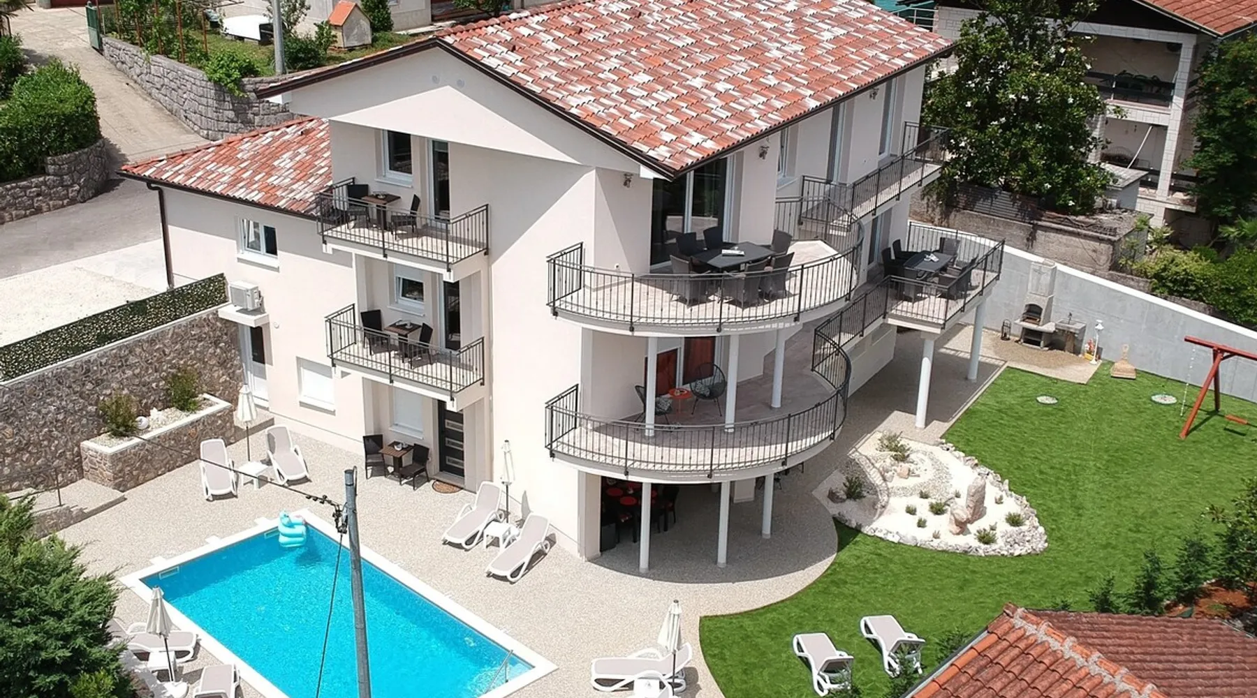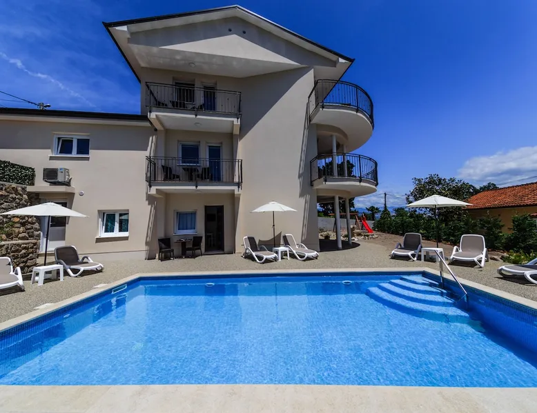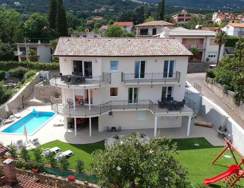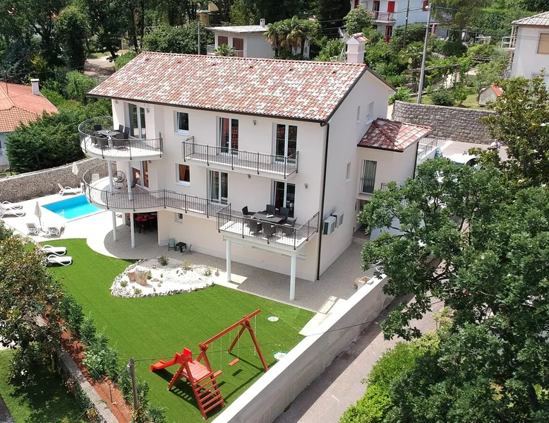 Brand new Villa with swimming pool. Opened June 2018. The beautiful villa is located in a small village of Ika near Opatija, only 300 m from the beach. The villa consists of 3 apartments on 3 floors. Your apartment has 3 bedrooms, living room, fully-equipped kitchen, dining room, 3 bathrooms with toilets and showers. Around the private pool there are sunbeds and a barbecue area with table and chairs for all. The villa is fully air conditioned and has a beautiful play area and garden. Welcome!!! Other things to note Our staff has received COVID-19 vaccine.