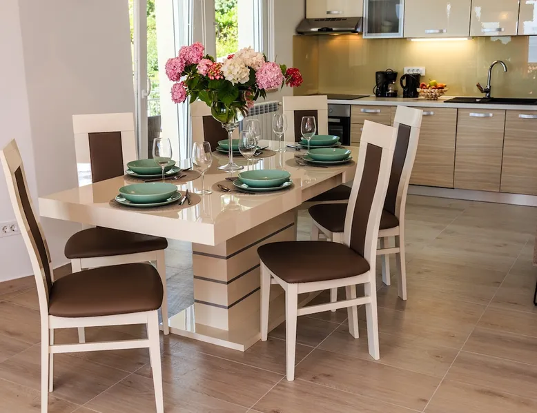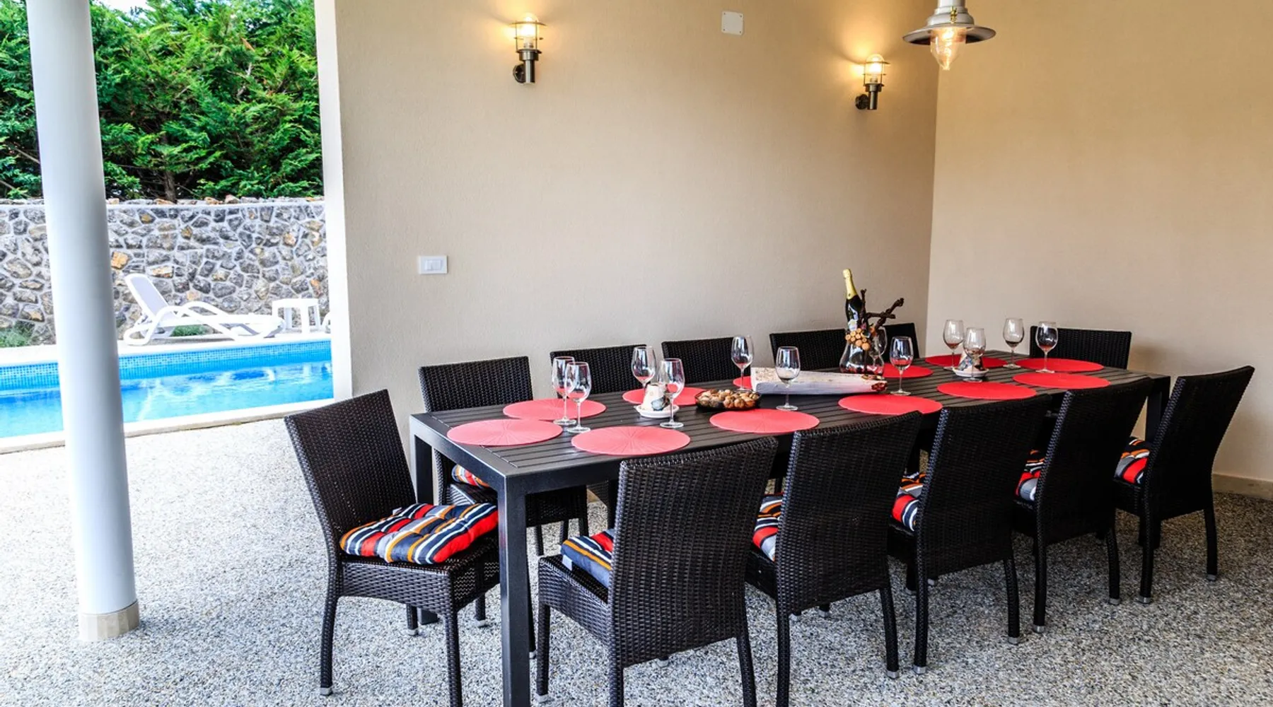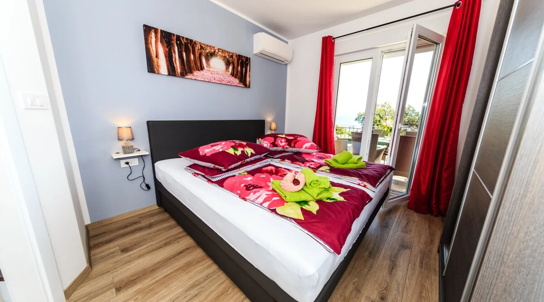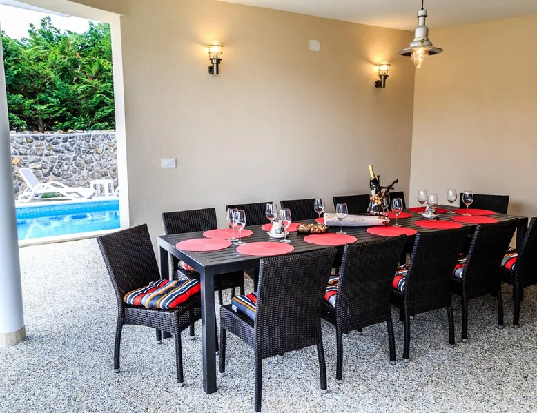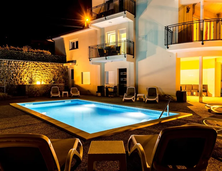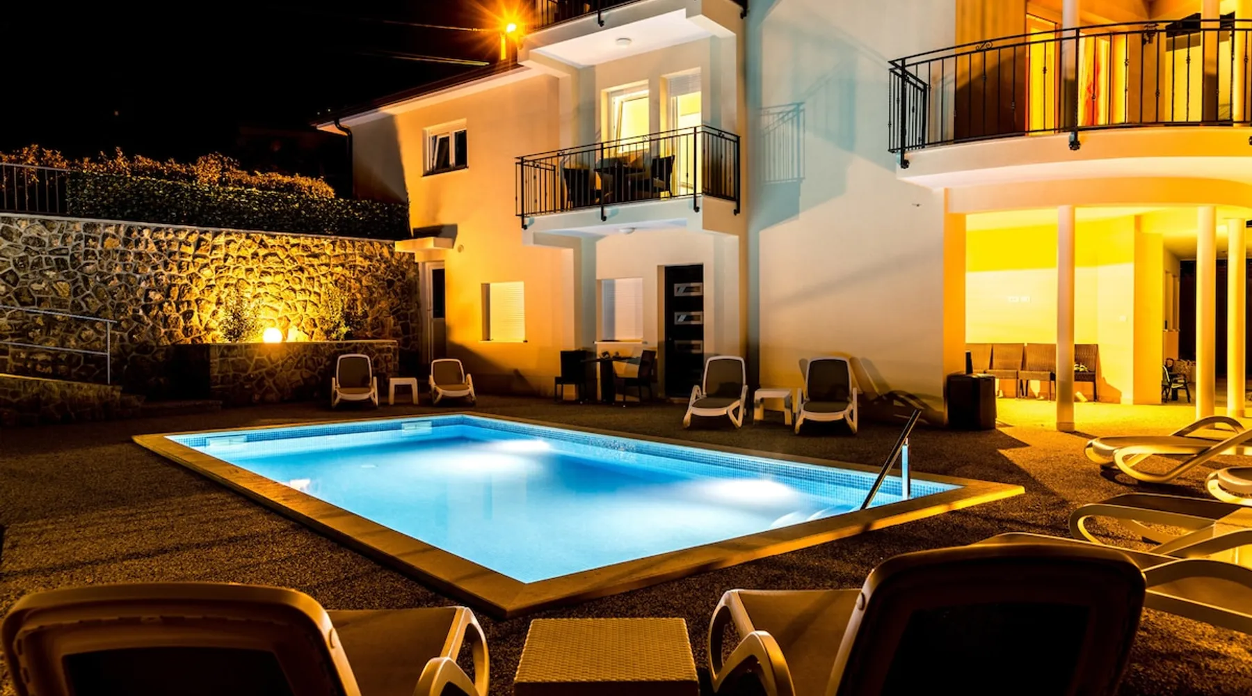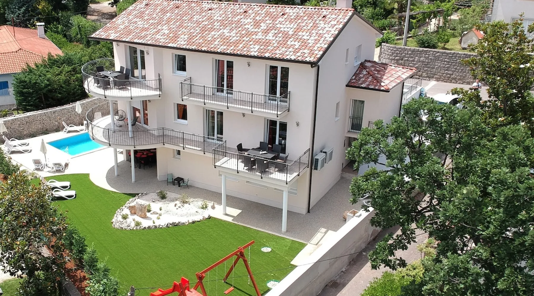 Brand new Villa with swimming pool. Opened June 2018. The beautiful villa is located in a small village of Ika near Opatija, only 300 m from the beach. The villa consists of 3 apartments on 3 floors. Your apartment has 3 bedrooms, living room, fully-equipped kitchen, dining room, 3 bathrooms with toilets and showers. Around the private pool there are sunbeds and a barbecue area with table and chairs for all. The villa is fully air conditioned and has a beautiful play area and garden. Welcome!!! Other things to note Our staff has received COVID-19 vaccine.