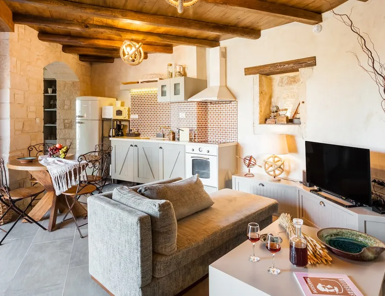 Liodosifis Mansion is a traditional villa located in the village of Paidohori, in Apokoronas. It has been built amphitheatrically at the foot of the White mountains of Crete, at an altitude of 270 meters allow visitors to have 360-degree panoramic views. Distances nearest beach is 8,5km nearest grocery 2,5km nearest restaurant 2,5km Chania airport 37km The space [You can always add our listing to your wishlist by clicking the ❤ in the upper-right corner, in case you are not ready to make a reservation yet.] To capitalize on the favorable amphitheatrical position of Liondosifis Mansion, great attention has been paid to shaping the exterior space. It consists of three verandas, one on the ground floor, the other on the top of the open-plan lounge building and the third is very high above the first building. The ground floor terrace offers BBQ facilities, a large monastery table, and a swimming pool. The pool is equipped with sun loungers while there is a stylish fountain, offering moments of relaxation under the sound of running water. It can be heated at an additional cost. A veranda is equipped with chairs and a table and you can enjoy your drink or your meal with the White Mountains in the background. It is located above the first building and it is taller than the other two and is equipped with a sofa to savor the endless Cretan sunshine, giving you absolute moments of relaxation with a view from the mountains up to Akrotiri Stavros. Liodosifis Mansion's traditional residence consists of three buildings that can accommodate up to 7 people. The two buildings at the edges of the complex are two-storied and have four bedrooms, while in the middle building, there is a single room and a kitchen. A 24-hour telephone contact service is provided, and for your safety, there are magnetic locks. Upon arrival at Liodosifis Mansion, we welcome you with a homemade meal. Furthermore, there will be water in your room while tap water is drinkable. The lush and fertile location of Liodosifis Mansion is rich in olive groves and vineyards. This magical location offers tranquility and serenity, prompting guests to take a walk while listening to the sounds of birds, sheep, and goats that roam freely. Paidohori village is the ideal place for escape as it is at a close distance of Georgioupolis, Kalyves, Ancient Aptera, Lake Kournas, and Almyrida. -Important Notice: This property would not be suitable for children under 10 years old. -Heated pool is available for 40 Euros per day -Please note that the temperature of the heated pool goes up to approx. 5 degrees Celsius higher than the ambient air temperature. To ensure a stress-free holiday experience, we will send you a link to our GuestGuide4u approximately two weeks prior to your arrival. This guide will include many details for the house, recommendations for local activities in Crete, suggested restaurants, and other helpful travel information. Last but not least, below are some services that we provide you, so that you can plan your stay easier: ★Included CreteVillas4u Services★ Welcome Basket | Pre Arrival shopping list | 24/7 Landline service | Linen & Towels change included | Pool Towels | Garden Maintenance | Pool Cleaning 2/3 times per week | Free Parking | Baby Cot & High Chair (upon request) | Check in and check out can be made without person to person contact (upon request) ★Extra Services★ Concierge | In Villa Doctor | Baby Sitting | Beauty Treatments | Tours & Excursions | Chef Services | Transfer with additional discount for our guests | Car Rental with additional discount for our guests | In Villa Wine Tasting | Sailing | Helicopter Rental | Airplane Rental | Personal Training | Organize any special events such as Birthdays, Wedding etc Guest access Our guests have access to all the property and its grounds as this is a private villa Other things to note -The villa uses solar systems to heat the water -Most of the light bulbs are replaced with LED lumps -The villa only uses water-efficient toilets e.g. low-flow toilets, dual flush toilets -All windows are double-glazed -Offer tours and activities organized by local guides and businesses This is a house and not a hotel, so please treat the property with respect as if it was your own :) Registration details 1001621