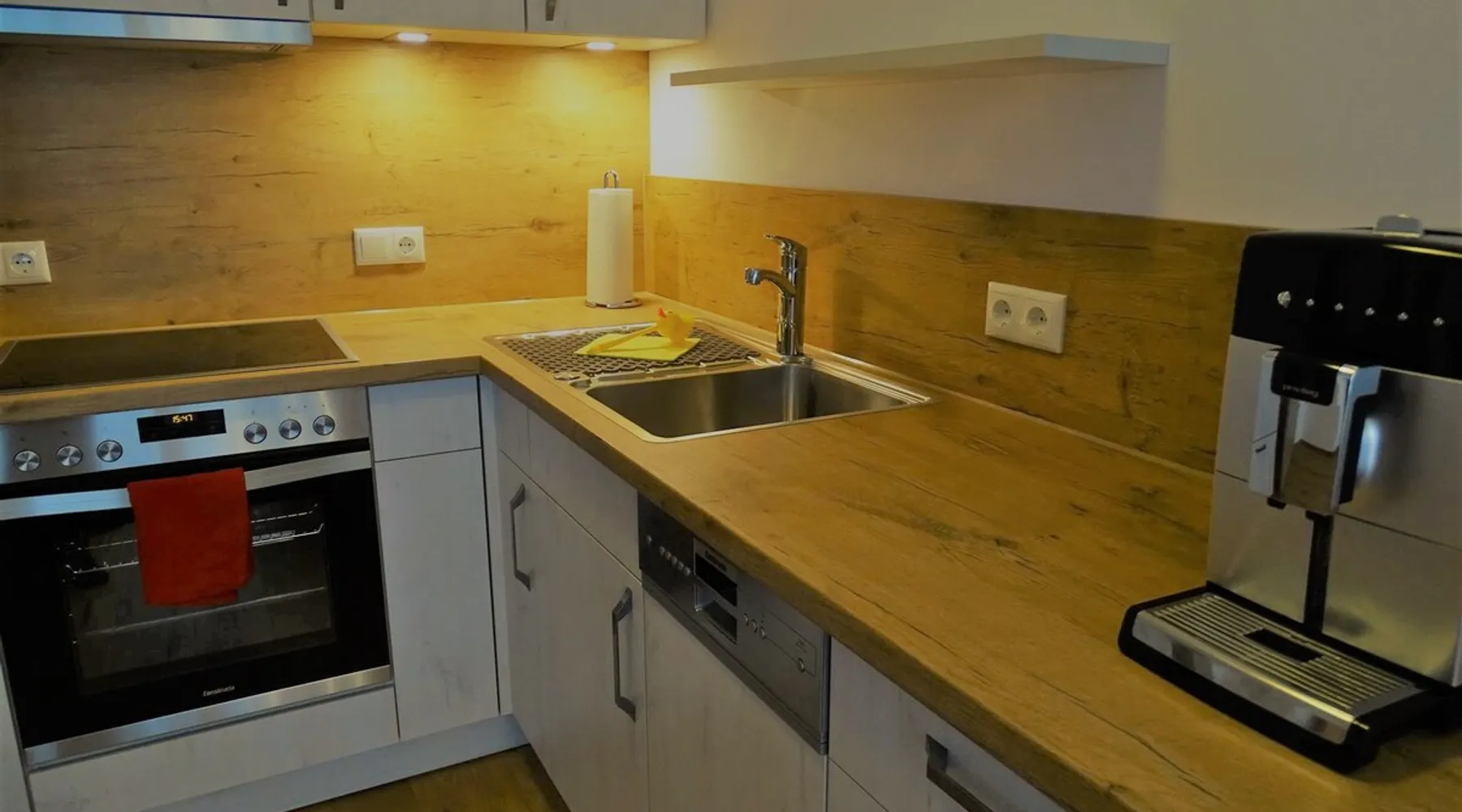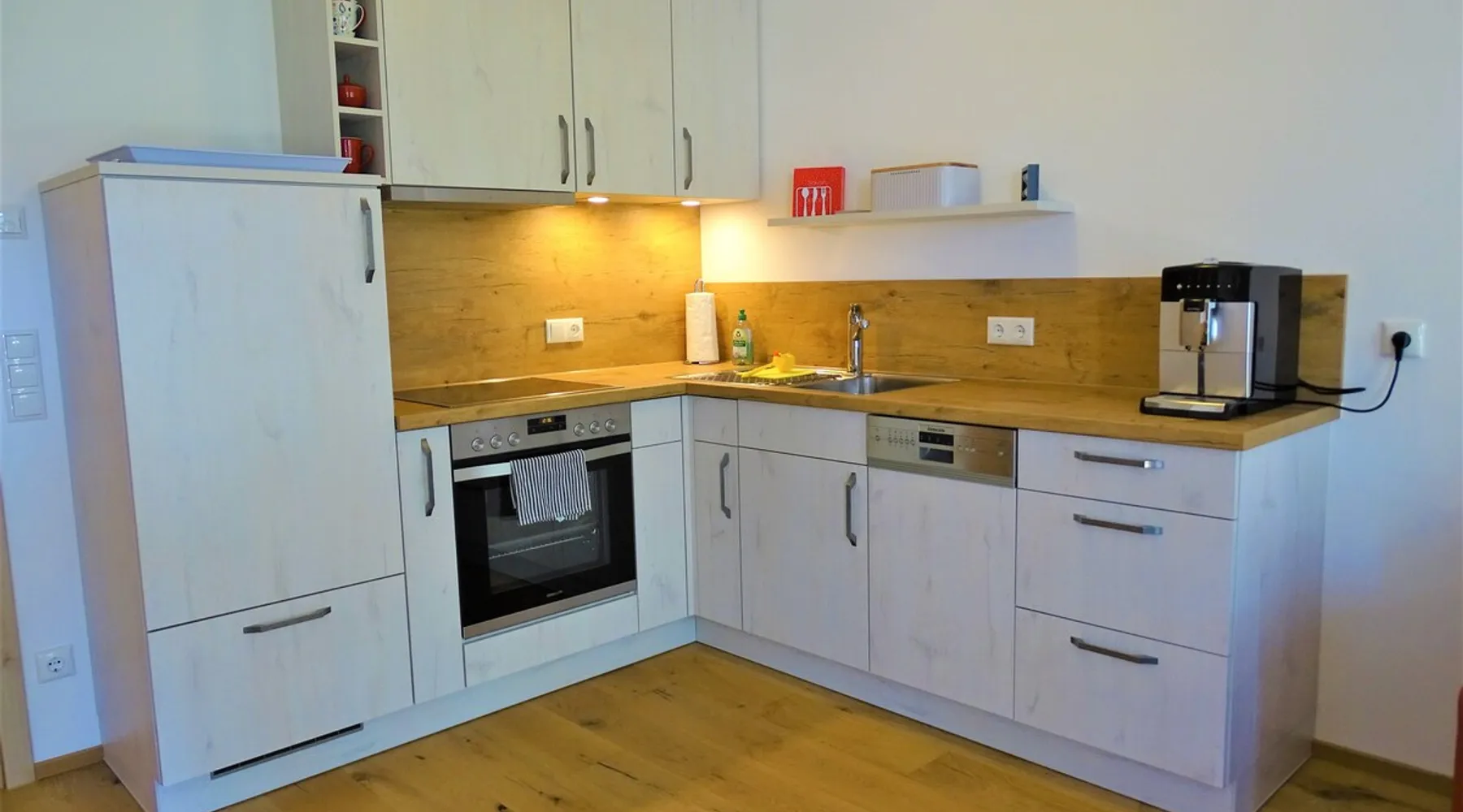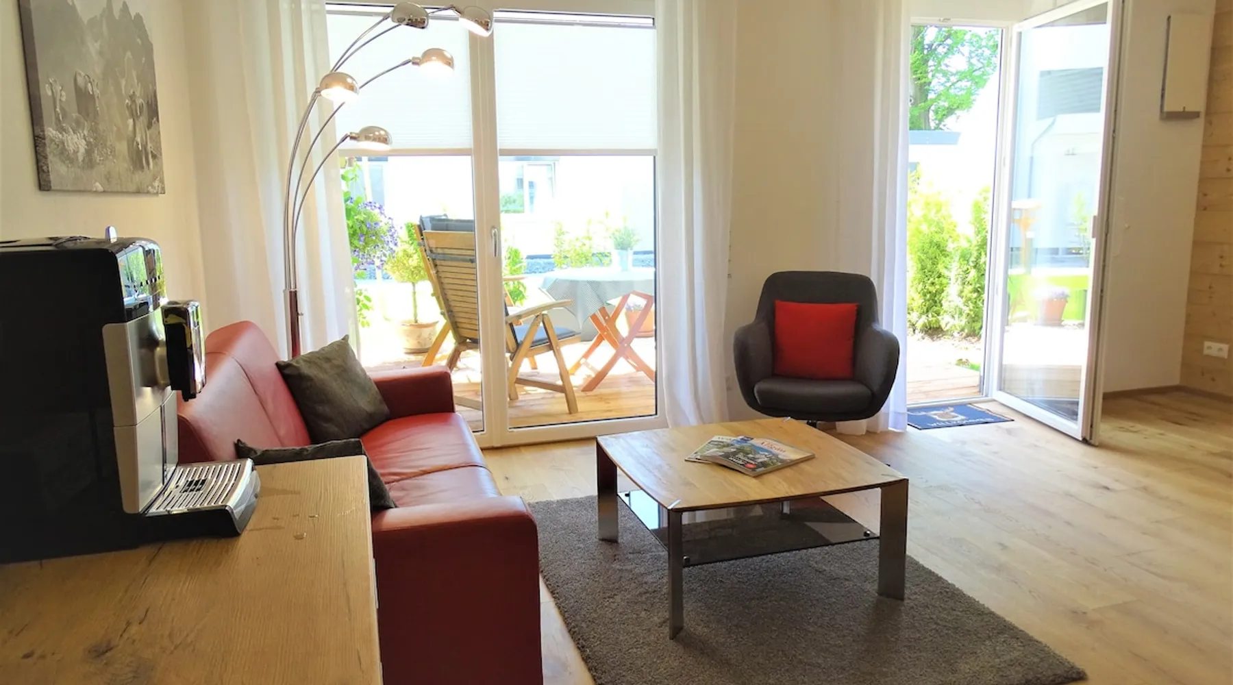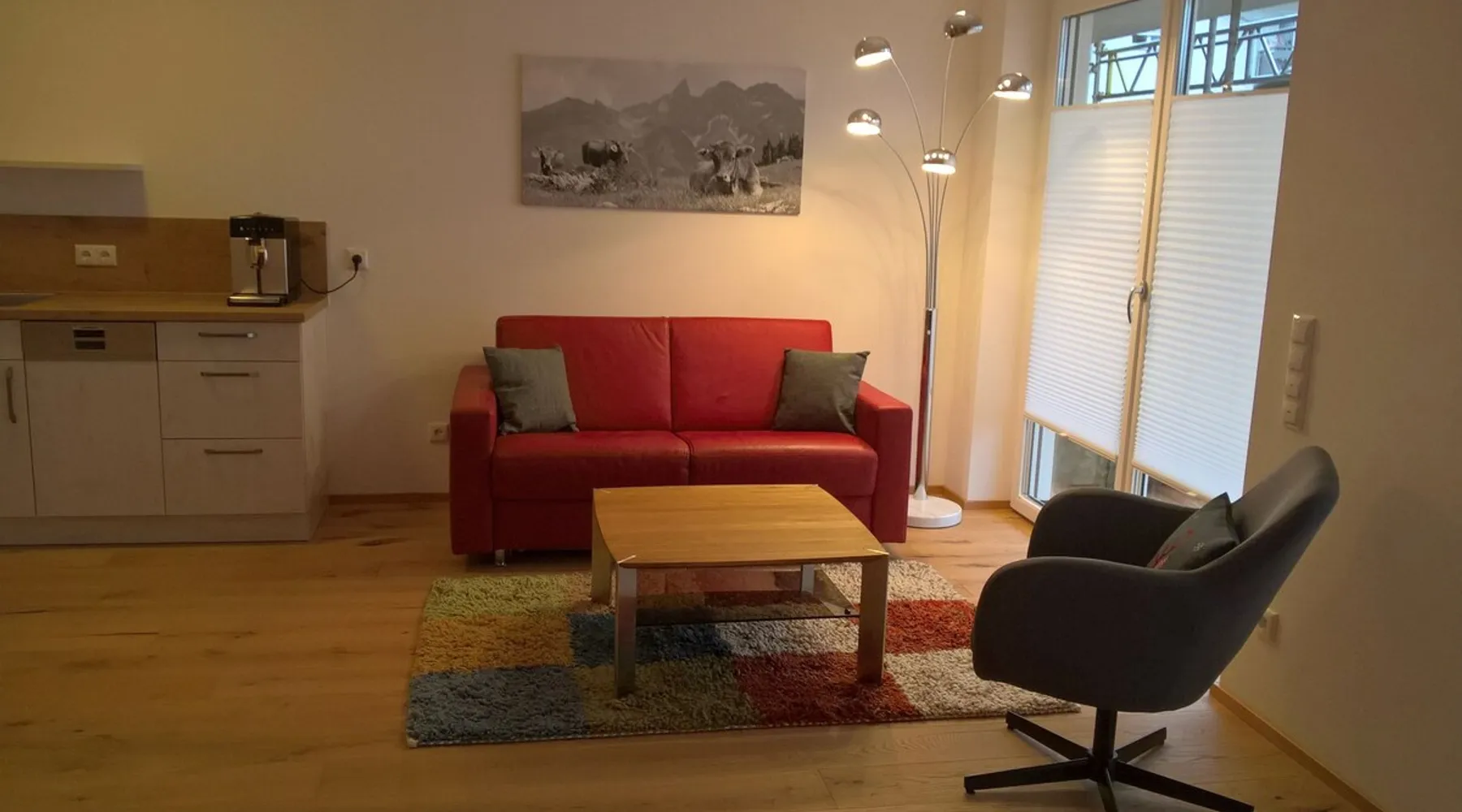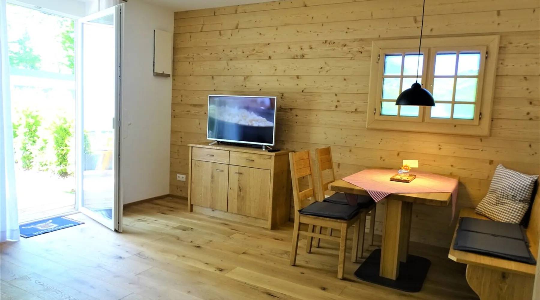 Modern apartment in a newly built passive house, ground floor apartment with south-facing terrace, wheelchair accessible, central location and yet quiet. In a few minutes you can reach both the pedestrian zone and beautiful hiking trails. Underground parking available, a bakery is right next door. We put a lot of emphasis on high-quality equipment, the floor is made of solid wood, and we also clad a wall of old wood. The space We are looking forward to many nice guests who will hopefully become friends, whether with handicap or without, whether with a dog or as a couple, everyone is very welcome!