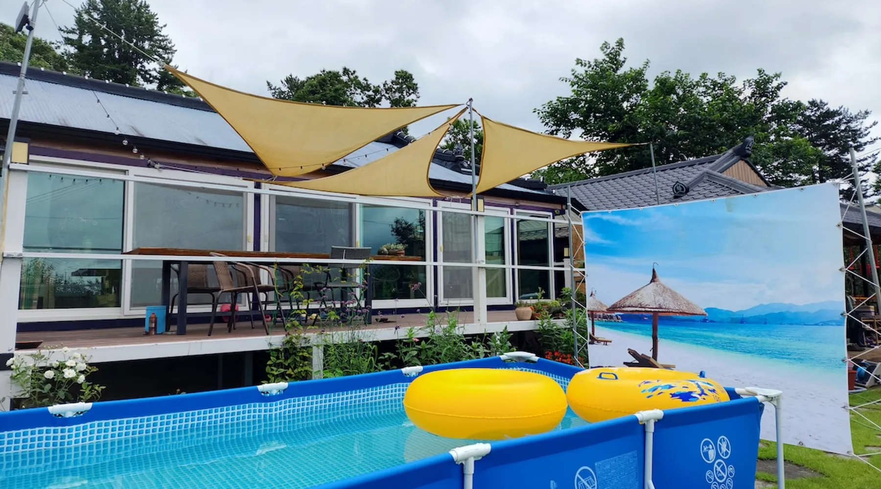 This is a 100-year-old private house in Hadong rural village. It will be a good space of memories for travelers looking for the rurality of Hadong countryside. Enjoy the 660m2 lawn yard and the atmospheric barbecue. Only one team per day uses the entire house, and if you find a quiet and quiet place, you won't be disappointed. -The kitchen has most of the cooking utensils and basic seasonings. (Various seasonings, bedding provided) -Toaster, rice cooker, electric range, water purifier. -Please buy what you need in advance. There are no convenience stores or marts nearby (7 minutes by car in the town). The space - If you book a barbecue fire one day in advance, we will prepare charcoal, grill, disposable grill, and other utensils. - Barbecue (20,000 KRW), bonfire (2 hours use, 20,000 KRW) -Index swimming pool (only in summer) (Dogs are not allowed in the accommodation) - One pet (5k or less) is possible- There is an additional cost of 20,000 won. * Dogs that are not marking or urine are not allowed. Insects and insects may appear due to the characteristics of hanok. (Please close the entrance door well) Guest access Full use of Hanok private house (The owner lives in Sarangbang.) Parking in the yard under the camellia tree at the entrance of the accommodation Cooking utensils, seasonings (cooking oil, salt, sugar, vinegar, soy sauce, red pepper powder) beach, Pick vegetables from the yard garden (spring-fall) ^ ^ Other things to note No smoking indoors Meat and fish grilling are not allowed indoors. Take special care when accompanied by children Be careful not to make noise in the evening (after 10 o'clock ^ ^) as it is a quiet rural village Cannot change dates 1 week in advance No refunds if canceled due to personal circumstances There are no nearby marts or convenience stores. Please use the mart 7 minutes away by car. Registration Details Region of Issuance: 경상남도, 하동군 License Type: 농어촌민박사업 License Number: 제17-하동-2025-0002호
