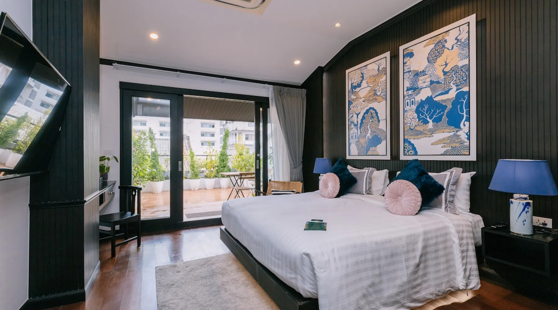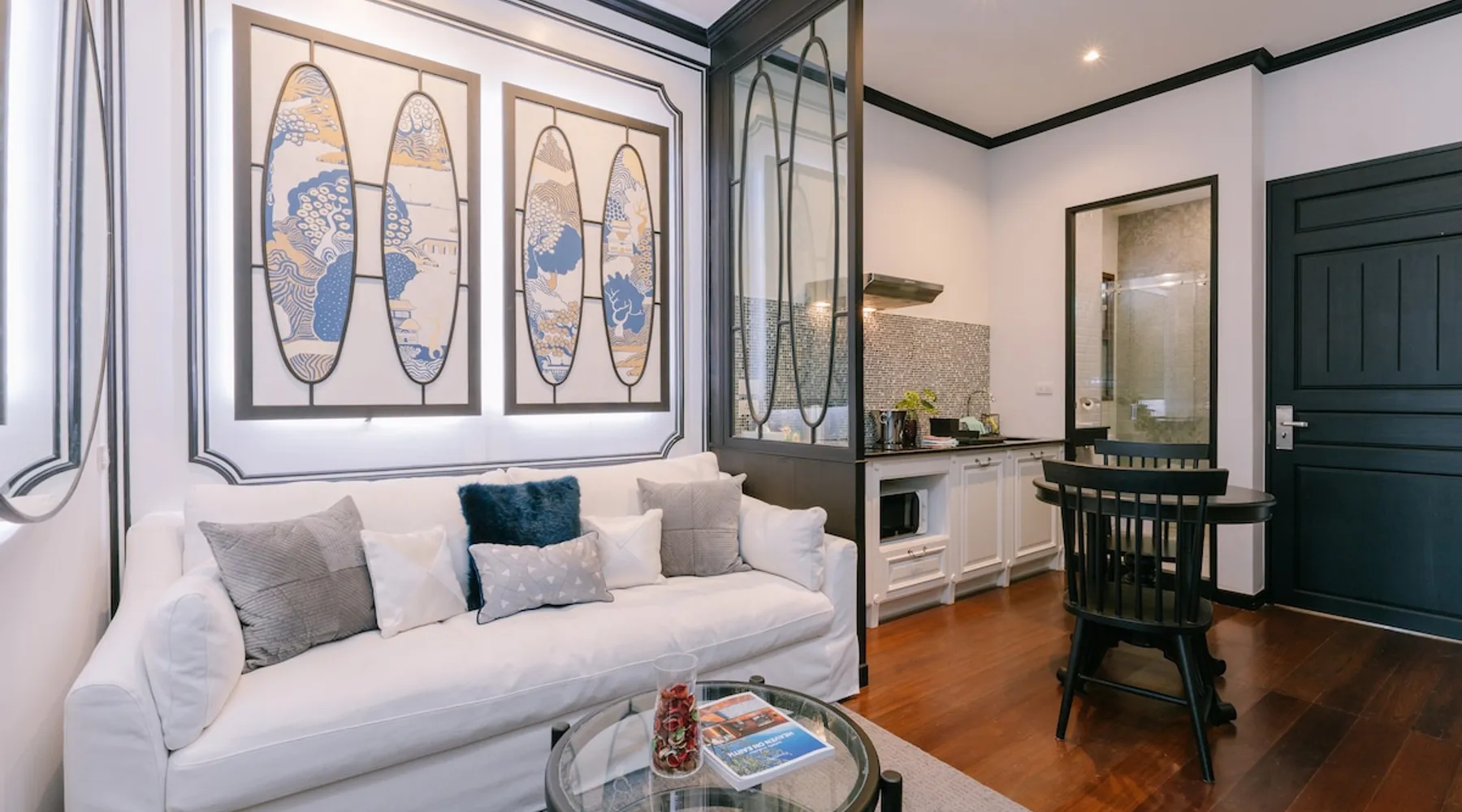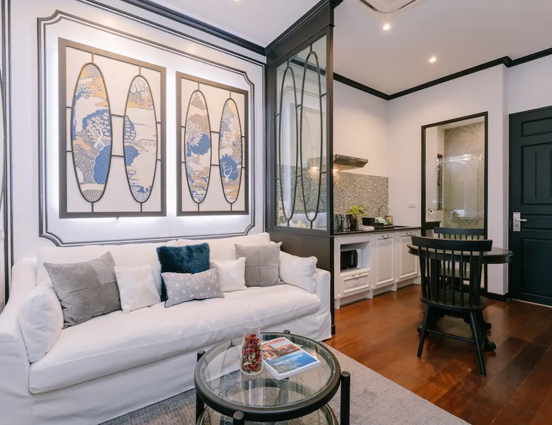 Nestled in Phuket Old Town, our 3-storey house features a charming café. AUTUMN room offers a captivating view of Thalang Road, the renowned walking street. Stand apart from the rest as you immerse yourself in an expansive balcony capturing Thalang Road's vibrant atmosphere like no other. Enjoy the comforts of a cozy living space, en-suite bathroom, fully equipped kitchen, and a smart TV. Indulge yourself in the lively ambiance of Phuket Old Town, where your comfort is our utmost priority! The space Step into the extraordinary charm of BAAN 125 STAY, a remarkable 3-storey house with a delightful café on the ground floor. Experience the allure of its unique design, featuring three 'Chimchae' open spaces that invite refreshing airflow, natural light, and rainwater collection. Discover a haven of comfort on the second and third floors, where four private studio rooms await. Accessible through the café, this exceptional room on the third floor provides a breathtaking view of Thalang Road, Phuket's renowned walking street. Stand apart from the rest as you indulge in a living room exuding romance and an expansive balcony that captures Thalang Road's vibrant atmosphere like no other. Enjoy the utmost comfort in all four units, equipped with air-conditioning for a pleasant stay in any weather. Each room boasts an en-suite bathroom, fully equipped kitchen, cozy living rooms, and a high-definition TV. Our self-service operation grants you the freedom of independent living while providing all the essentials. Rest assured, our attentive staff is readily available to assist with any inquiries or special requests. Your comfort and satisfaction are our top priorities, ensuring an unforgettable experience at BAAN 125 STAY. Guest access Located in the heart of vibrant Phuket Old Town, BAAN 125 STAY offers convenient access to transportation options, including public transportation, taxis (both car and motorbike), and free public parking on nearby streets. With essential amenities like restaurants, cafes, convenience stores, and pharmacies within walking distance, this prime location ensures an immersive experience of Phuket Old Town's rich culture. Whether you prefer to explore on foot or venture out by various modes of transportation, BAAN 125 STAY provides the ideal base for your stay. Other things to note Please note that parking is only allowed on one side of Thalang Road during the day. DO NOT park your vehicle on the left side of the road between 07:00-19:00 on EVEN numbered days, and DO NOT park on the right side of the road between 07:00-19:00 on ODD numbered days. Please ensure your vehicle is parked on the correct side of road for the following morning, should you intend to park overnight and leave after 7am. Every Sunday of the year, Thalang Road turns into an exuberant Walking Street. Therefore, please move your vehicle from Thalang Road by 13:00 on Sundays. Keycard provided should be kept with guests at all times when not in the room, as it is needed to open the front door of BAAN 125 STAY and guests' room.
