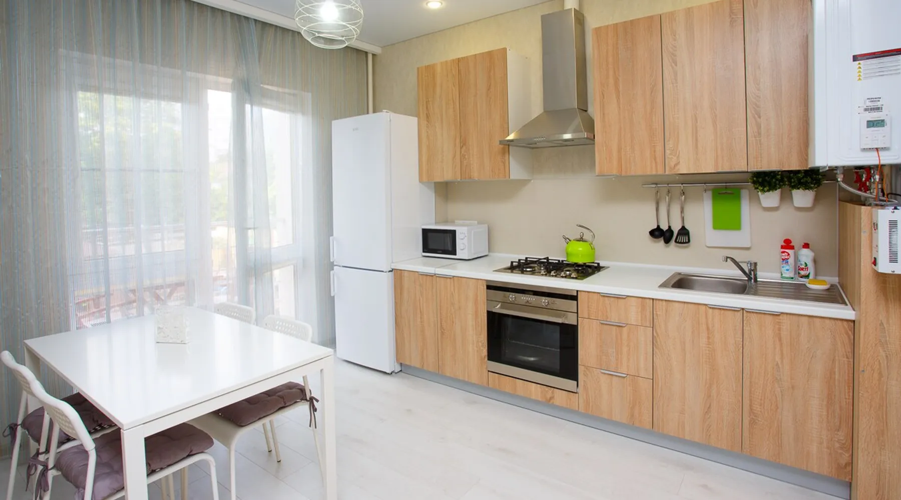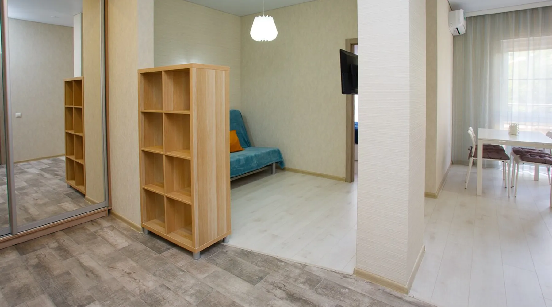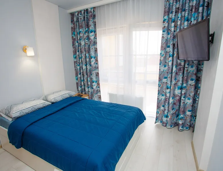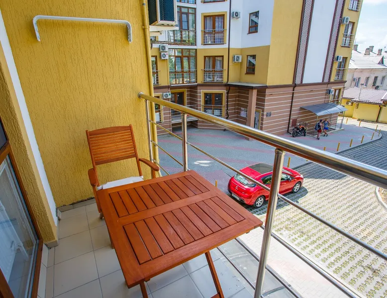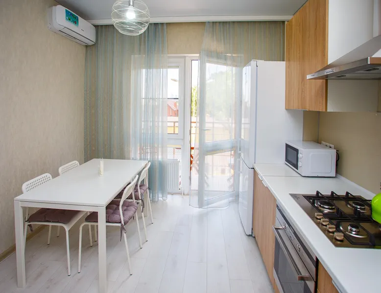 A cozy and light apartment on the second floor of a small 5-storied building overlooking a quiet courtyard with mountain views. The house is located in the central district of the city, where it takes 10 minutes to get to the sea along a shady street. Near the house there is a sanatorium "Krasnaya Talka", where you can use SPA services, visit a fitness center and an outdoor swimming pool. The space The apartment has all the apartment for a comfortable stay for 4 people: fully equipped kitchen with gas cooker, oven, microwave, refrigerator with freezer, necessary utensils and a large dining table. There are two large storage cabinets in the hallway and the bedroom, an iron and an ironing board. Each room is air-conditioned, cable TV and WI-FI ARE PROVIDED. Bathroom washing machine, electric towel dryer and hinged clothes dryer. There are towels and a set of bed linen for each guest. On the balcony you will be able to enjoy the evening sunset and the mountain view at a small table. Guest access Entire apartment