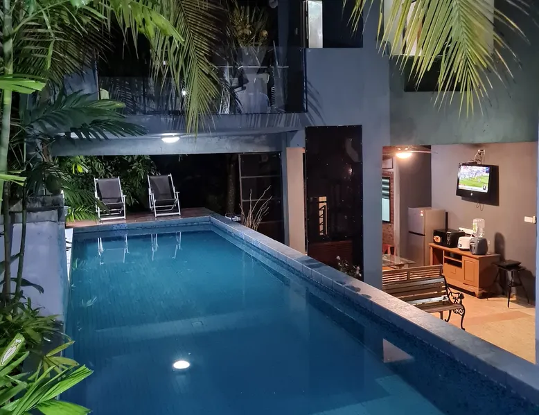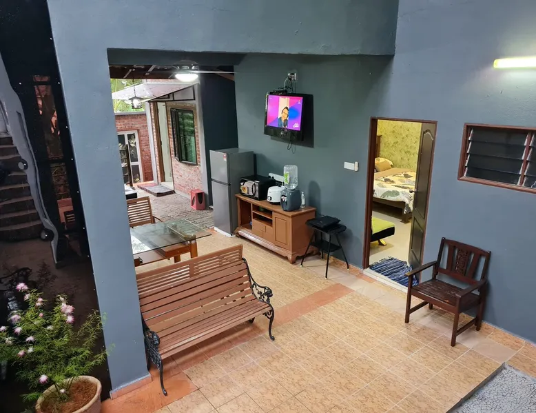 The homestay is designed for an active and healthy lifestyle. Host is staying in the same building but guest will have private space and rooms (3+1). All facilities including private pool and BBQ pit are exclusively for guests during the stay. Complete with WiFi and multi-channel TV for infotainment. No pets, pork, alcoholic drinks or drugs allowed. Nearby to UPM, MAEPS, IOI City Mall, Putrajaya, Kinrara, Bukit Jalil, etc. Comfortable for 7 guests (max 9). The space The homestay is the back portion of the whole house which is attached to the Host's residence in Seri Kembangan. Resort themed homestay with open living space and private pool. Located in a 'gated & guarded', low density and green neighbourhood. Open parking for up to 3 cars is available. Guest access 3 air-conditioned bedrooms, 1 bedroom with fan, 2 bathrooms, 1 washing / changing room, open and spacious living space, outdoor pool and green area for simple hiking and trekking. Open parking for 3 cars is available. Other things to note Guests need to take a main outdoor staircase (14 steps) to the homestay, pool and garden. Outdoor staircase to Bedroom 3.