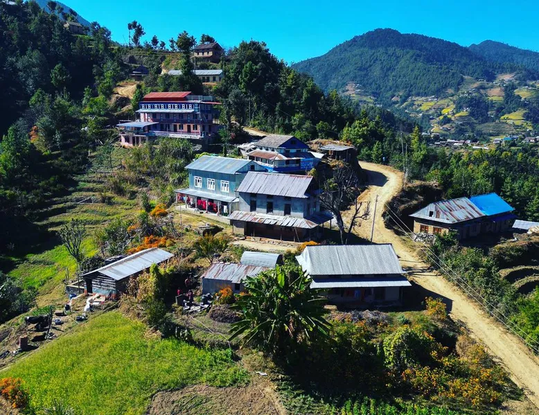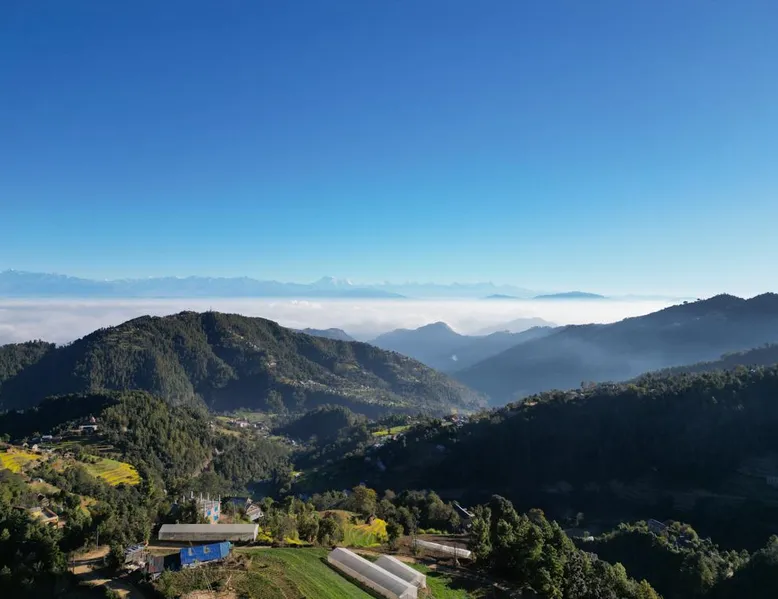 This unique mountains farm homestay in beautiful small village with panaromic view of the Himalayan range, 45 km fr Kathmandu. We offer pure vegetarian organic farm grown food. Crystal clean mountain drinking water, buffalo milk, honey. Free wi-fi.