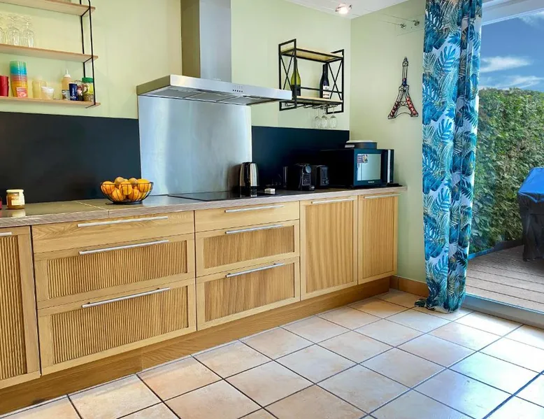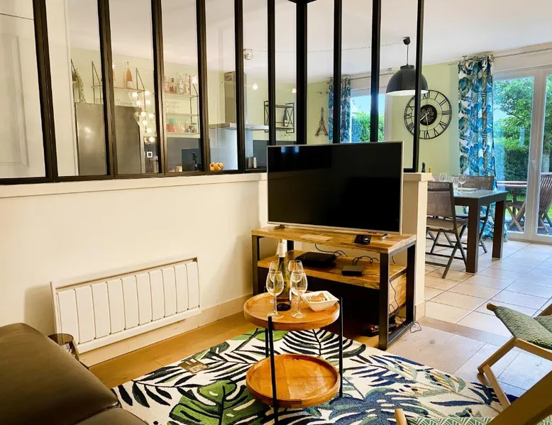 Comfortable Accommodations: Reine Bow - YourHostHelper in Trouville-sur-Mer offers a holiday home with three bedrooms and one bathroom. The property includes a terrace and free WiFi, ensuring a pleasant stay. Modern Amenities: The home features a fully equipped kitchen with a refrigerator, microwave, dishwasher, oven, and stovetop. Additional amenities include a washing machine, TV, and free on-site parking. Prime Location: Located 2.5 mi from Deauville - Normandie Airport, the holiday home is a short walk from Trouville Beach (17 minutes) and Trouville-Deauville SNCF Railway Station (2297 feet). Nearby attractions include Casino Barrière (14 minutes) and Port Morny (0.6 mi). Local Activities: Guests can enjoy water sports in the surrounding area, providing ample opportunities for outdoor enthusiasts. The fully equipped kitchen features a stovetop, a refrigerator, a dishwasher and an oven. Featuring a terrace, this holiday home also provides a washing machine, a tea and coffee maker and a flat-screen TV. The unit offers 5 beds.