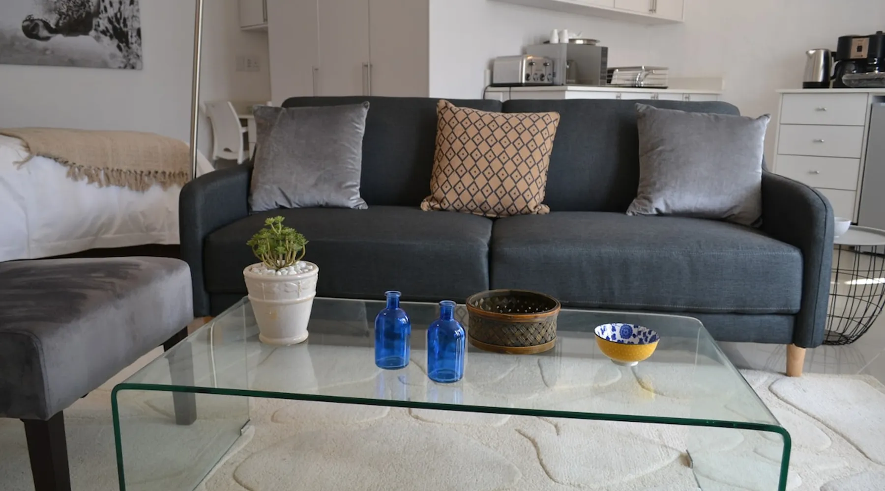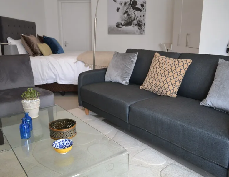Spacious and comfortable ground floor unit, ideal for short stays and general unwinding. Tv with Openview decoder, your home away from home. This unit is large and airy and offers a Queen sized bed, bathroom en suite, open plan lounge/dining area and a fully equipped kitchen with fridge, microwave, stove, kettle, toaster and coffee machine. Complimentary Coffee, Tea, Sugar, Milk and Water. Pool and on site parking for guests.