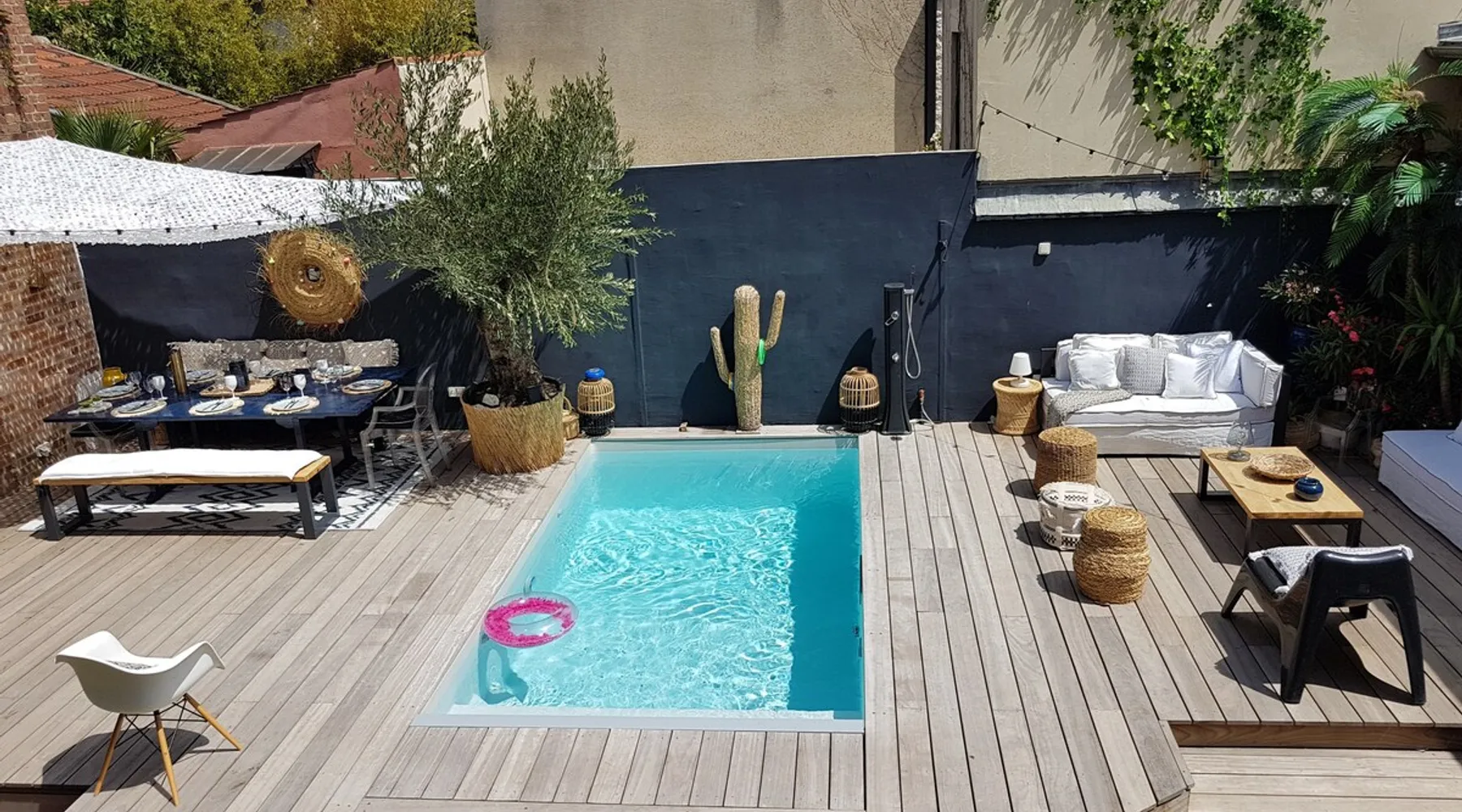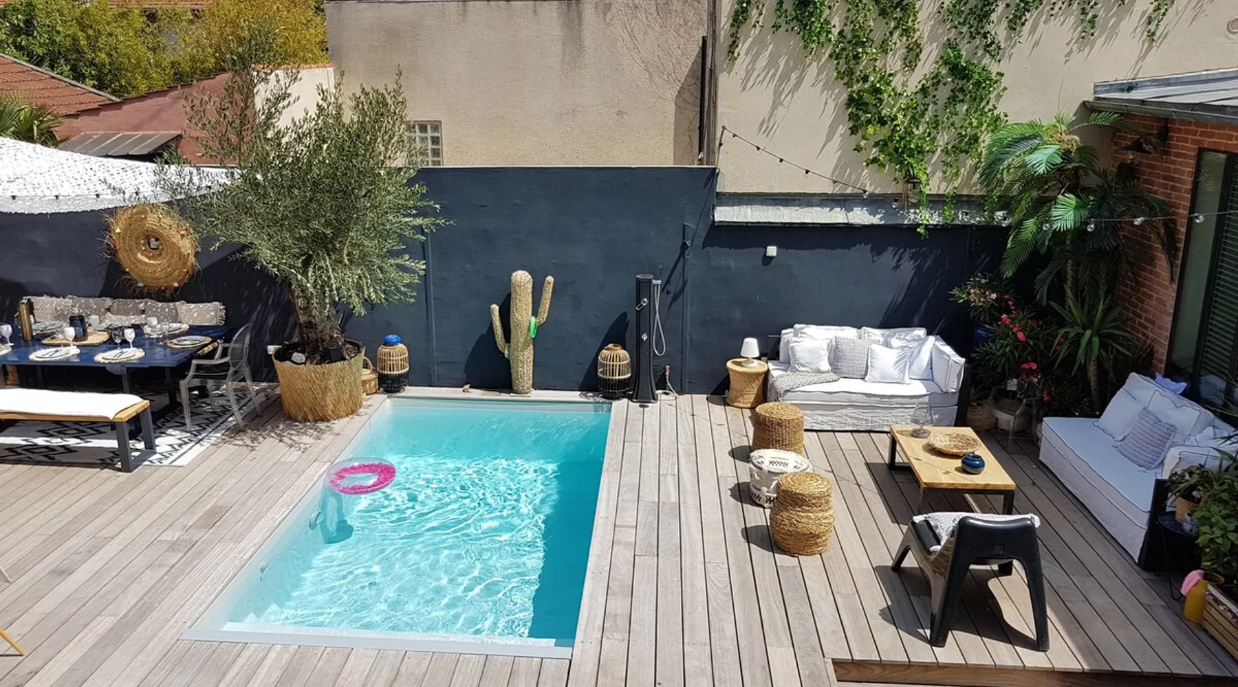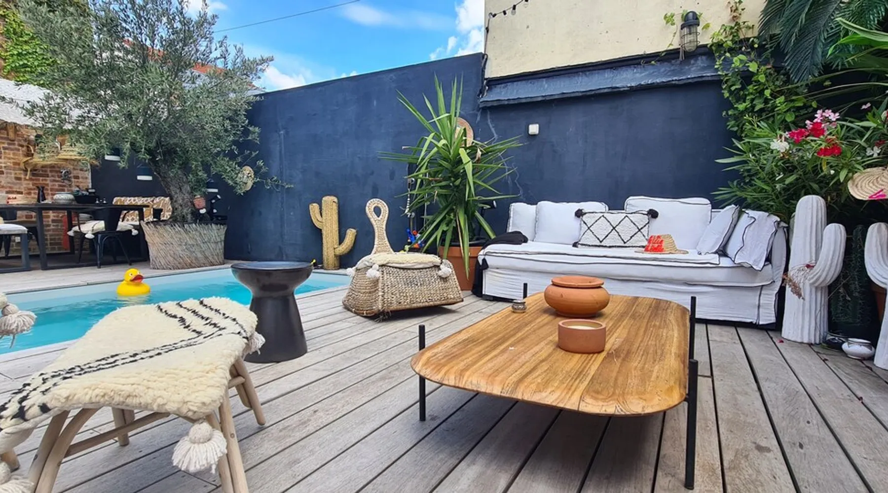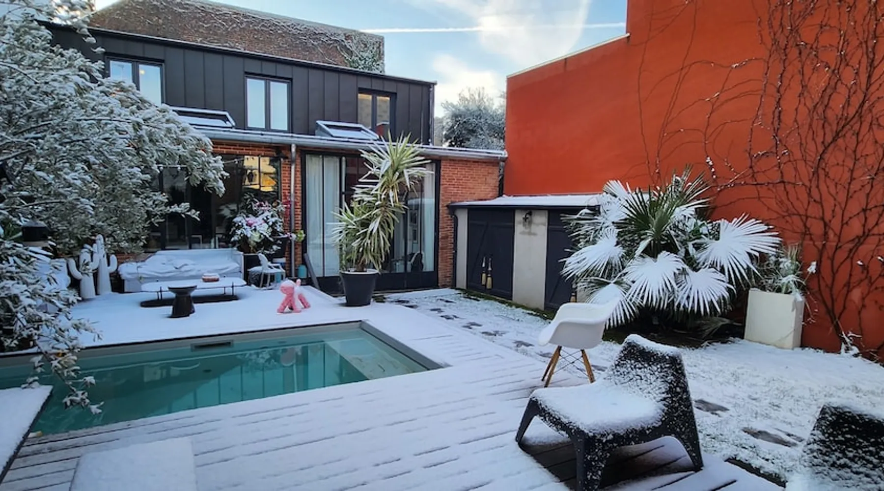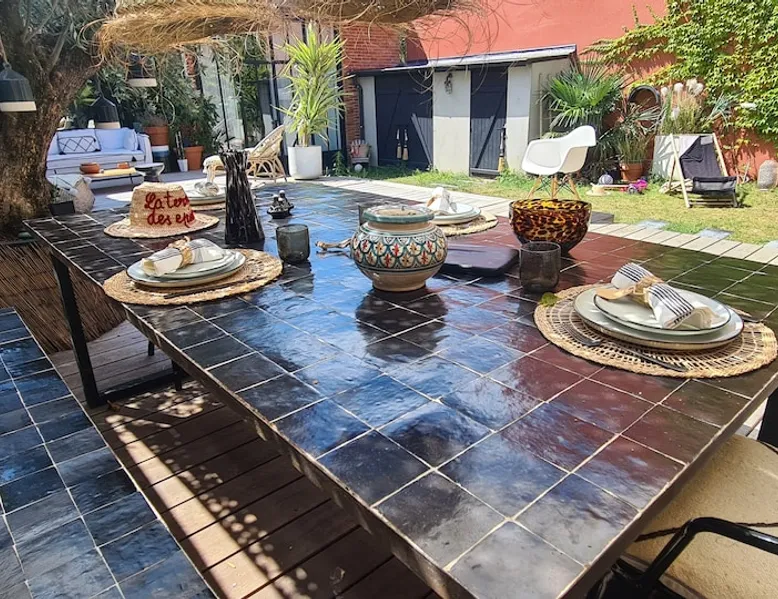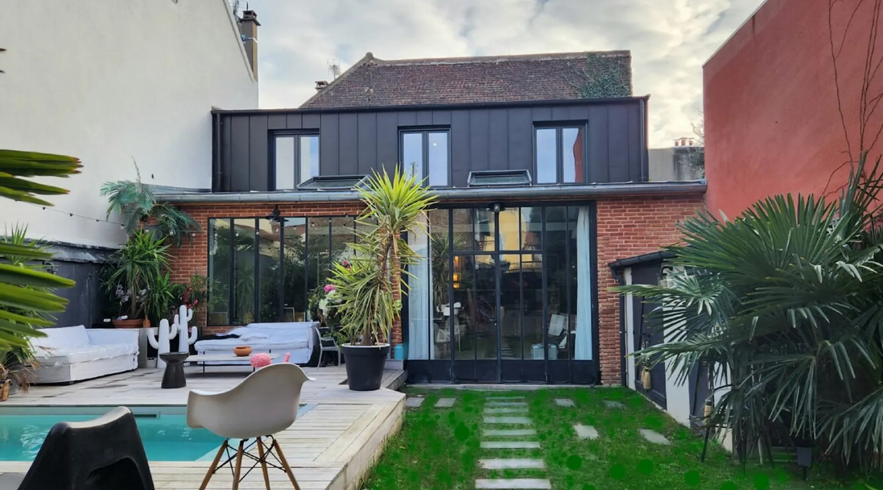 2 large houses to designate 170m2 each, 340m2 in total, 11 beds. Perfect for 2/3 families,Ideally located 3 km from Paris Champs Elysées Garden, secure heated pool, 2 living rooms, 2 kitchens 6 bedrooms. Bus 30 meters to Paris or to get there by bike on the bike paths.Tramway at the end of the street for the business center or metro 5 minutes from Paris stem Lazare 10 minutes by train Shooting/show OK The space 2 large separate houses of 170m2 each, 370m2 in total, both separated by the garden and pool Ideally located at the 2024 Olympics, very close to Paris, Very well served by public transport. Bus, RER, trains, subways, tram. 2 large living rooms of 90 m2 each, two large American kitchens, floors 6 bedrooms (3 bedrooms per house), 4 bathrooms/shower/WC Up to 16 beds Nice and large exteriors in a quiet area with its heated secure swimming pool. - 15 minutes from the Olympic Village 2024 by the city's metro -4 minutes by bike from the Olympics of the Hockey events on grass, - Between 15 and 30 minutes of all events in Paris, by tram, metro, trains, bus, car or bikes. A small haven of peace with heated swimming pool all year round, a holiday atmosphere in Marrakech or Bali à la Parisienne, and 10/15 minutes from the Champs Élysées Paris In a neighborhood is family-friendly, quiet and residential. You can park 2 cars in the main driveway of the houses or free parking spaces on the street. Bike trails in front of the house to go to Paris Guest access Guests can use both houses, garden, swimming pool, bbq and bikes and scooters, bath towels, buoys... Free parking spaces in the streets (unless the Town Hall blocks places on the street for the Olympics) 2 parking spaces in the driveway of house 1, (one behind the other) Other things to note If you stay more than 1 week please take out the garbage on the days of passage Registration details 9202500028515