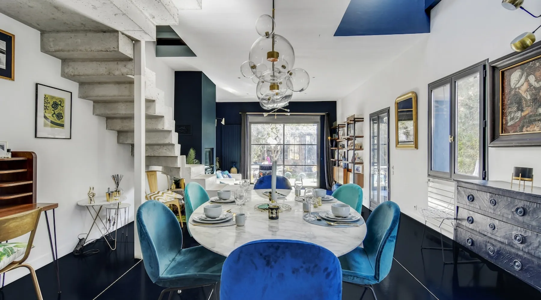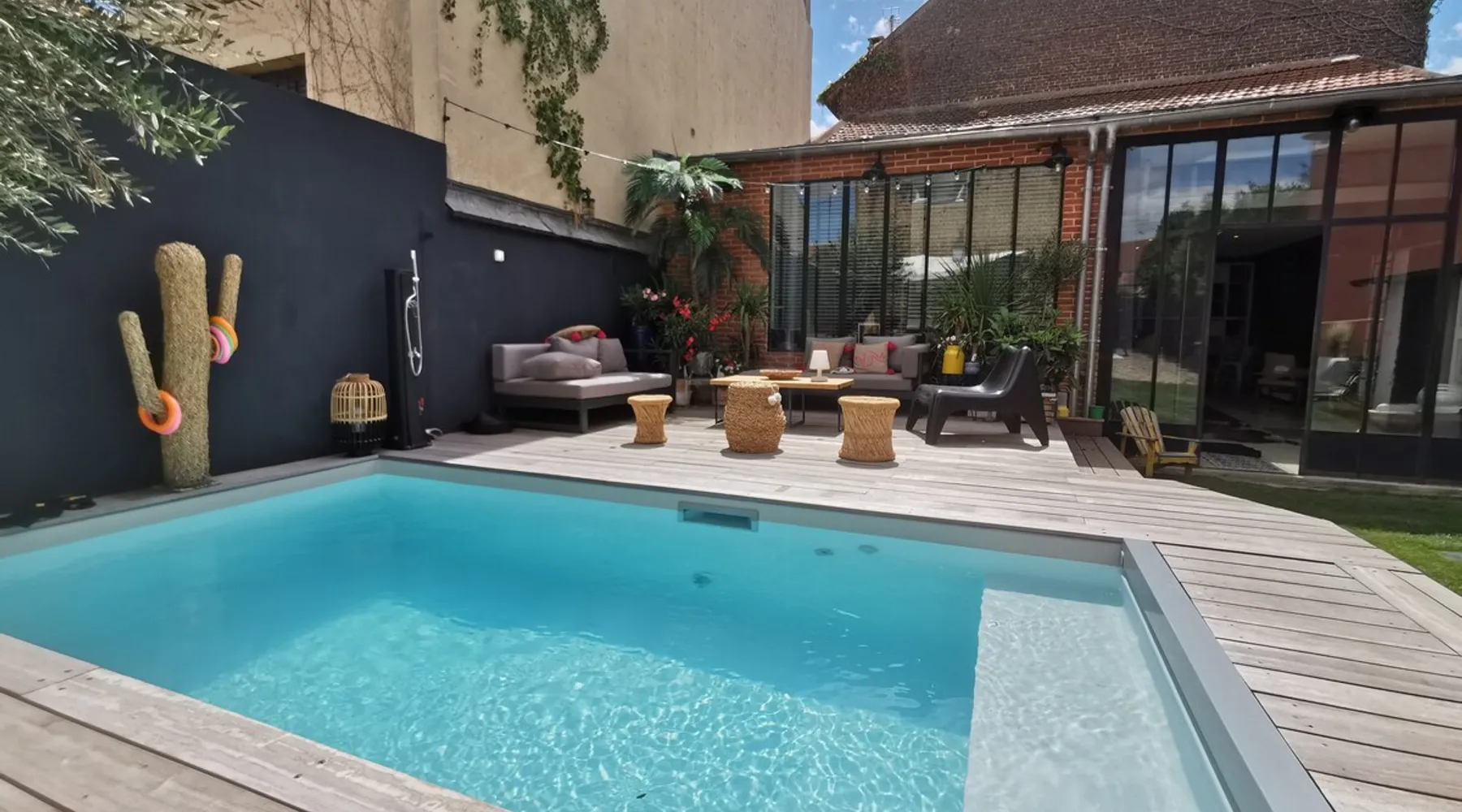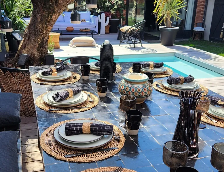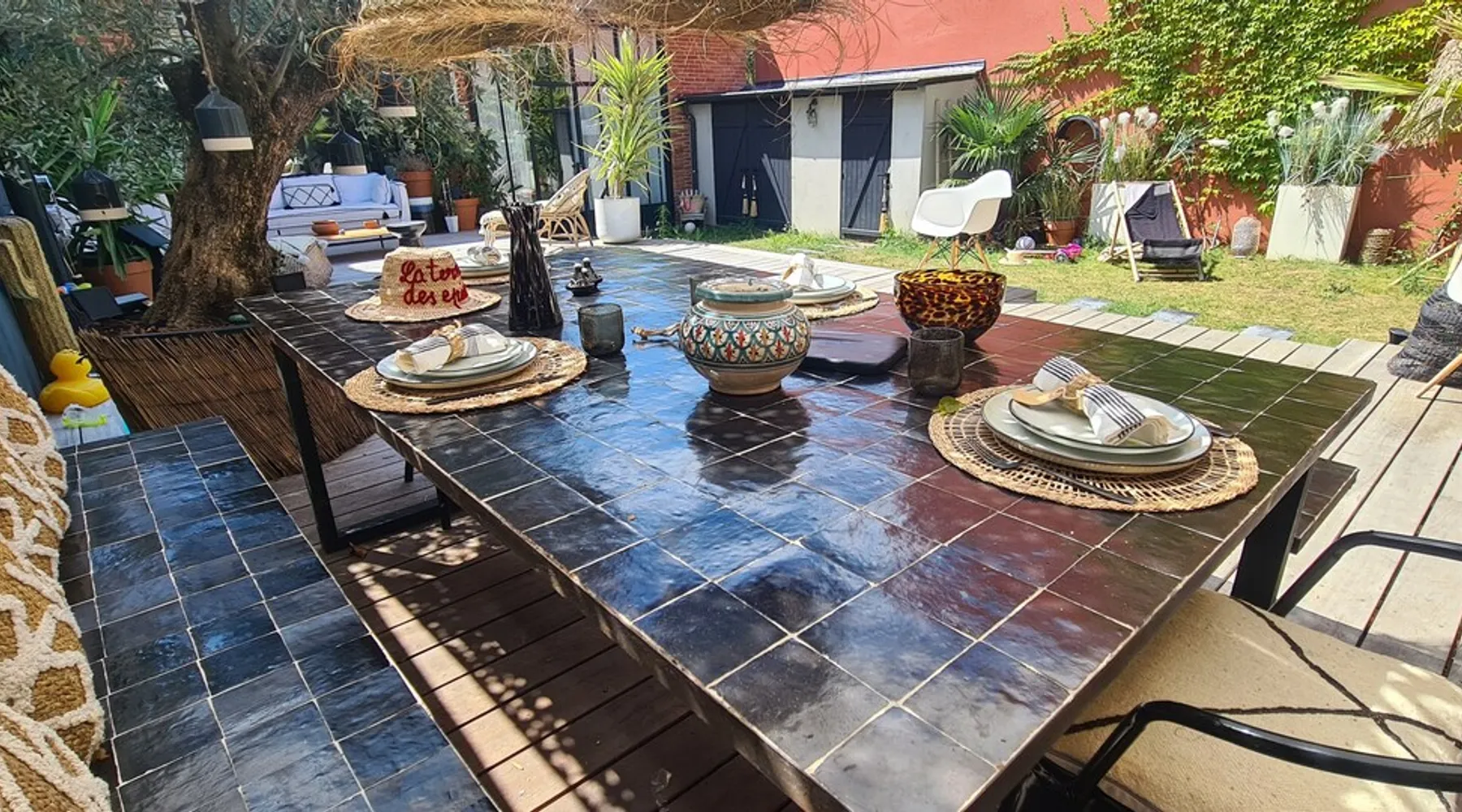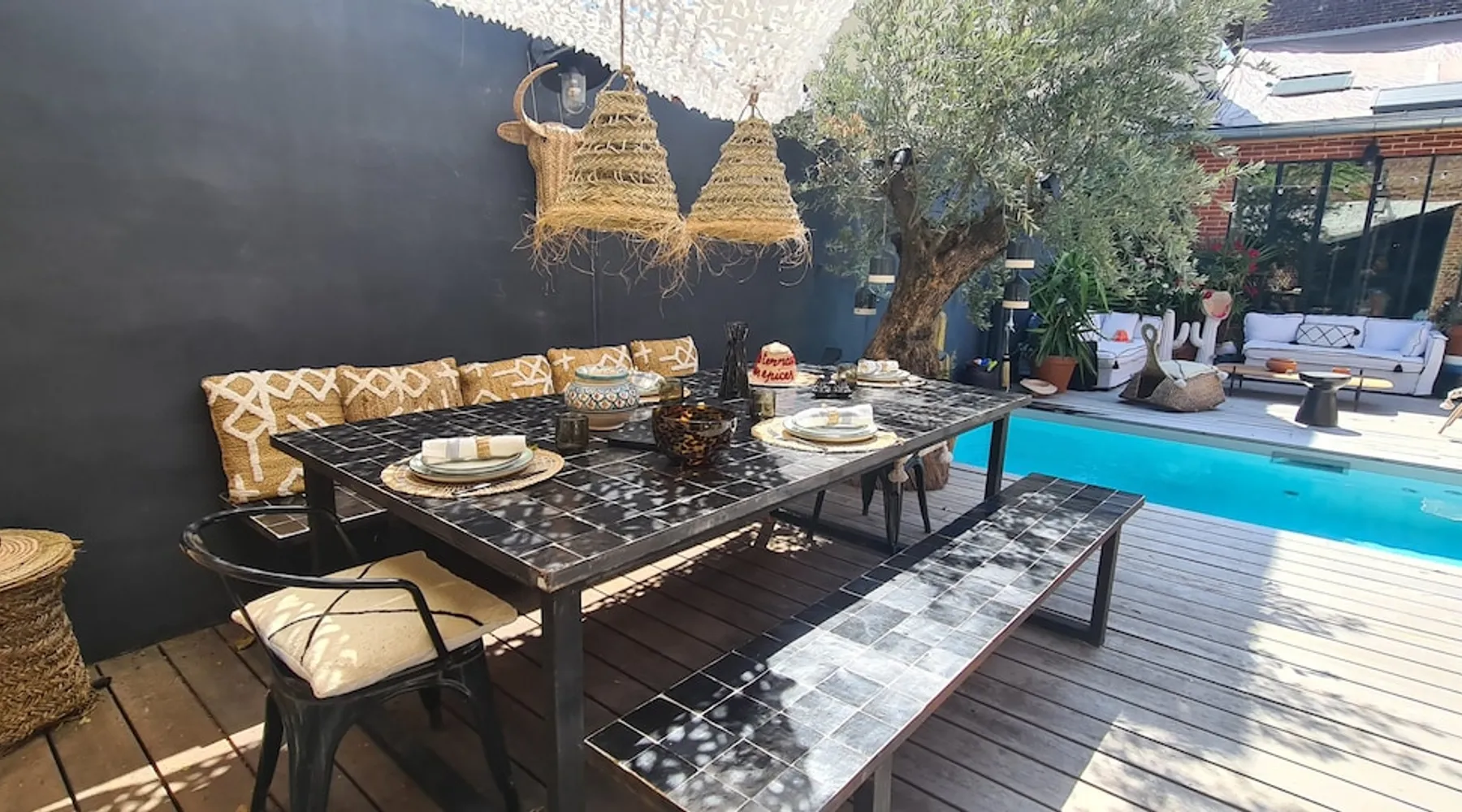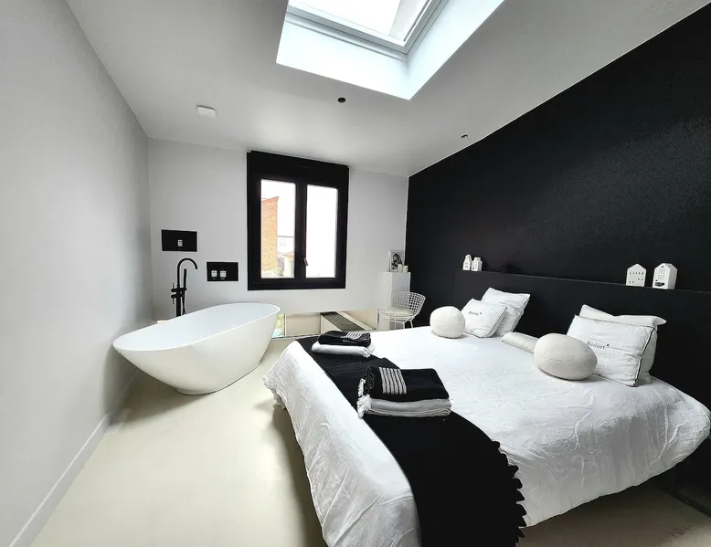 2 large houses to designate 170m2 each, 340m2 in total, 11 beds. Perfect for 2/3 families,Ideally located 3 km from Paris Champs Elysées Garden, secure heated pool, 2 living rooms, 2 kitchens 6 bedrooms. Bus 30 meters to Paris or to get there by bike on the bike paths.Tramway at the end of the street for the business center or metro 5 minutes from Paris stem Lazare 10 minutes by train Shooting/show OK The space 2 large separate houses of 170m2 each, 370m2 in total, both separated by the garden and pool Ideally located at the 2024 Olympics, very close to Paris, Very well served by public transport. Bus, RER, trains, subways, tram. 2 large living rooms of 90 m2 each, two large American kitchens, floors 6 bedrooms (3 bedrooms per house), 4 bathrooms/shower/WC Up to 16 beds Nice and large exteriors in a quiet area with its heated secure swimming pool. - 15 minutes from the Olympic Village 2024 by the city's metro -4 minutes by bike from the Olympics of the Hockey events on grass, - Between 15 and 30 minutes of all events in Paris, by tram, metro, trains, bus, car or bikes. A small haven of peace with heated swimming pool all year round, a holiday atmosphere in Marrakech or Bali à la Parisienne, and 10/15 minutes from the Champs Élysées Paris In a neighborhood is family-friendly, quiet and residential. You can park 2 cars in the main driveway of the houses or free parking spaces on the street. Bike trails in front of the house to go to Paris Guest access Guests can use both houses, garden, swimming pool, bbq and bikes and scooters, bath towels, buoys... Free parking spaces in the streets (unless the Town Hall blocks places on the street for the Olympics) 2 parking spaces in the driveway of house 1, (one behind the other) Other things to note If you stay more than 1 week please take out the garbage on the days of passage Registration details 9202500028515