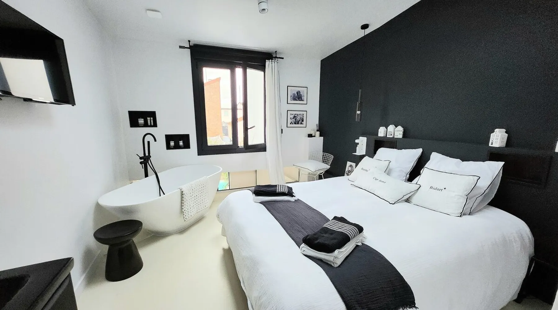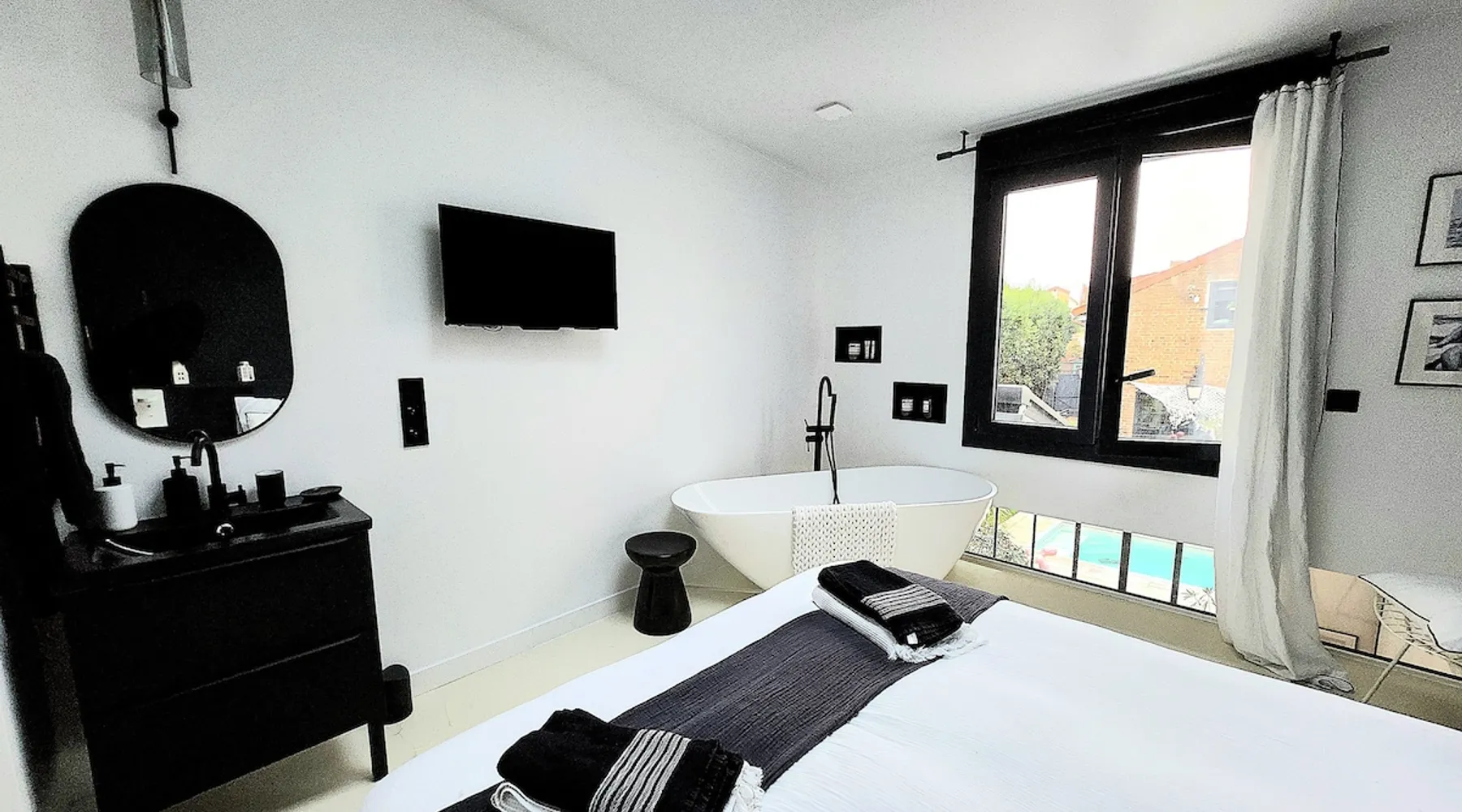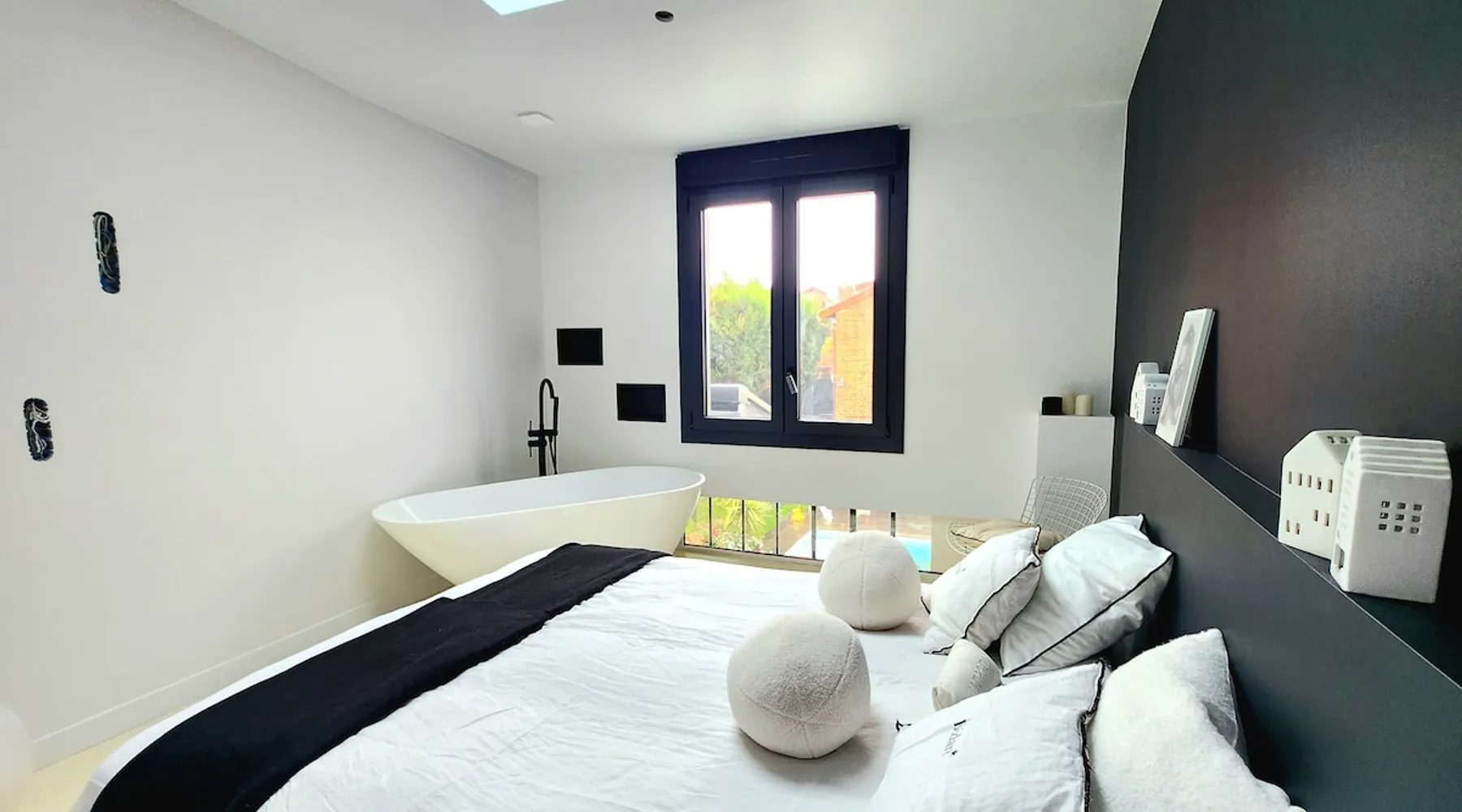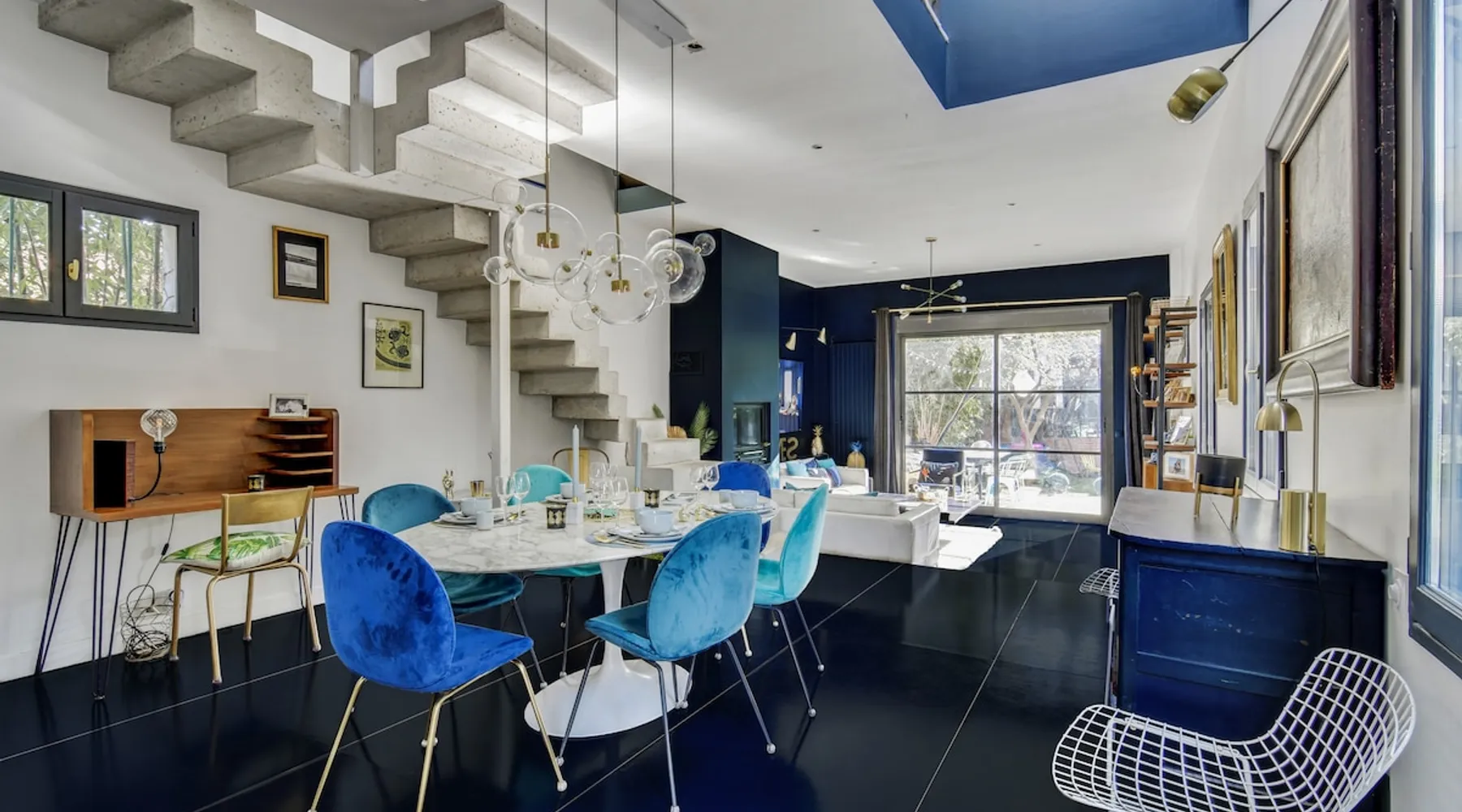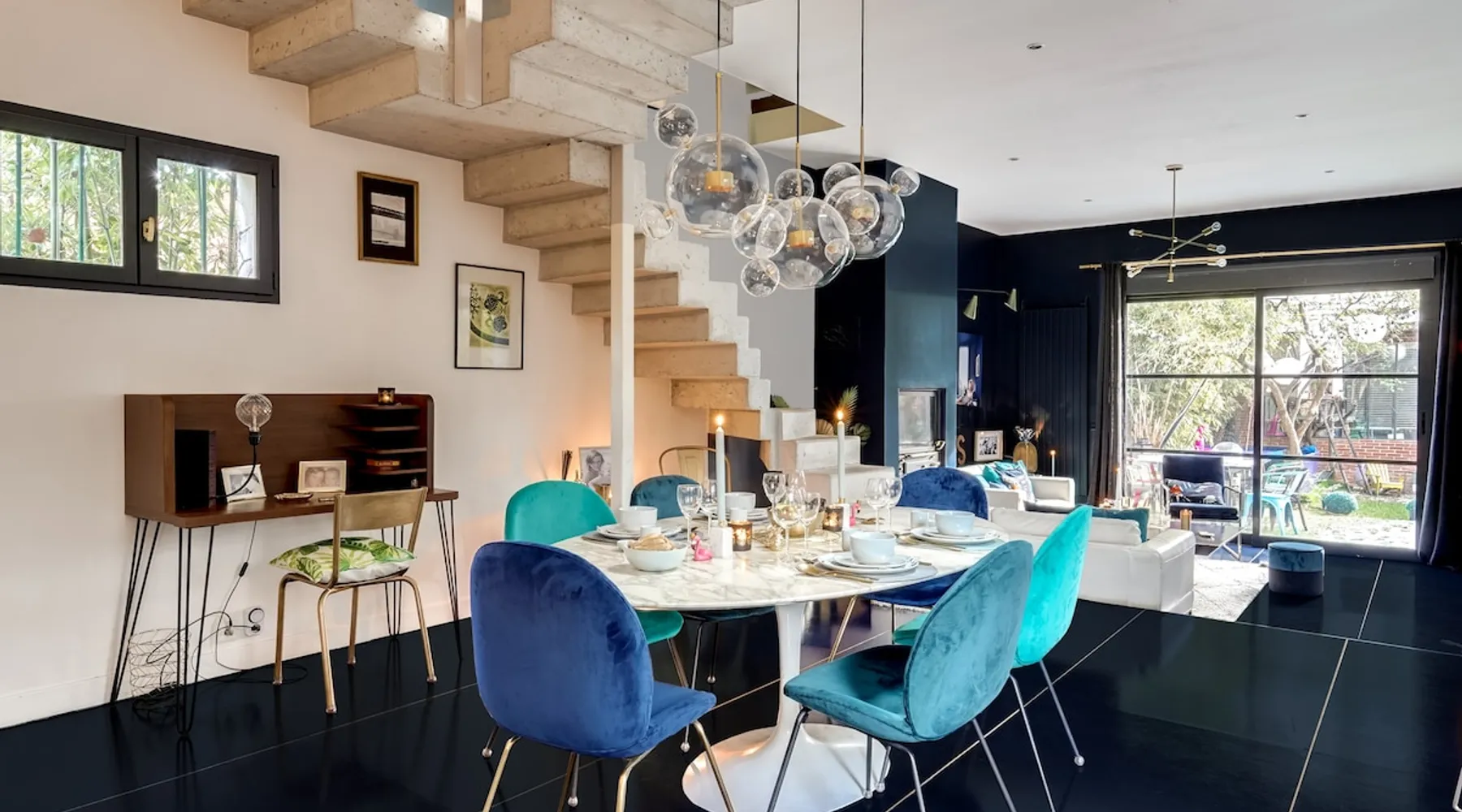 2 large houses to designate 170m2 each, 340m2 in total, 11 beds. Perfect for 2/3 families,Ideally located 3 km from Paris Champs Elysées Garden, secure heated pool, 2 living rooms, 2 kitchens 6 bedrooms. Bus 30 meters to Paris or to get there by bike on the bike paths.Tramway at the end of the street for the business center or metro 5 minutes from Paris stem Lazare 10 minutes by train Shooting/show OK The space 2 large separate houses of 170m2 each, 370m2 in total, both separated by the garden and pool Ideally located at the 2024 Olympics, very close to Paris, Very well served by public transport. Bus, RER, trains, subways, tram. 2 large living rooms of 90 m2 each, two large American kitchens, floors 6 bedrooms (3 bedrooms per house), 4 bathrooms/shower/WC Up to 16 beds Nice and large exteriors in a quiet area with its heated secure swimming pool. - 15 minutes from the Olympic Village 2024 by the city's metro -4 minutes by bike from the Olympics of the Hockey events on grass, - Between 15 and 30 minutes of all events in Paris, by tram, metro, trains, bus, car or bikes. A small haven of peace with heated swimming pool all year round, a holiday atmosphere in Marrakech or Bali à la Parisienne, and 10/15 minutes from the Champs Élysées Paris In a neighborhood is family-friendly, quiet and residential. You can park 2 cars in the main driveway of the houses or free parking spaces on the street. Bike trails in front of the house to go to Paris Guest access Guests can use both houses, garden, swimming pool, bbq and bikes and scooters, bath towels, buoys... Free parking spaces in the streets (unless the Town Hall blocks places on the street for the Olympics) 2 parking spaces in the driveway of house 1, (one behind the other) Other things to note If you stay more than 1 week please take out the garbage on the days of passage Registration details 9202500028515