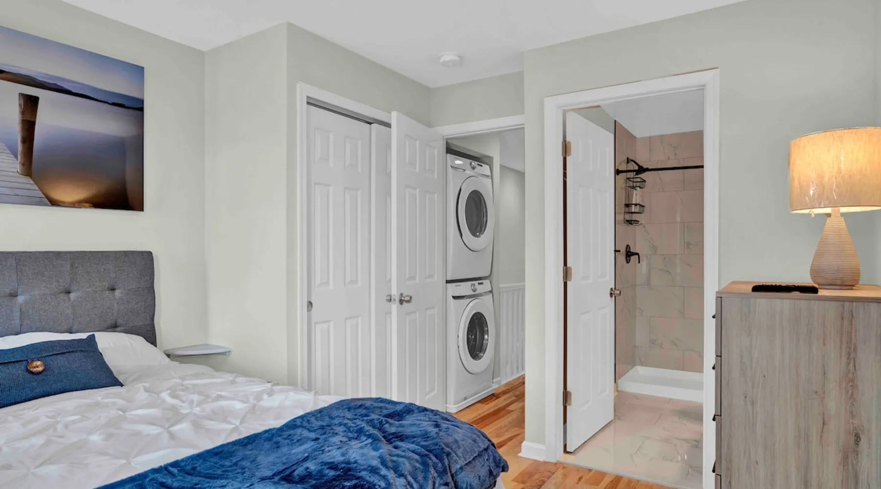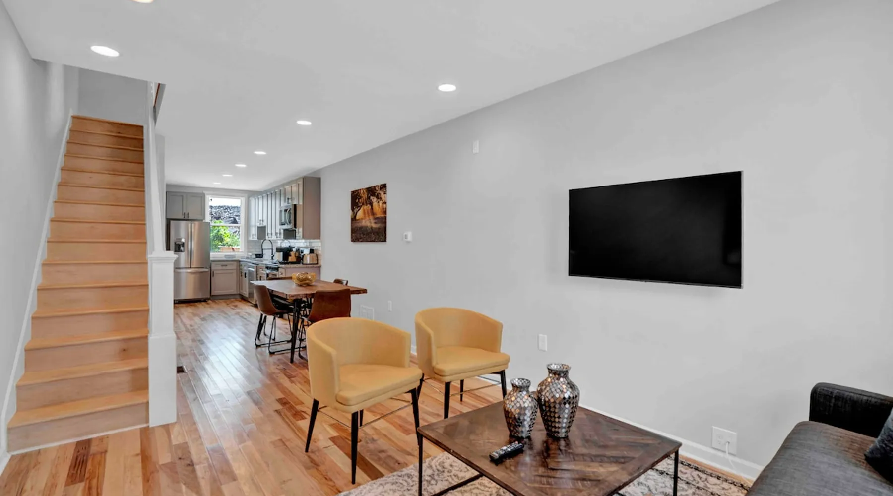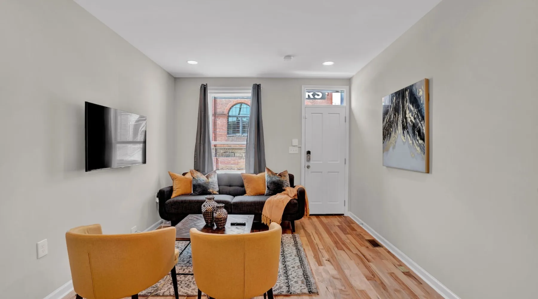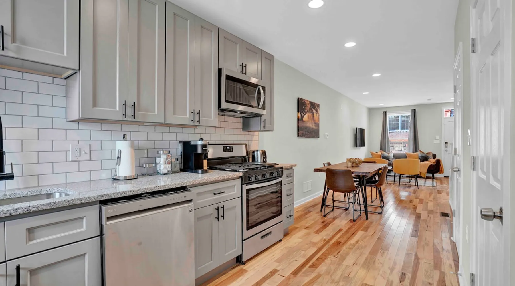 Experience the perfect combination of modern convenience and Baltimore charm in this beautifully furnished townhome! With an open concept design and modern amenities, you'll enjoy a comfortable stay in a convenient location within a ten minute walk to Johns Hopkins Hospital. The employee and student shuttle stops on this block! The space Introducing this gorgeous townhome that perfectly blends modern convenience with the timeless charm of Baltimore. As you step inside, you'll be wowed by the open layout and stunning hardwood floors. The main floor is a dream with a top-notch kitchen featuring stainless steel gas appliances, granite countertops, and a dining area that comfortably seats four. Oh, and let's not forget the handy powder room right on this level, so your guests won't have to go upstairs. When you're ready to soak up some sunshine, just head outside to the fenced patio and enjoy the great outdoors. Upstairs, you'll find two spacious bedrooms, each with its own bathroom. These bedrooms are fully furnished with queen beds, dressers, closets, floating nightstands, Samsung Smart TVs, blinds, and blackout curtains. Laundry day? No problem! The upper level also houses a full-size washer and dryer to make your life easier. Need some extra space? The lower level is your blank canvas! Use it as storage, set up a home office, or transform it into your personal workout sanctuary. Rest easy knowing that this area is accessible only from inside the home, providing an added layer of security and peace of mind. Your safety is our priority. We've got you covered with security front and rear doors, as well as a cutting-edge Ring Alarm security system and Ring doorbell. Rest easy knowing that your home and belongings are well-protected. We want you to feel comfortable and connected during your stay. That's why we've got central heating and cooling to keep you cozy and high-speed Wi-Fi throughout the entire home. And guess what? We've even stocked the place with basic toiletries and cleaning supplies, so you can settle in without a worry. And yes, we're pet-friendly! We know how important your furry friends are, so bring them along for the ride. Whether your stay is mid to long-term, this home is poised to cater to your every need. Don't miss out on the chance to book your stay and experience a truly hassle-free trip to Baltimore. Guest access The entire home is exclusively yours, without interruption for the duration of your stay, so relax, unwind, and make yourself at home! Other things to note Perfect for travel nurses, residents, or medical/nursing students! The monthly rate includes a generous $350 utility allowance, which covers gas/electric, water, and WiFi. In our experience, most guests stay well within this amount. If your usage exceeds the allowance, we’ll provide copies of the bills and submit a payment request through Airbnb for the difference. Guests with pets: there is an additional $150 pet cleaning fee. We’ll send the payment request link on the day of your check-in.