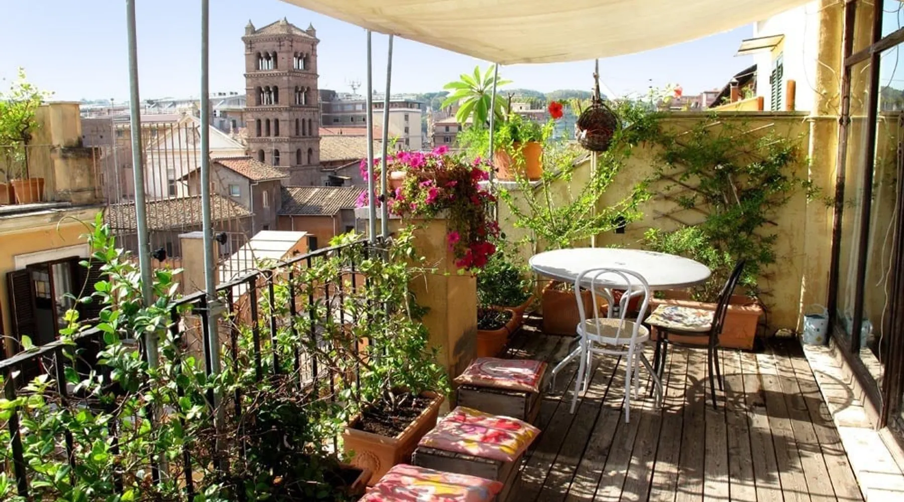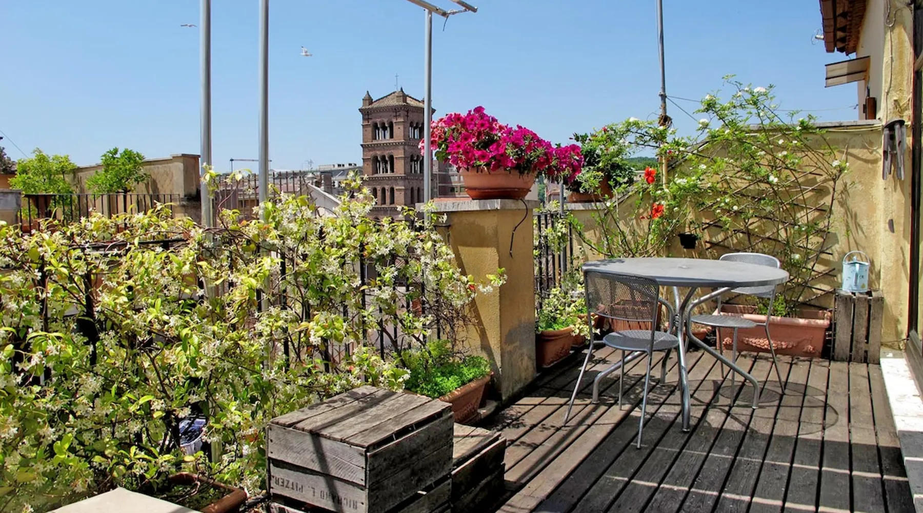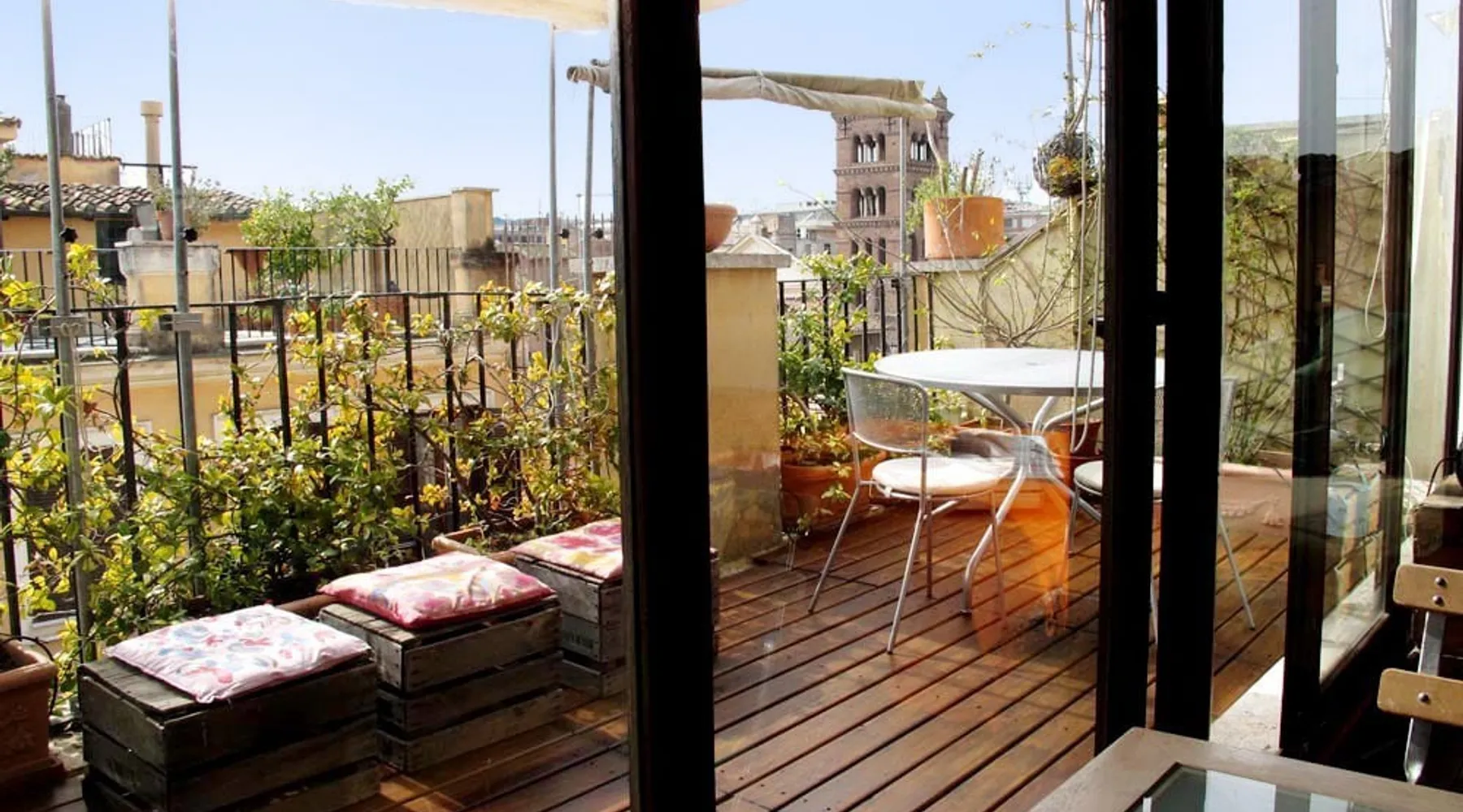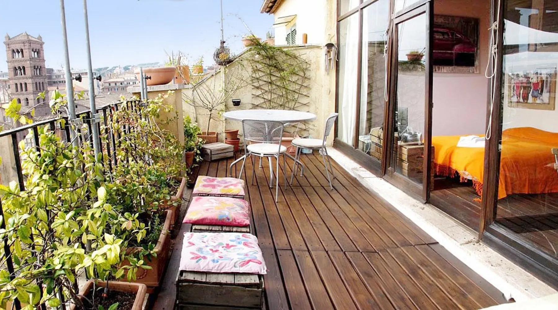 Artistic Loft, with terrace overlooking the ancient Roman rooftops! The apartment is a short walk from all the main attractions. There are bars, groceries, a bakery & grocery store and fabulous restaurants immediately near the building. The space A wonderful love nest! Artistic Loft with terrace on the ancient Roman rooftops! This spectacular, authentic artist studio has one of the best views in Trastevere. The apartment is ideal for couples who really want to spend the most romantic nights above the rooftops of ancient Trastevere. The penthouse is very bright and cozy. It’s located on the fourth floor of an old building (no elevator) in a very nice area of Trastevere. It comprise of a large living room with a queen size bed, two comfortable armchairs, a dining table, a spacious terrace with dining table, a comfortable outdoor sofa and sun loungers, a fully equipped kitchenette, a comfy entrance area, a modest bathroom, complete with toilet, sink, bidet and shower (warm water is produced by an electric water heater that contains 80 liters of hot water.) Complete with sheets, towels, kitchen utensils, pots and pans, dishes, cups and glasses, crockery, moka, kettle, toaster, microwave, hair dryer, iron and ironing board, satellite TV with international channels, WiFi internet, heating and air conditioning. Located in a romantic area of Trastevere, next to Piazza Santa Cecilia. The apartment is a short walk to all the main attractions. It is only 3 to 20 minutes walk from all the famous squares and monuments: 10 minutes from the Roman Forum and Campo de Fiori (only 600 meters away). In about 15 -20 minutes walk you can reach Piazza Navona, the Pantheon, Colosseum, Trevi Fountain and St. Peter's Basilica. The apartment is only 200 meters from the bus stop and not far from the metro (1200 meters) (which you don't need to use because you can walk or take a short bus ride to get to all the tourist locations). Nice bars, a bakery & grocery store, and fabulous restaurants are right next to the building. The location is the best you could wish for!