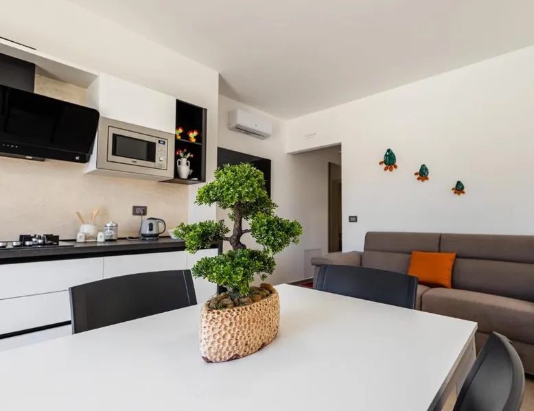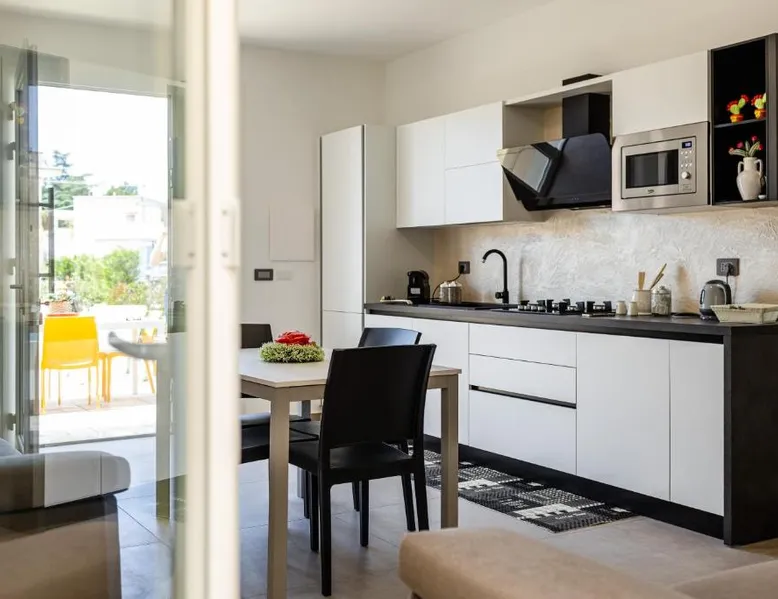 Comfortable Accommodations: La Collina di Montegrappa in Tuglie offers aparthotel suites with private and shared swimming pools. Each unit features air-conditioning, a kitchenette, and a private bathroom. Relaxing Amenities: Guests can enjoy an infinity swimming pool, sun terrace, and lush garden. Additional facilities include a hot tub, outdoor seating area, and free WiFi. Convenient Location: Located 47 mi from Brindisi Airport, the aparthotel is near Gallipoli Train Station (6.2 mi) and Castello di Gallipoli (7.5 mi). Nearby attractions include B&B Villa Musica and Grotta S. Eleuterio. Guest Favorites: Guests highly rate the hot tub, terrace, and swimming pool, making La Collina di Montegrappa a preferred choice for relaxation and leisure. Featuring a private entrance, this air-conditioned suite consists of 1 living room, 1 separate bedroom and 1 bathroom with a shower and a bidet. Meals can be prepared in the well-fitted kitchen, which comes with a stovetop, a refrigerator, a dishwasher and kitchenware. The spacious suite provides a flat-screen TV with streaming services, a washing machine, a tea and coffee maker, a seating area as well as a quiet street view. The unit offers 3 beds.