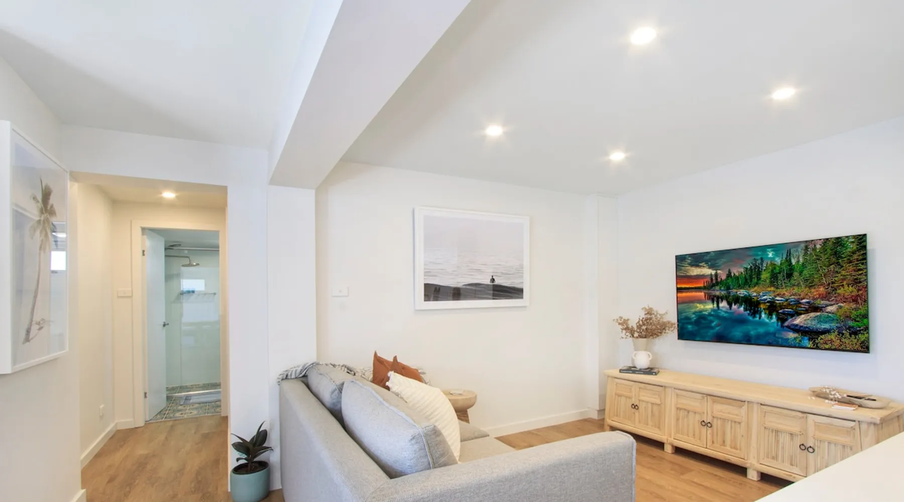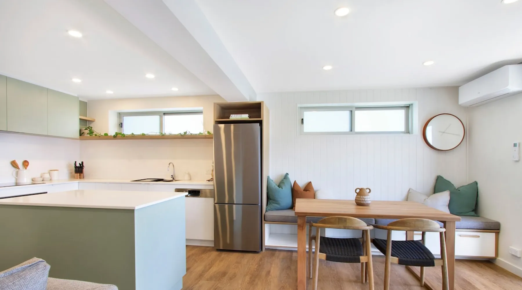 Island Cove is a stylish newly renovated guest suite. It is superbly located within 50 meters from Warilla beach with direct access to the beach front and cycle way. located minutes away from Warilla Grove shopping centre and Stockland Shellharbour. The space Island Cove is equiped with a full kitchen, indoor dining, outdoor dining, laundry, TV, WIFI, bathroom and air conditioning. Tea and Coffee will also be available. There are many superb cafes and restaurants locally. Free public street parking is available. Registration Details PID-STRA-2537