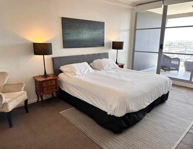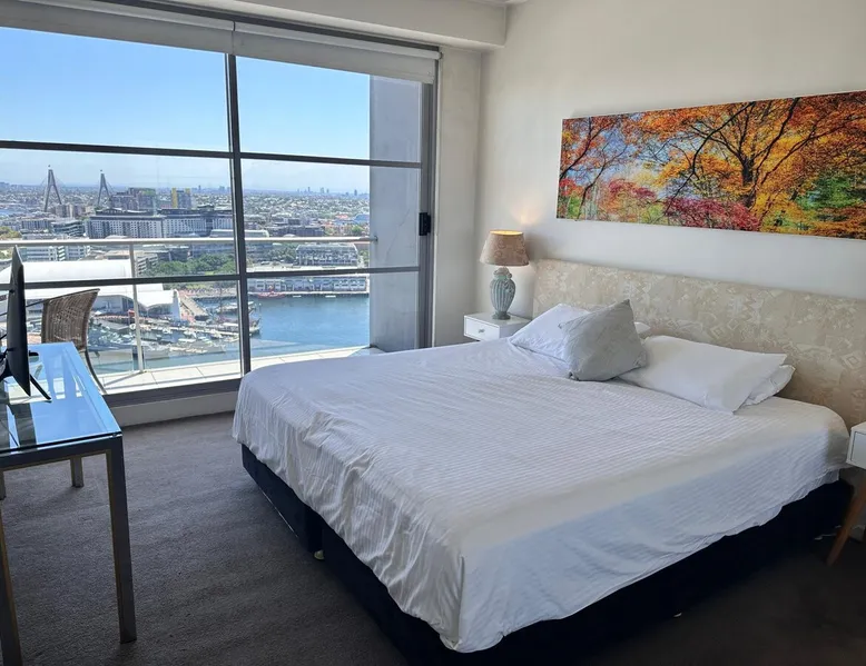 Spacious, fully self-contained split level 3 bedroom, two-and a half bathroom unit has excellent harbour view from each balcony & rooms. Located within easy walking to Darling Harbour, Circular Quay, QVB and Pitt Street Mall. This absolutely huge apartment, is ideal for short & long-term travel for families or group and corporates. Fully equipped kitchen, internal laundry, and a balcony from the lounge room and upstairs bedrooms. Enjoy the free WIFI, outdoor pool, gym and security lift access The space This apartment offers showstopper Darling harbour views across two levels. Free WIFI, also undercover parking available at an additional cost. Split level three-bedroom, two and a half bathroom apartment located on the top floor. It has a king or two singles in two bedrooms and a queen size bed in another, modern kitchen, internal laundry with washer and dryer. As well as a large balcony with cityscape and stunning harbour views and air conditioning. Plus, ample storage with built in wardrobes. All cooking utensils, towels and bed linen are provided. Guest access Guests will have access to the entire apartment and use of building facilities including Gym & Pool. Please note that this building has 24-hour security surveillance. Other things to note It is important to note this apartment is in a residential building, parties are not permitted, and consideration of your neighbours is appreciated and required by new short term let legislation. This is a long stay corporate apartment with a minimum stay of 90 days. If your stay is less than that please contact us and we will send you a list of the many other apartments we have on offer with shorter stays. Registration Details Exempt
