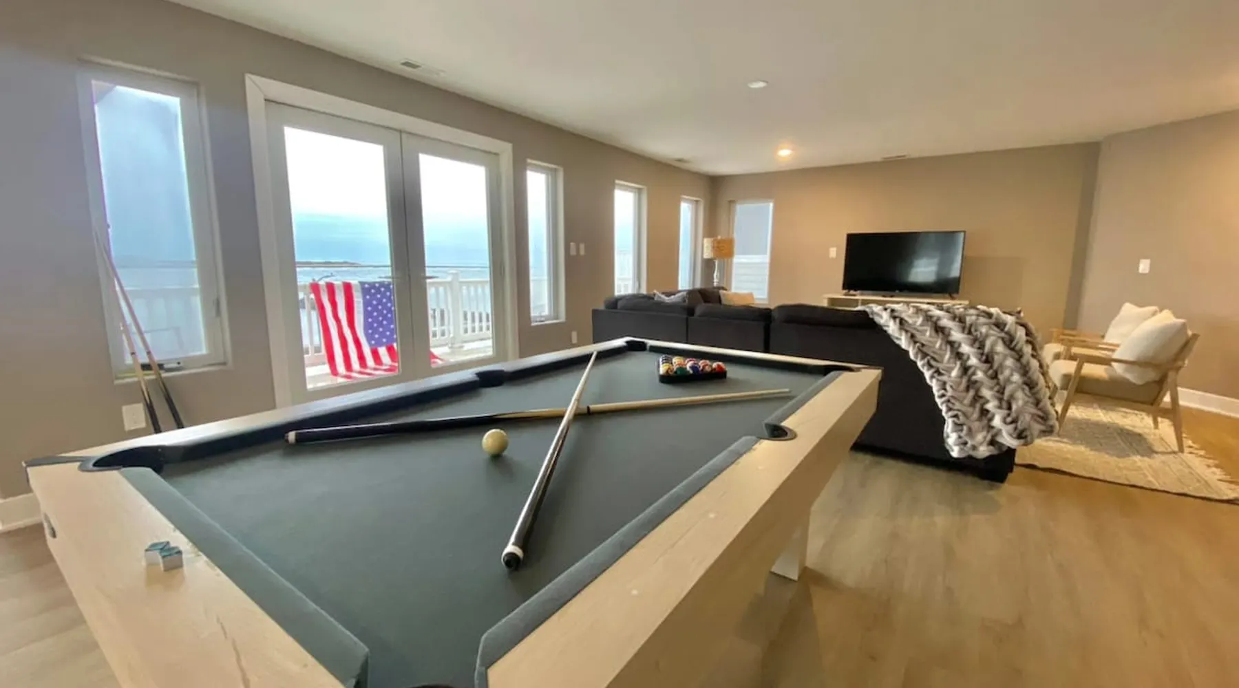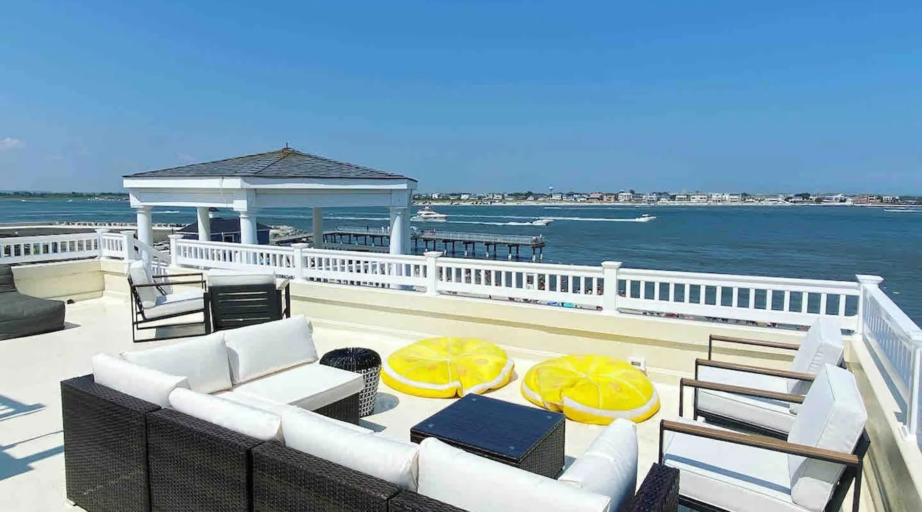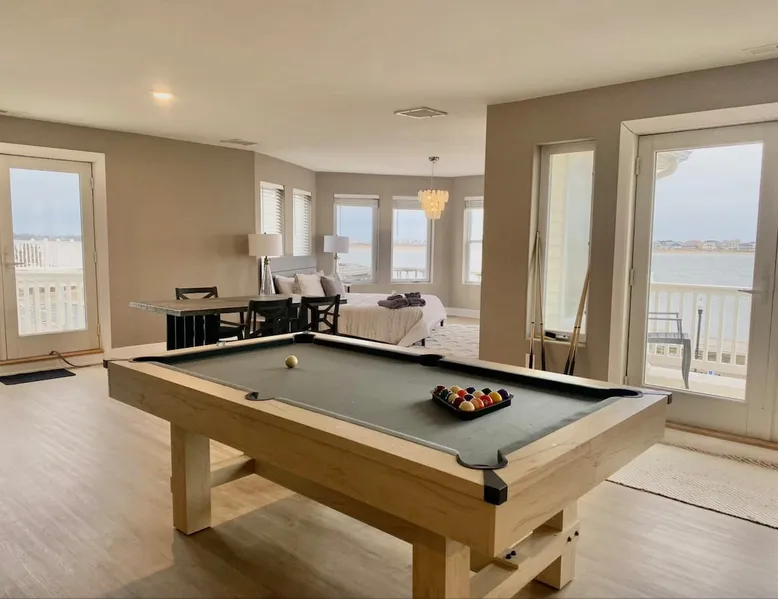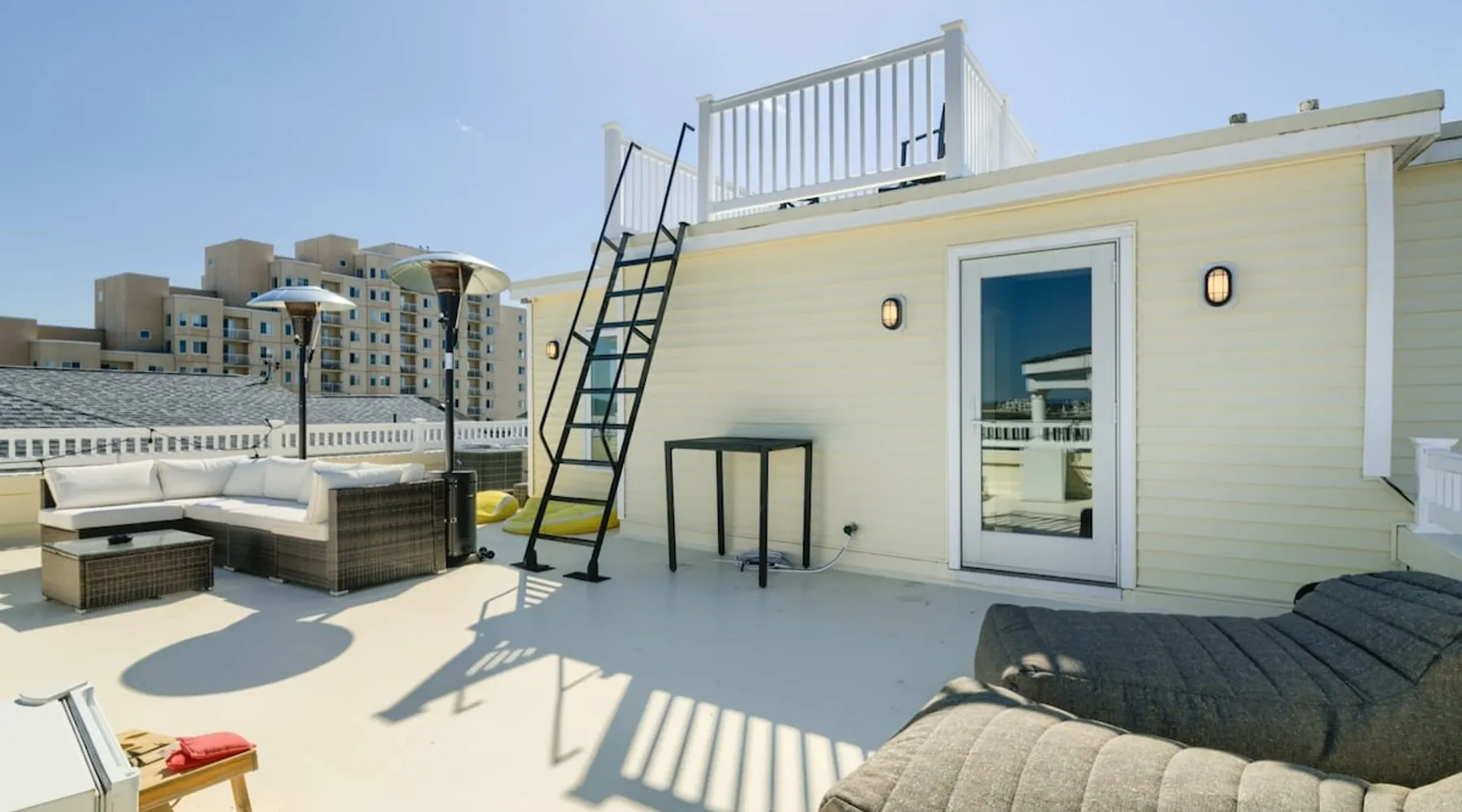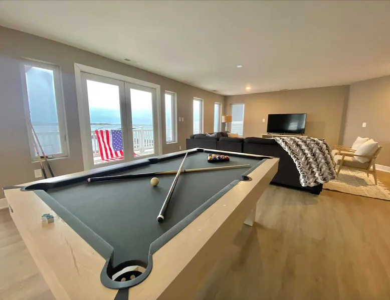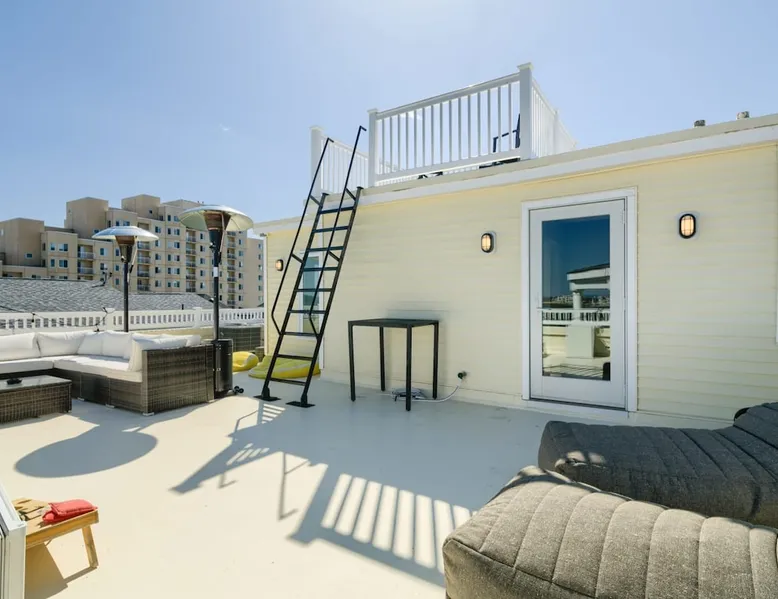 Welcome to the Iconic yellow mansion at the inlet. Newly updated, this beachfront home boasts over 5,500 square feet, 7 decks, & a panoramic rooftop deck that overlooks the inlet out to the ocean. The space Wake up to the sound of waves, take in a rooftop sunrise, then make your way to the beach or spend your time on the private roof top. This is one of the most unique homes in AC. While this property looks like a hotel or bed and breakfast from the outside, the whole house is yours to enjoy a few days of relaxation and unparalleled beautiful views. This is truly one of the most unique beachfront homes in all of Atlantic City and the surrounding areas. Located steps from the beach entrance, it doesn’t get any more convenient. 6 bedrooms and 4.5 bathrooms and an outdoor shower. The layout is as follows.. FIRST FLOOR: -Foyer with travertine tile and grand crystal chandelier. -Bedroom 1: King bed, Queen sleeper, full length mirrors, private terrace. Sleeps 4. -Bedroom 2: King bed, Twin bed, large walk in closet, 1 rollaway memory foam bed (in closet). Sleeps 4. -Bedroom 3- two Queen beds, floor to ceiling mirrors. Sleeps 4. -Bathroom 1- double vanity, tub/shower combo. -Bathroom 2- shower stall, laundry, private toilet. -Garage for storage with a couple bikes and beach chairs (guests are still encouraged to bring their own). SECOND FLOOR: -Open concept living/dining/kitchen. -Bathroom 3- Half bathroom/powder room off of entertaining space. -Bar with wine fridge and ice maker (so helpful when you have a large group). -Wrap around balcony with ample seating and amazing views. Grill for your use (guests are responsible for their own propane and for cleaning the grill following their usage. Failure can result in an additional grill cleaning fee). -Bedroom 4- Suite w/ bathroom. King bed, Twin bed, ceiling fan, floor to ceiling mirrors, bathroom with jacuzzi jet tub, separate shower, double vanity, private toilet. Sleeps 3. THIRD FLOOR SUITE: -Bedroom 5/Bath 5- 1,200 sq ft room with tons of windows and views of the water, King bed (facing the water), dining area, Twin bed (in separate small space with a door), sectional, 55" smart tv, pool table, 2 balconies overlooking the ocean. Sleeps 3. -Large walk in shower with rain shower head, double vanity, large 2 person jacuzzi tub with water views. -Large laundry room with washer, dryer, iron. FOURTH FLOOR: -1000 sq ft roof top with unparalleled views of the ocean, inlet, Brigantine bridge and the city's ONLY crow's nest with incredible 360 degree views. WEDDINGS/EVENTS: -This is the perfect home for family reunions, small weddings, bachelorettes, or just a relaxing weekend away. -If you are interested in weddings or events but our calendar isn't open that far in advance, we can open it up for you. -Additional fees apply to weddings and events along with a separate contract. -No more than 20 guests without prior approval in writing. PETS: -Brand new carpet installed in 2021 therefore we respectfully have to decline pets. BOOK WITH US and unlock discounts and special offers exclusive to Cozy Cohost guests. Take advantage of all that Atlantic City has to offer and enjoy savings at top local spots including famous restaurants, night clubs, spas, coffee shops, distilleries, breweries, boat tours, bike rentals, mini golf, and more... Guest access ACCESS & ENTRY: -Guests will have access to the entire home, outside decks and driveway. -The elevator is currently in service. If you are interested/need access please contact us BEFORE booking! No unattended children in the elevator. -Please be respectful to the neighbors and the surrounding homes and businesses. -Please note that check-out time is promptly at 11:00 AM. Failure to check out by this time may result in a $100 fee per hour. We appreciate your cooperation in ensuring a smooth transition for our next guests. Thank you for your understanding! KEYLESS ENTRY: -Your host will provide you with the door code approximately one hour prior to check in the day of your trip. PARKING: -There is a driveway at this property for 4 vehicles. -Free street parking for additional vehicles. -You may street park where available, but the vicinity can become busy at times due to the location. -Guests are responsible for city street parking compliance; read & follow signage to avoid parking tickets. -We are not responsible for parking tickets due to negligence. MAIL: -Do not send packages to the property via mail as we do not have access to the locked street mailboxes for the property. -If there is something of priority that you need shipped please reach out to us directly for alternative options. -We are not responsible for any items shipped to the property. ENVIRONMENTAL NOTES: -Property located in a city environment; potential for noise from cars or foot traffic. SECURITY: -The home is protected by exterior ring camera security. There are bikes in the garage that guests may use for their stay. Please remember: It is the guest's responsibility to ride safely, follow all local traffic laws, and provide their own helmet. All guests ride at your own risk. Also, please be aware that any damage to the bikes during your use will be your responsibility. We are not liable for any injuries, accidents, or damages that may occur while using the bikes. Other things to note HONESTY & EXPECTATIONS: At "Icon Playce", we want our guests to have a clear understanding of the distinctions between vacation rentals and hotels. While we diligently maintain our properties, wear and tear are inherent aspects of vacation rentals. Although we address issues promptly, the high volume of guests may result in occasional delays between stays. Any significant damage or serious concerns are prioritized and resolved before a guest's check-in, provided we are made aware of the issue. CLEANING: Our dedicated cleaning team meticulously sanitizes and cleans each home. Unlike standard hotel rooms, homes entail a more detailed cleaning process due to their l