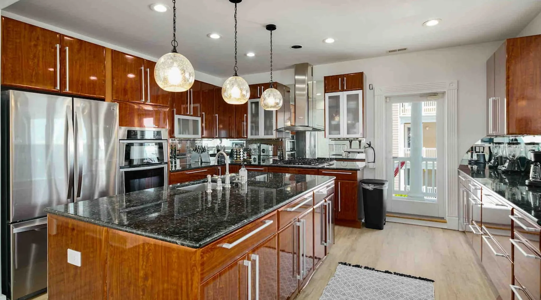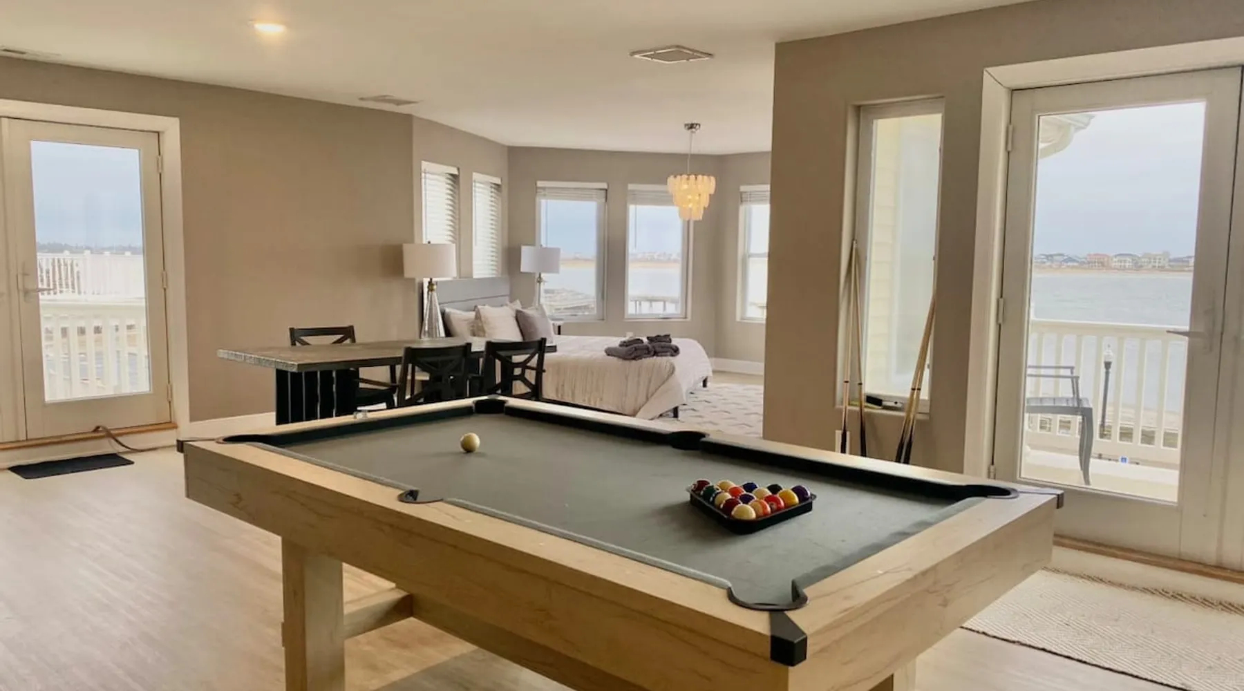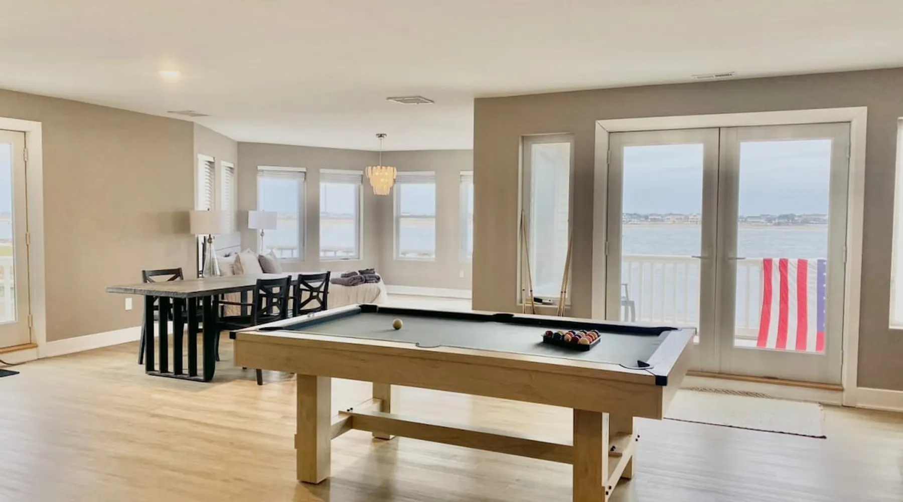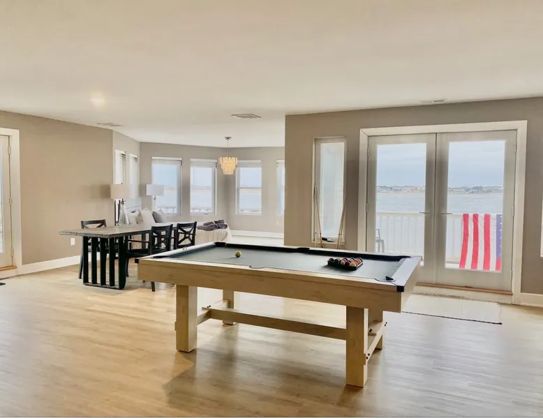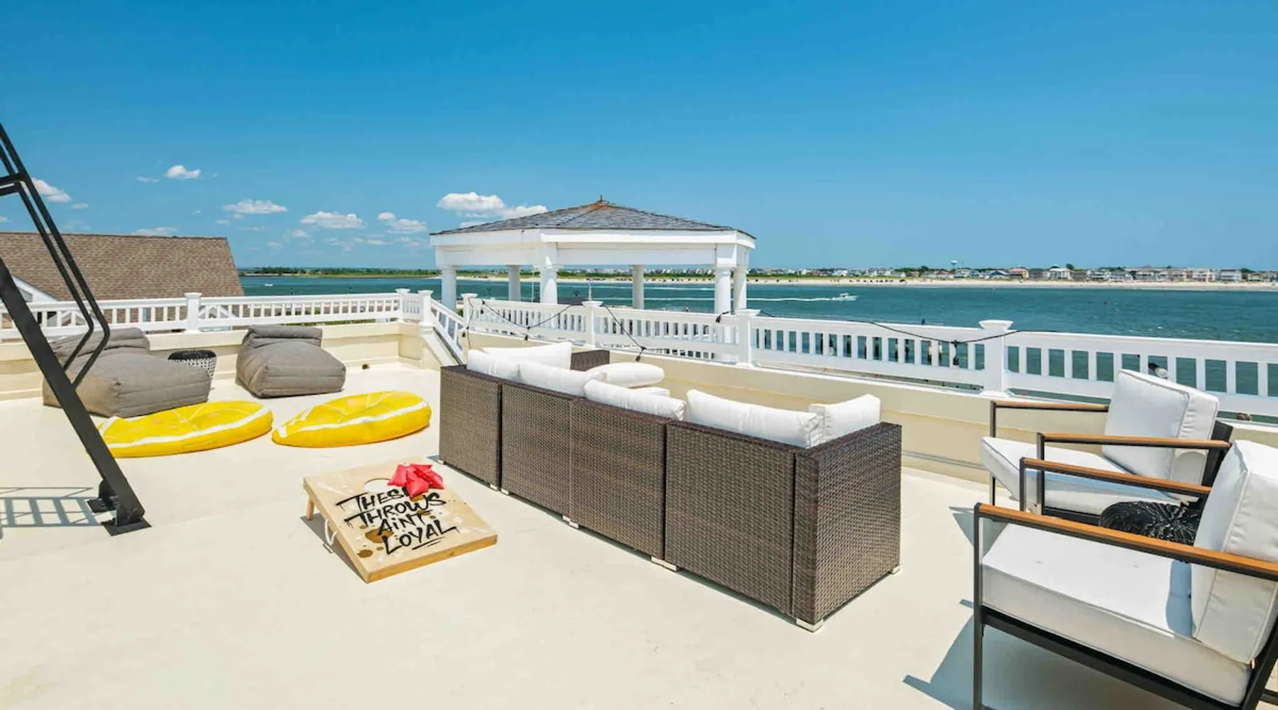 Welcome to the Iconic yellow mansion at the inlet. Newly updated, this beachfront home boasts over 5,500 square feet, 7 decks, & a panoramic rooftop deck that overlooks the inlet out to the ocean. The space Wake up to the sound of waves, take in a rooftop sunrise, then make your way to the beach or spend your time on the private roof top. This is one of the most unique homes in AC. While this property looks like a hotel or bed and breakfast from the outside, the whole house is yours to enjoy a few days of relaxation and unparalleled beautiful views. This is truly one of the most unique beachfront homes in all of Atlantic City and the surrounding areas. Located steps from the beach entrance, it doesn’t get any more convenient. 6 bedrooms and 4.5 bathrooms and an outdoor shower. The layout is as follows.. FIRST FLOOR: -Foyer with travertine tile and grand crystal chandelier. -Bedroom 1: King bed, Queen sleeper, full length mirrors, private terrace. Sleeps 4. -Bedroom 2: King bed, Twin bed, large walk in closet, 1 rollaway memory foam bed (in closet). Sleeps 4. -Bedroom 3- two Queen beds, floor to ceiling mirrors. Sleeps 4. -Bathroom 1- double vanity, tub/shower combo. -Bathroom 2- shower stall, laundry, private toilet. -Garage for storage with a couple bikes and beach chairs (guests are still encouraged to bring their own). SECOND FLOOR: -Open concept living/dining/kitchen. -Bathroom 3- Half bathroom/powder room off of entertaining space. -Bar with wine fridge and ice maker (so helpful when you have a large group). -Wrap around balcony with ample seating and amazing views. Grill for your use (guests are responsible for their own propane and for cleaning the grill following their usage. Failure can result in an additional grill cleaning fee). -Bedroom 4- Suite w/ bathroom. King bed, Twin bed, ceiling fan, floor to ceiling mirrors, bathroom with jacuzzi jet tub, separate shower, double vanity, private toilet. Sleeps 3. THIRD FLOOR SUITE: -Bedroom 5/Bath 5- 1,200 sq ft room with tons of windows and views of the water, King bed (facing the water), dining area, Twin bed (in separate small space with a door), sectional, 55" smart tv, pool table, 2 balconies overlooking the ocean. Sleeps 3. -Large walk in shower with rain shower head, double vanity, large 2 person jacuzzi tub with water views. -Large laundry room with washer, dryer, iron. FOURTH FLOOR: -1000 sq ft roof top with unparalleled views of the ocean, inlet, Brigantine bridge and the city's ONLY crow's nest with incredible 360 degree views. WEDDINGS/EVENTS: -This is the perfect home for family reunions, small weddings, bachelorettes, or just a relaxing weekend away. -If you are interested in weddings or events but our calendar isn't open that far in advance, we can open it up for you. -Additional fees apply to weddings and events along with a separate contract. -No more than 20 guests without prior approval in writing. PETS: -Brand new carpet installed in 2021 therefore we respectfully have to decline pets. BOOK WITH US and unlock discounts and special offers exclusive to Cozy Cohost guests. Take advantage of all that Atlantic City has to offer and enjoy savings at top local spots including famous restaurants, night clubs, spas, coffee shops, distilleries, breweries, boat tours, bike rentals, mini golf, and more... Guest access ACCESS & ENTRY: -Guests will have access to the entire home, outside decks and driveway. -The elevator is currently in service. If you are interested/need access please contact us BEFORE booking! No unattended children in the elevator. -Please be respectful to the neighbors and the surrounding homes and businesses. -Please note that check-out time is promptly at 11:00 AM. Failure to check out by this time may result in a $100 fee per hour. We appreciate your cooperation in ensuring a smooth transition for our next guests. Thank you for your understanding! KEYLESS ENTRY: -Your host will provide you with the door code approximately one hour prior to check in the day of your trip. PARKING: -There is a driveway at this property for 4 vehicles. -Free street parking for additional vehicles. -You may street park where available, but the vicinity can become busy at times due to the location. -Guests are responsible for city street parking compliance; read & follow signage to avoid parking tickets. -We are not responsible for parking tickets due to negligence. MAIL: -Do not send packages to the property via mail as we do not have access to the locked street mailboxes for the property. -If there is something of priority that you need shipped please reach out to us directly for alternative options. -We are not responsible for any items shipped to the property. ENVIRONMENTAL NOTES: -Property located in a city environment; potential for noise from cars or foot traffic. SECURITY: -The home is protected by exterior ring camera security. There are bikes in the garage that guests may use for their stay. Please remember: It is the guest's responsibility to ride safely, follow all local traffic laws, and provide their own helmet. All guests ride at your own risk. Also, please be aware that any damage to the bikes during your use will be your responsibility. We are not liable for any injuries, accidents, or damages that may occur while using the bikes. Other things to note HONESTY & EXPECTATIONS: At "Icon Playce", we want our guests to have a clear understanding of the distinctions between vacation rentals and hotels. While we diligently maintain our properties, wear and tear are inherent aspects of vacation rentals. Although we address issues promptly, the high volume of guests may result in occasional delays between stays. Any significant damage or serious concerns are prioritized and resolved before a guest's check-in, provided we are made aware of the issue. CLEANING: Our dedicated cleaning team meticulously sanitizes and cleans each home. Unlike standard hotel rooms, homes entail a more detailed cleaning process due to their l