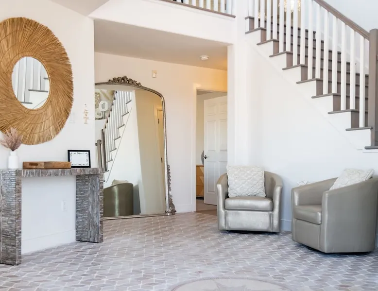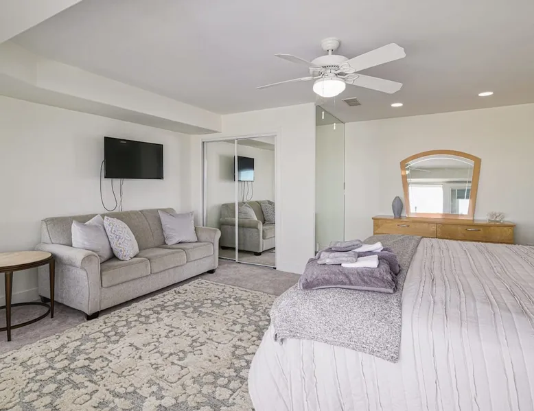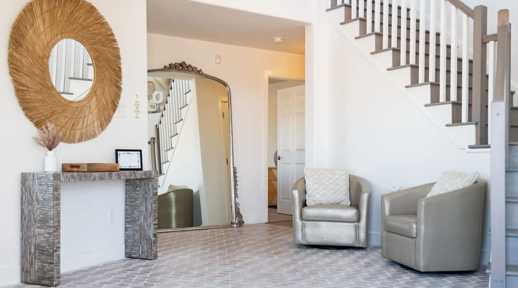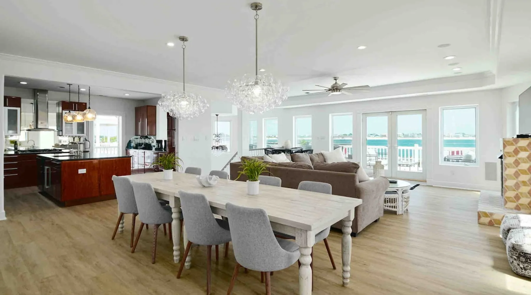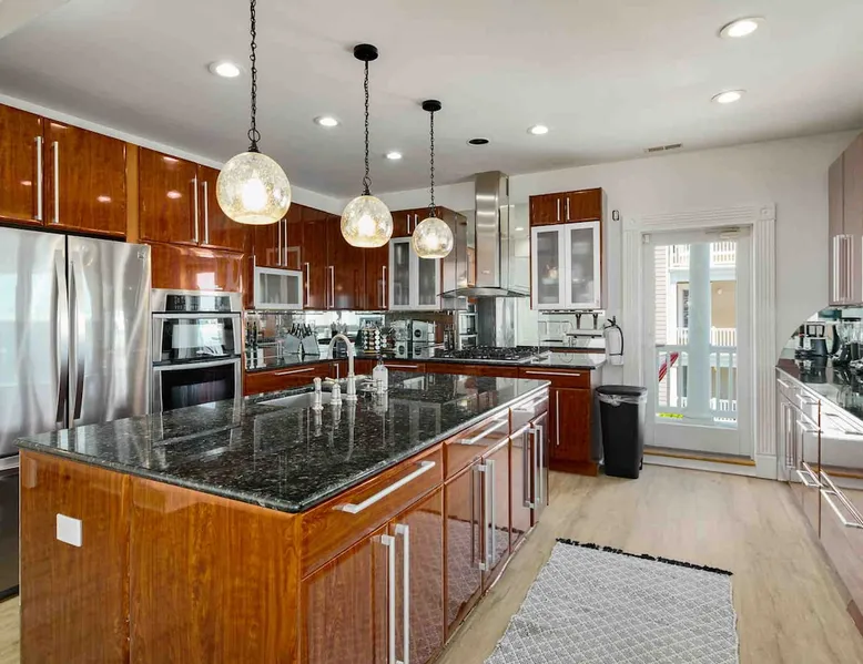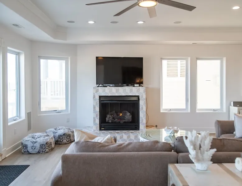 Welcome to the Iconic yellow mansion at the inlet. Newly updated, this beachfront home boasts over 5,500 square feet, 7 decks, & a panoramic rooftop deck that overlooks the inlet out to the ocean. The space Wake up to the sound of waves, take in a rooftop sunrise, then make your way to the beach or spend your time on the private roof top. This is one of the most unique homes in AC. While this property looks like a hotel or bed and breakfast from the outside, the whole house is yours to enjoy a few days of relaxation and unparalleled beautiful views. This is truly one of the most unique beachfront homes in all of Atlantic City and the surrounding areas. Located steps from the beach entrance, it doesn’t get any more convenient. 6 bedrooms and 4.5 bathrooms and an outdoor shower. The layout is as follows.. FIRST FLOOR: -Foyer with travertine tile and grand crystal chandelier. -Bedroom 1: King bed, Queen sleeper, full length mirrors, private terrace. Sleeps 4. -Bedroom 2: King bed, Twin bed, large walk in closet, 1 rollaway memory foam bed (in closet). Sleeps 4. -Bedroom 3- two Queen beds, floor to ceiling mirrors. Sleeps 4. -Bathroom 1- double vanity, tub/shower combo. -Bathroom 2- shower stall, laundry, private toilet. -Garage for storage with a couple bikes and beach chairs (guests are still encouraged to bring their own). SECOND FLOOR: -Open concept living/dining/kitchen. -Bathroom 3- Half bathroom/powder room off of entertaining space. -Bar with wine fridge and ice maker (so helpful when you have a large group). -Wrap around balcony with ample seating and amazing views. Grill for your use (guests are responsible for their own propane and for cleaning the grill following their usage. Failure can result in an additional grill cleaning fee). -Bedroom 4- Suite w/ bathroom. King bed, Twin bed, ceiling fan, floor to ceiling mirrors, bathroom with jacuzzi jet tub, separate shower, double vanity, private toilet. Sleeps 3. THIRD FLOOR SUITE: -Bedroom 5/Bath 5- 1,200 sq ft room with tons of windows and views of the water, King bed (facing the water), dining area, Twin bed (in separate small space with a door), sectional, 55" smart tv, pool table, 2 balconies overlooking the ocean. Sleeps 3. -Large walk in shower with rain shower head, double vanity, large 2 person jacuzzi tub with water views. -Large laundry room with washer, dryer, iron. FOURTH FLOOR: -1000 sq ft roof top with unparalleled views of the ocean, inlet, Brigantine bridge and the city's ONLY crow's nest with incredible 360 degree views. WEDDINGS/EVENTS: -This is the perfect home for family reunions, small weddings, bachelorettes, or just a relaxing weekend away. -If you are interested in weddings or events but our calendar isn't open that far in advance, we can open it up for you. -Additional fees apply to weddings and events along with a separate contract. -No more than 20 guests without prior approval in writing. PETS: -Brand new carpet installed in 2021 therefore we respectfully have to decline pets. BOOK WITH US and unlock discounts and special offers exclusive to Cozy Cohost guests. Take advantage of all that Atlantic City has to offer and enjoy savings at top local spots including famous restaurants, night clubs, spas, coffee shops, distilleries, breweries, boat tours, bike rentals, mini golf, and more... Guest access ACCESS & ENTRY: -Guests will have access to the entire home, outside decks and driveway. -The elevator is currently in service. If you are interested/need access please contact us BEFORE booking! No unattended children in the elevator. -Please be respectful to the neighbors and the surrounding homes and businesses. -Please note that check-out time is promptly at 11:00 AM. Failure to check out by this time may result in a $100 fee per hour. We appreciate your cooperation in ensuring a smooth transition for our next guests. Thank you for your understanding! KEYLESS ENTRY: -Your host will provide you with the door code approximately one hour prior to check in the day of your trip. PARKING: -There is a driveway at this property for 4 vehicles. -Free street parking for additional vehicles. -You may street park where available, but the vicinity can become busy at times due to the location. -Guests are responsible for city street parking compliance; read & follow signage to avoid parking tickets. -We are not responsible for parking tickets due to negligence. MAIL: -Do not send packages to the property via mail as we do not have access to the locked street mailboxes for the property. -If there is something of priority that you need shipped please reach out to us directly for alternative options. -We are not responsible for any items shipped to the property. ENVIRONMENTAL NOTES: -Property located in a city environment; potential for noise from cars or foot traffic. SECURITY: -The home is protected by exterior ring camera security. There are bikes in the garage that guests may use for their stay. Please remember: It is the guest's responsibility to ride safely, follow all local traffic laws, and provide their own helmet. All guests ride at your own risk. Also, please be aware that any damage to the bikes during your use will be your responsibility. We are not liable for any injuries, accidents, or damages that may occur while using the bikes. Other things to note HONESTY & EXPECTATIONS: At "Icon Playce", we want our guests to have a clear understanding of the distinctions between vacation rentals and hotels. While we diligently maintain our properties, wear and tear are inherent aspects of vacation rentals. Although we address issues promptly, the high volume of guests may result in occasional delays between stays. Any significant damage or serious concerns are prioritized and resolved before a guest's check-in, provided we are made aware of the issue. CLEANING: Our dedicated cleaning team meticulously sanitizes and cleans each home. Unlike standard hotel rooms, homes entail a more detailed cleaning process due to their l