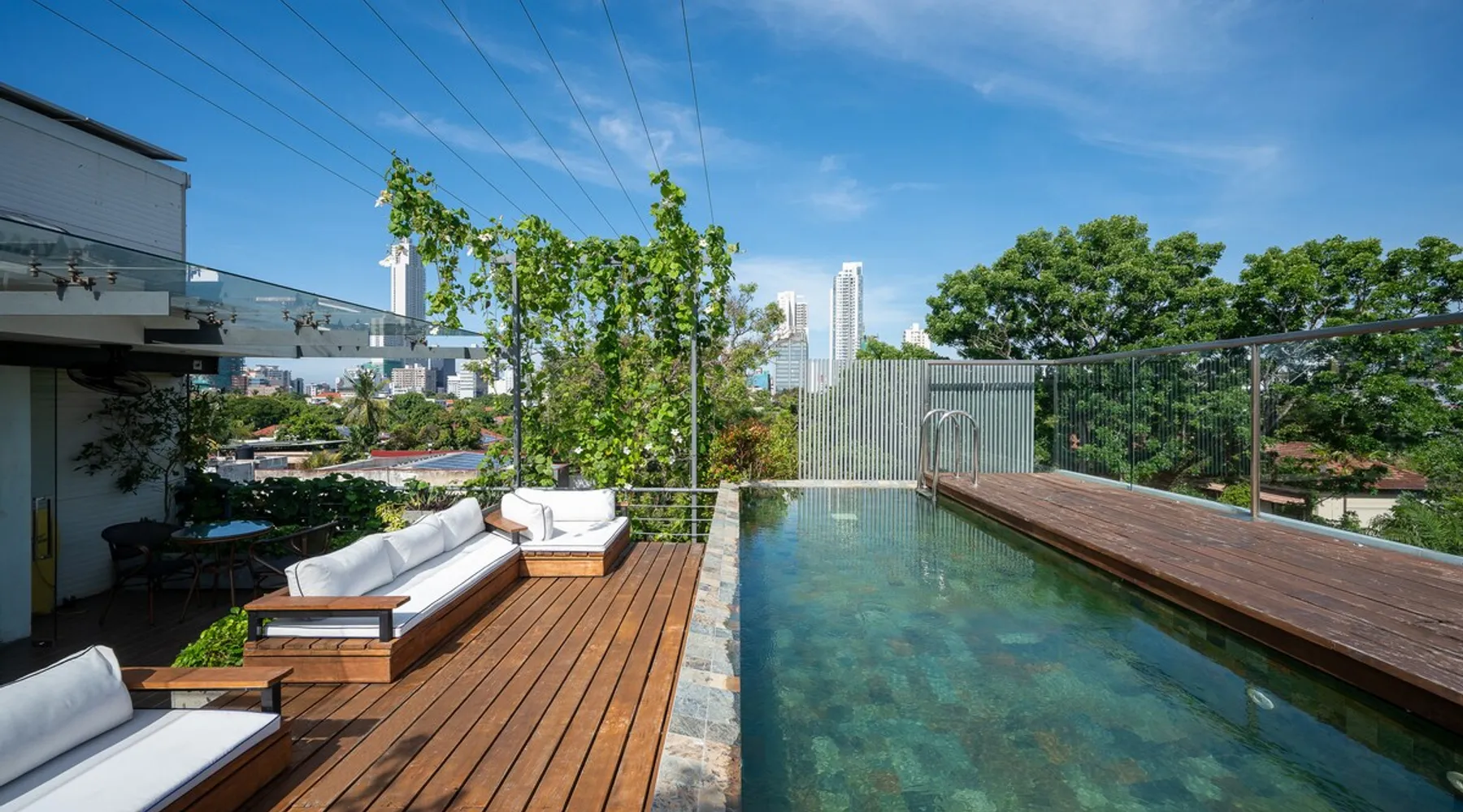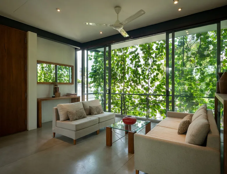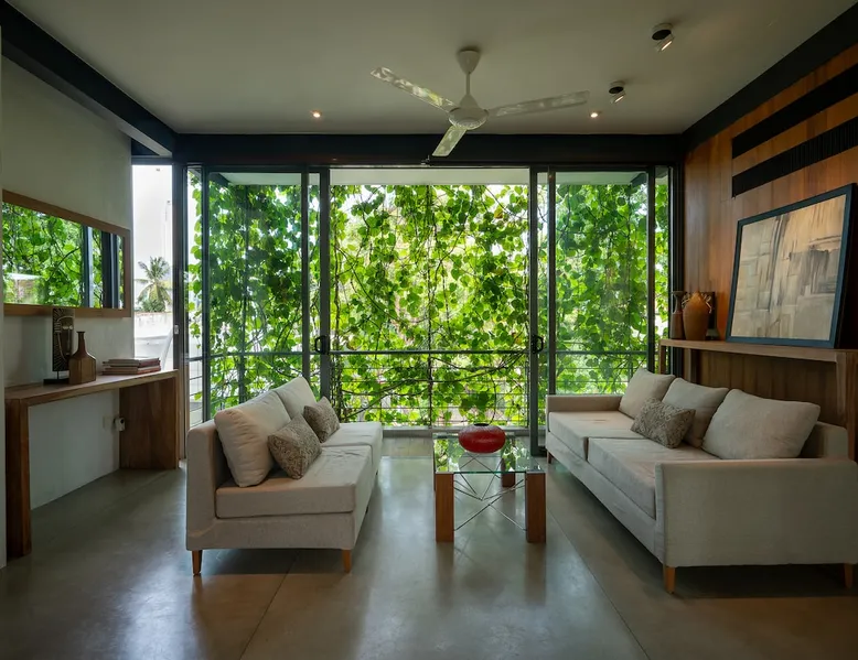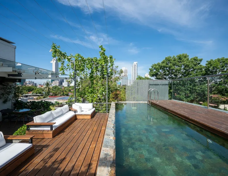 classy. contemporary. cosmopolitan. 55 FLOWERROAD has 3 turn-key 2BR apartments and two tiny houses, with spaces aimed to make your stay with us feel like home. Located in the heart of Colombo's most desirable residential area, 55FLOWERROAD promises you a perfect Colombo home with a class and character of its own. GF - THE NOOK & Parking for Units A, B, C 1st floor: Unit A 2 floor: Unit B 3rd floor: Unit C 4th floor: THE LOFT Rooftop: pool, micro gym, terrace The space Each apartment has been designed to maximise the use of it's ~1000sqft floor area. Double-glazed glass sliding doors open out from the bedrooms, living, and dining areas to the balconies allowing cross-ventilation and natural light throughout. Privacy is maintained with roller blinds, with additional blackout blinds in bedrooms to ensure restful sleep. The open-plan living spaces have been thoughtfully appointed to meet your every need. Guest access Each independent apartment has a private entrance. The street-level covered parking space takes you directly to the entrance lobby with the elevator and stairs that serve the apartments, rooftop terrace, pool and micro gym, and service areas. Other things to note A 40kva back-up generator gives uninterrupted power supply. Especially in times when the country is experiencing an extended period of dry weather, it's not unusual for the island to have power outages. Two bottles of drinking water are supplied to the apartment and a water dispenser is located in an easy to access location within the building for topping up. The rooftop pool (L20 feet x W6.5 feet x D3.25 feet) and the rooftop area are shared with other guests in the building. The building has five units with a combined maximum capacity of 15 guests.