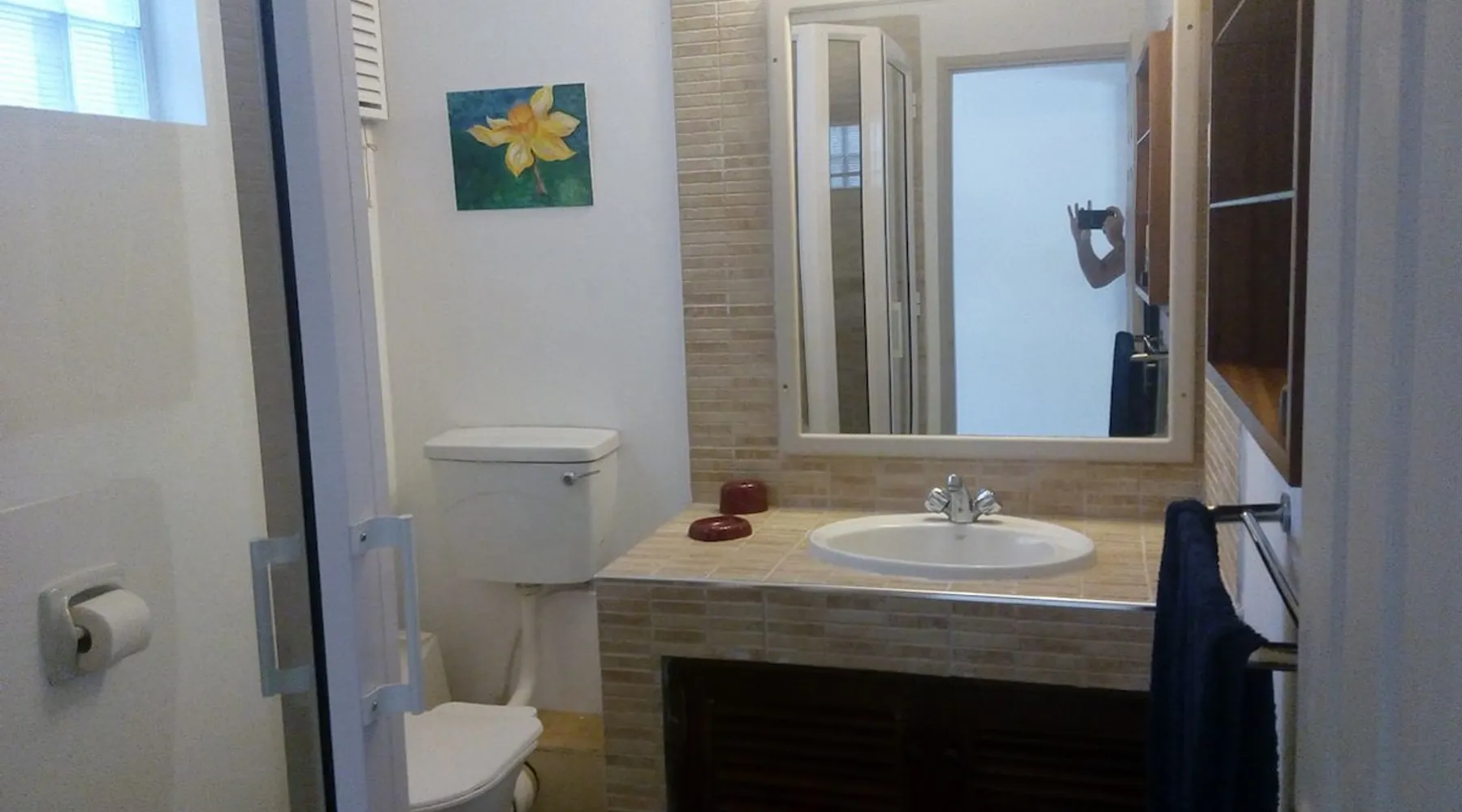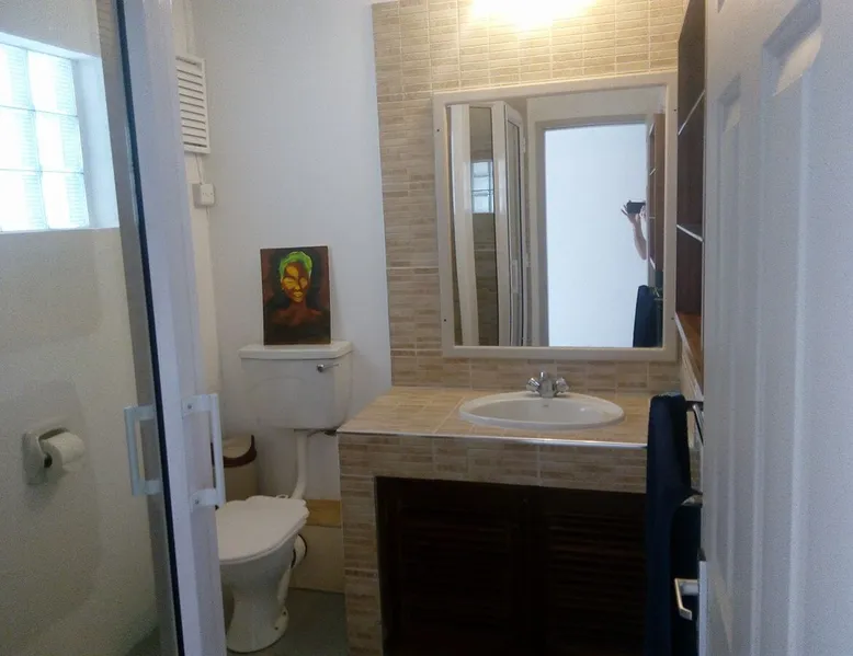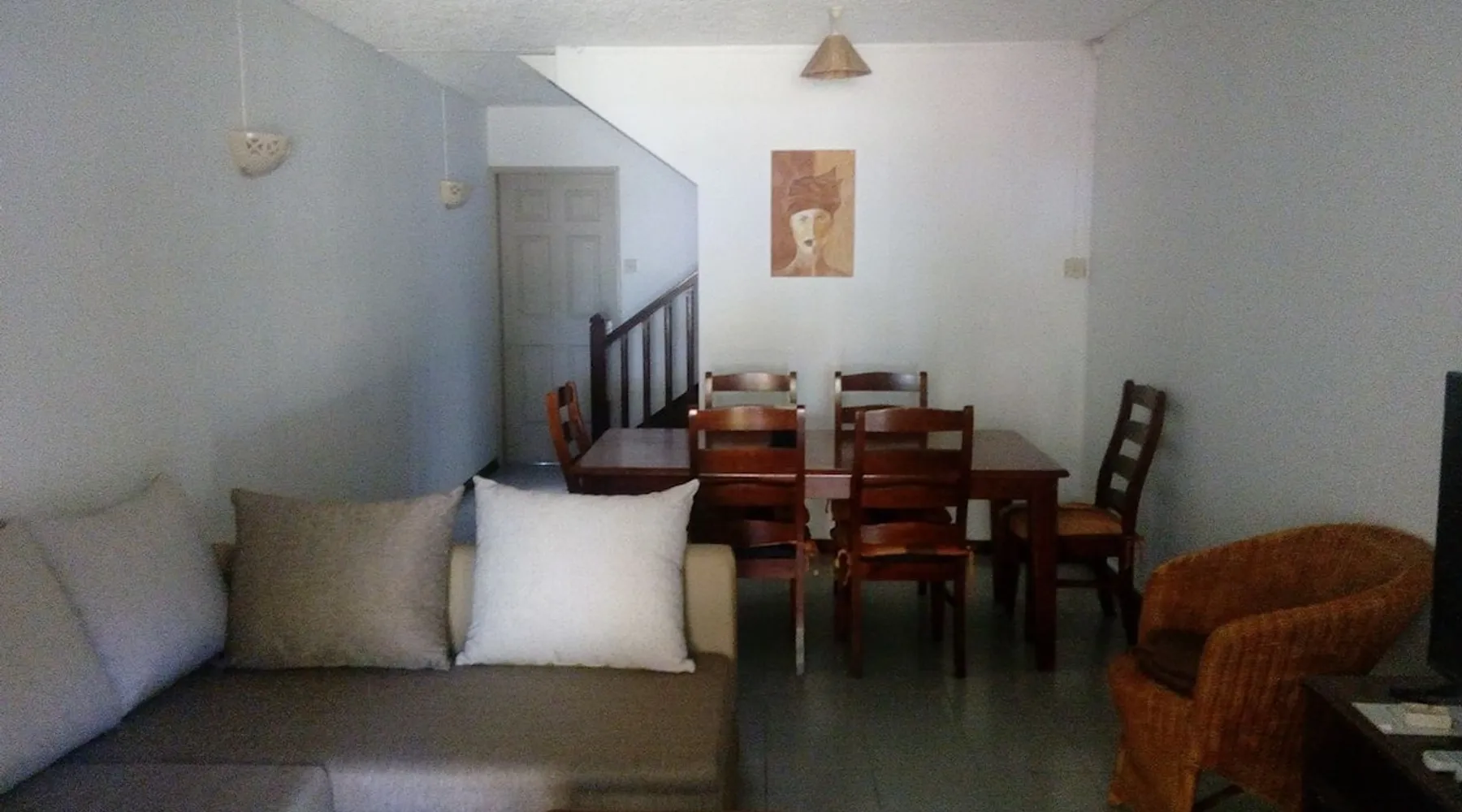Beautiful villa in the North of Mauritius near the beach (1 minute walk). Apartment of 120 square meters / 3 bedrooms with aircon / 2 bathrooms / TV, Internet Wifi, domestic for cleaning GROUND FLOOR Pool / Garden Kitchen: fully equipped (oven, stove, microwave, fridge, pots and pans, plates, etc. Living room: sofa, TV, DVD player, dining table Terrace: round table for breakfast . LEVEL 1: master bedroom double bed, bathroom, closet, balcony. Bedroom 2 :Double bed LEVEL 2: master Bedroom