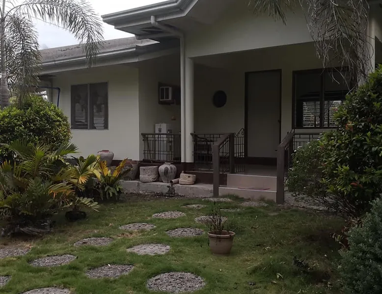 A house situated in a 1,000 sq mtr lot and have the following: 3 rooms (please see individual pictures for details) auxiliary sleeping quarter (for a group more than 8 pax), spacious sala, dining area,kitchen (where u can cook) 2 Comfort rooms and a veranda overlooking on a lush garden. You can enjoy all of these at a very affordable price. Ideal for family gatherings, barkada outings.