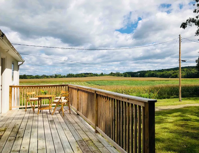 This simple cabin is perfect for couples and friends looking to escape the city for a getaway (only 60 miles/1.5 hr drive from NYC). Enjoy the private porch that looks out onto our vast farmland - the perfect view to enjoy your morning coffee. Horse lovers, hikers, baseball lovers, and stargazers are all welcome! Beautiful walking, biking and horse trails, hiking overlooks & scenic lakes. We are next door to the Sussex County Fairgrounds and Skylands Baseball Stadium. The space PLEASE NOTE: Right now, we are not hosting due to the COVID-19 pandemic. However, we are looking forward to opening up once again in late 2021. ********************** The entire upstairs unit (kitchen, bathroom, outdoor porch, two bedrooms) is available to the guests. This is an old farmhouse cabin with simple decor and amenities. The kitchen is stocked with dishes, glasses, wine glasses, coffee mugs, silverware and cookware. The TV is equipped with Roku, which guests can access any apps they subscribe to such as Amazon Prime, Hulu, or Netflix. The suite has it's own thermostat. The driveway can park up to 4-5 cars. Please note that the basement is off-limits as it is unfinished / for storage purposes. Sleeping Arrangements - please make sure you book with the correct amount of guests so we can prepare the suite accordingly: 1. First bedroom has two twin sized beds and drawers for convenience. 2. Second bedroom has a full sized size bed with a Casper Memory Foam mattress, working desk area, with standing closet space. 3. Living room has a sleeper sofa; extra comforters and pillows are located in the couch storage. Local attractions include Skylands Stadium, Sussex County Fairgrounds, Mountain Creek, Space Farms Zoo & Museum, High Point State Park, Lake Mohawk, Sussex Airport where you can go skydiving, hiking and biking trails and skiing. We are centrally located in the best outdoors that Sussex County can offer: - Skylands Baseball Stadium (Home of the Sussex County Miners) – 2 min - Sussex County Fairgrounds / Conservatory / Farm & Horse Show (Home of the NJ State Fair) – 5 min - Downtown Newton (Newton Theatre) – 10 min - Culver Lake – 10 min - Space Farms Zoo & Museum – 15 min - Sussex County Sunflower Maze – 17 min - Lake Mohawk Country Club – 17 min - Perona Farms – 20 min - Stokes State Forest – 20 min - Mountain Creek Ski Resort / Waterpark – 25 min - Great Gorge Golf Course – 25 min - High Point State Park (hike to the highest point in NJ!) – 25 min - Delaware Water Gap / Dingman’s Ferry – 30 min Other things to note 1. The property has a gorgeous view over farmland and a large porch with Weber BBQ grille (summer months). Escape the concrete jungle and enjoy this wide open space. In the winter months, the outdoor furniture is put away and in storage. 2. In the winter when there is snow on the ground, All Wheel Drive or Four Wheel Drive is required to enter our driveway (otherwise you likely will get stuck). The driveway is unpaved (as are most country roads) and may have some potholes. Please drive at your own risk; slowly and carefully. We are not responsible for any damages incurred to your vehicle as a result of the unpaved country roads in Sussex County. 3. No pets as the owners are severely allergic. 4. The beds will be set up according to the number of guests listed in the reservation. For example, if there is only one guest; only one room will be set up with the respective number of linens/towels. Please be sure to book with the correct number of guests, and we will coordinate with you prior to your check in on which room you most prefer to set up the suite to your needs.