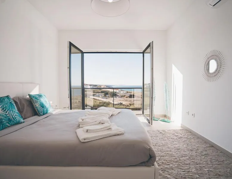 Spacious Accommodations: Villa Bela Vista in Atalaia offers four bedrooms and three bathrooms. The living room includes a sofa and TV, ensuring comfort for all guests. Outdoor Amenities: Guests can enjoy a swimming pool with a view, sun terrace, and lush garden. Free bicycles are available for exploring the surroundings. Convenient Facilities: The villa provides free WiFi, air-conditioning, and a hot tub. Additional amenities include a games room, outdoor seating area, and barbecue facilities. Nearby Attractions: Peralta Beach is a 12-minute walk away, while Obidos Castle lies 19 mi from the property. Lourinhã Museum is 1.9 mi nearby, and Peniche Fortress is 12 mi distant. Guest Services: Private check-in and check-out, a 24-hour front desk, concierge service, and free on-site parking enhance the stay. The pool with a view and hot tub are the special features of this villa. This spacious villa consists of 1 living room, 4 separate bedrooms and 3 bathrooms with a walk-in shower and free toiletries. Guests will find a stovetop, a refrigerator, a dishwasher and kitchenware in the fully equipped kitchen. The villa also provides guests with a barbecue. The air-conditioned villa provides a flat-screen TV with streaming services, a washing machine, soundproof walls, a tea and coffee maker as well as sea views. The unit offers 4 beds.