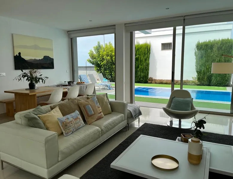 This modern Villa with garden and private climatized pool is located in a privileged sealine area in La Quinta, Santa Ursula, north of Tenerife. It offers incredible views to the Atlantic Ocean and the Teide volcano. High speed wifi 1 GB available in all areas of the house and nice ad hoc desk ideal for teleworking. The space Villa Boutique is a modern design villa with a garden and a private climatized pool. Open and bright, here you will have a feeling of peace and tranquility thanks to its disposition facing the Atlantic Ocean in a privileged area of La Quinta in Santa Ursula north of Tenerife. Villa Boutique has three double bedrooms, one on the top floor and two on the ground floor. Its design is unconventional which makes each room different and perfect for the enjoyment of life, organically connecting the interior with the garden making it feel very special. One of the main bedrooms is located on the upper floor and is equipped with a double bed "Queen size" and an en-suite bathroom with a shower. A cozy corner for the enjoyment of the breathtaking views, a good read and TV. You will also find a small living room with access to a terrace where you can enjoy and relax contemplating the stunning views of the ocean. The bedrooms on the ground floor are equipped with double beds and direct access to the terrace, garden and pool. The master bedroom has an en suite bathroom with shower. The third bathroom with a bathtub opens to the calming interior terrace. The living / dining room and the modern kitchen (fully equipped) have direct access to the terrace, where you can enjoy barbecues, the garden and an incredible swimming pool. Included services: Security system, safe, vacuum cleaner, hair dryers in all bathrooms, cots (2) and highchair (on request), bed linen and towels, satellite TV, smart TV, Netflix, sound system with player CD and radio, free WiFi 1 GB Kitchen equipped with top quality appliances: dishwasher, oven, microwave, induction hob, fridge, freezer, two different types of coffee machines including the Nexpresso, toaster, mixer and blender, juicer, washer and dryer, ironing table and iron. And many other things necessary for your enjoyment; in case we do not have something and it is within our reach, we will gladly supply it without any extra cost. Our greatest wish is that you spend your stay with all the comforts you deserve. Outdoor areas with a 40M2 private pool with heater, the temperature will depend on the weather conditions, solarium with sun loungers, outdoor living room, barbecue, dining table, parking inside the chalet for a vehicle (parking on the street up to 3 vehicles). From the moment you choose us we will ensure your experience is personalized and satisfying. We will be available to answer any doubts or requests before, during and after your stay. We hope to see you soon in this beautiful island, Tenerife! Guest access The Villa county with a security system, a safe, vacuum cleaner, hair dryer, ironing table and iron, a baby crib and highchair (upon request), bedding and towels. We also provide satellite TV, Netflix, sound system with CD player and radio, free WIFI. The kitchen is equipped with a dishwasher, oven, glass-ceramic hob, microwaves, refrigerator with freezer, coffee machine, toaster, washing machine and drying machine. In the outdoor areas: private pool, loungers, outdoor living room, barbecue, outdoor dining table, one place parking (exterior parking for up to three cars). A pool heater where the water temperature depends primarily on weather conditions and the time of day (morning, midday/afternoon, evening). All this so that you, your family, and friends can enjoy it at any time. Other things to note Cleaning and bedding and towels chance upon demand and without extra cost. We can provide one or two baby cribs for children up to 2 yeas old. Welcoming gift pack: bottle of water, wine, seasonal fruits, ....) Registration Details Spain - National registration number ESFCTU00003800800071950500000000000000A-38-4-00009141
