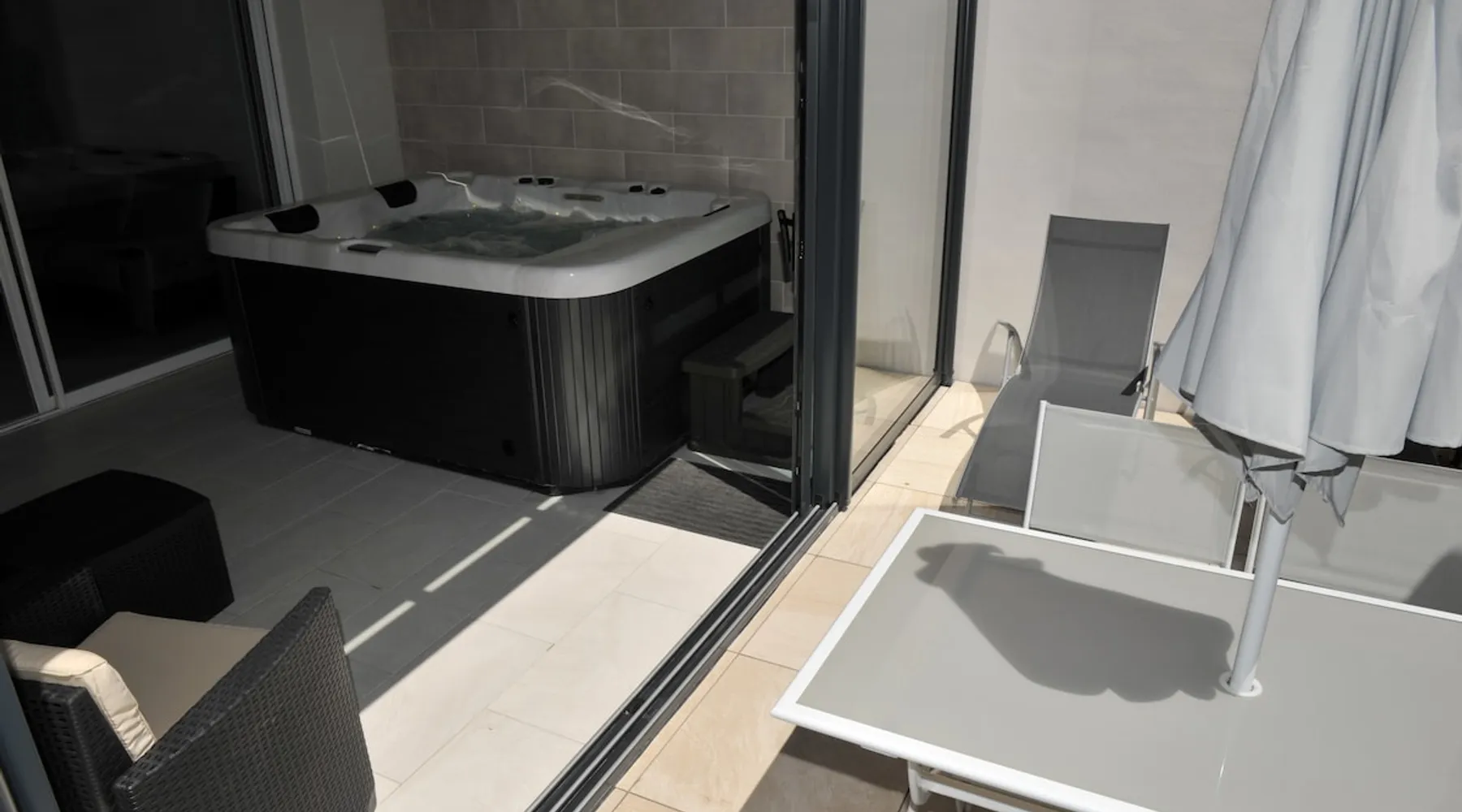 Located on the ground floor of a small building, this charming furnished apartment, with private Jacuzzi usable all year round even in winter, is waiting for you. A stone's throw from the Port and a 5-minute walk from the City Center, this luxury 70 m² apartment will allow you to enjoy the tranquility of the place while being remarkably well located. It consists of a bedroom, a bathroom (Italian shower), a separate toilet, an equipped kitchen, a veranda with jacuzzi and a 25 m² terrace not overlooked The space luxury accommodation with all modern comforts Independent bedroom 2 electric 80 beds a walk-in closet Netflix-connected TVs Linens provided Separate bathroom and toilet Italian shower hair dryer Cooking island American fridge with ice maker and cold water dispenser induction cooktop pyrolysis oven dishwasher microwave mixed senseo coffee maker with pods dishes, utensils dining area table with 6 chairs One living room electric recliner sofa hi-fi stereo box and internet TV Wi-Fi connection bioethanol fireplace Conservatory garden furniture electric blind 3-seater hot tub - 2 seats 1 lying position -42 hydromassage jets -cervical jet - aromatherapy - LED lights -waterfall Terrace 4-seater glass table 2 sun loungers parasol not overlooked free street parking space near the accommodation (maximum 100 m) Guest access The hot tub is just for you and your privacy is preserved
