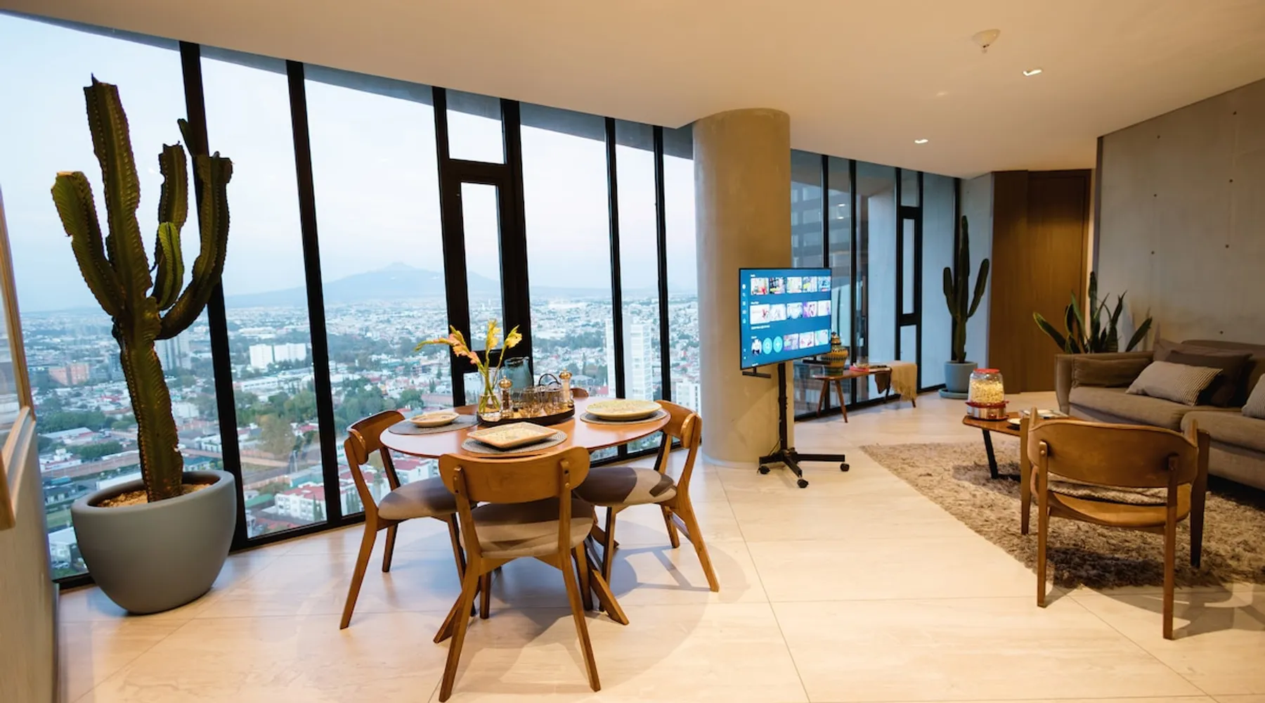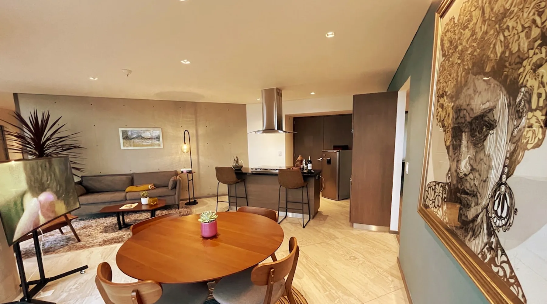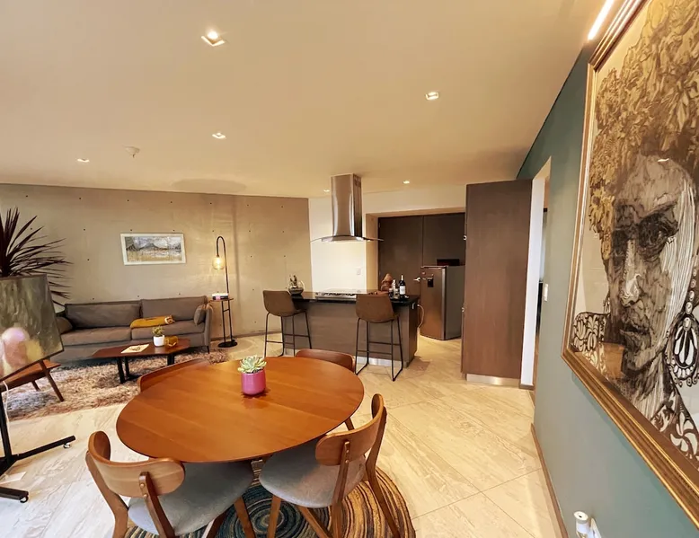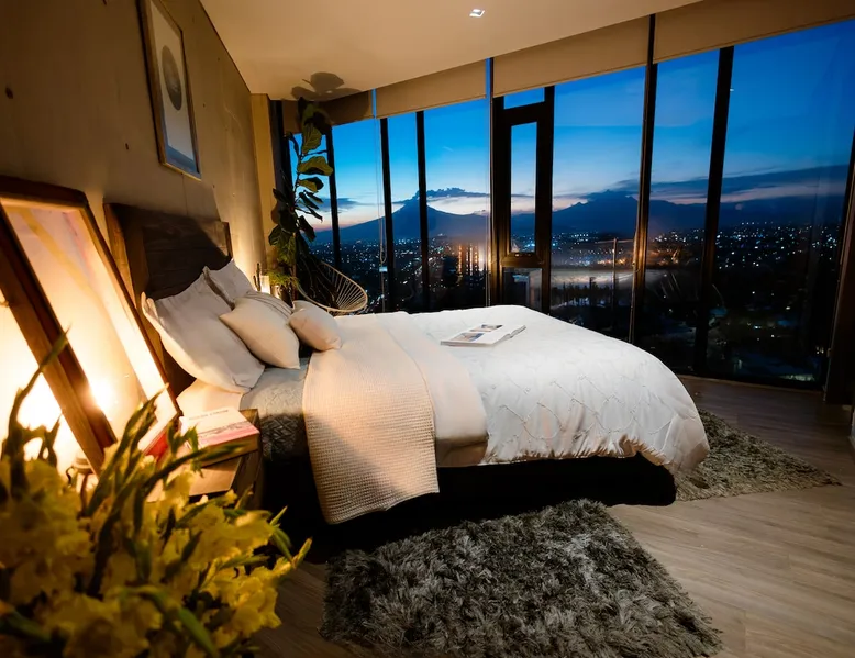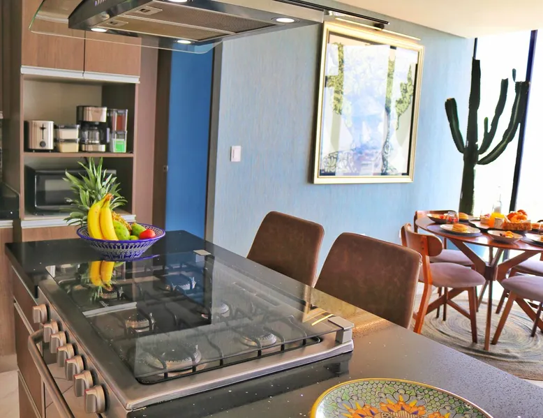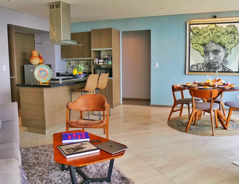 Wake up to a unique volcano landscape from the 18th floor. A spacious loft that blends style and comfort—ideal for families or longer stays. Features comfortable Queen beds and accommodates up to 6 guests (2 people each bed). Fully equipped kitchen, electric blinds, and high-speed Wi-Fi. 24/7 gym, 360° rooftop, covered parking, and a pet-friendly building with on-site guard and 24/7 security. Superhost with 4 years of outstanding reviews. The space 🌋 Wake up to volcano views Enjoy sunrises and sunsets from the 18th floor with completely unobstructed views. Every room offers a beautiful panorama of Puebla and Cholula. 🏢 Modern, bright loft Spaces designed for comfort and relaxation in a new building with excellent natural light. 🛏 Private spaces 3 spacious bedrooms with Queen beds and modern furniture Crib available Pet-friendly (please inform us if bringing more than one pet) 2.5 bathrooms conveniently located by the bedrooms Electric blackout blinds for restful sleep or natural daylight 🎬 Entertainment & comfort 55” Smart TV, high-speed Wi-Fi ideal for remote work, video calls, and streaming. Portable air conditioner for added comfort. 🍳 Fully equipped kitchen Stove, oven, microwave, coffee maker, kettle, toaster, dishes, glasses, and utensils. 🛡 Safety & privacy 24/7 security with cameras in common areas and on-site security personnel. Smart lock with personalized code and emergency exit access. 🏢 Building amenities Rooftop garden with 360° views, game room, library, and kids’ area. Gym with modern equipment. 📍 Prime location Quick access to the airport and highway without crossing the city. Located across from Centro Mayor (shops, banks, and supermarket). 5 min to Cholula, 10 min to Angelópolis, 13 min to downtown Puebla, 25 min to Val’Quirico and 30 min to Africam Safari. Guest access 🔑 APARTMENT ACCESS 📲 Access will be sent via a QR code—no keys needed. 🚪 With this QR, you’ll be able to enter from the building entrance elevator directly to the apartment. 📬 We’ll send the code before your arrival, and it will give you access to: 🌇 the rooftop 🏋️ the gym, 🧸 and the kids’ playroom. Other things to note With direct access to the Mexico–Puebla highway, you can quickly reach Angelópolis, Cholula, or Val’quirico. Ideal for those seeking fast mobility— the airport is just minutes away with no need to cross city traffic. Also close to shopping centers, hospitals, and local universities. **ROOFTOP, PATIO, & GYM** You will have access to these amenities, but only for visiting; private events are not allowed. ** ROOFTOP Don’t miss out on the spectacular views from the 25th-floor rooftop—360-degree views of all of Puebla. All access is by prior reservation and depends on the administration. ** PATIO: There is a fire pit area that’s perfect for enjoying some fresh air and having a nice afternoon with the people staying in the apartment. Please ask us beforehand if you’d like to use the fire pit, as we need to prepare it in advance for your stay (there is an additional cost, but it’s just for the gas, which is very inexpensive). ** GYM: with a treadmill, stair climber, a set of weights, and a leg extension and chest machine. Toilet guidance. In Mexico, many buildings have sensitive plumbing. To avoid blockages, please do not throw toilet paper into the toilet. We provide bins next to each toilet for paper disposal. This helps keep everything running smoothly and prevents plumbing issues. ** WE OFFER AIRPORT TRANSFER SERVICES.** This seasonal setup was created to celebrate Mexico’s Día de Muertos — a temporary touch to honor local tradition.