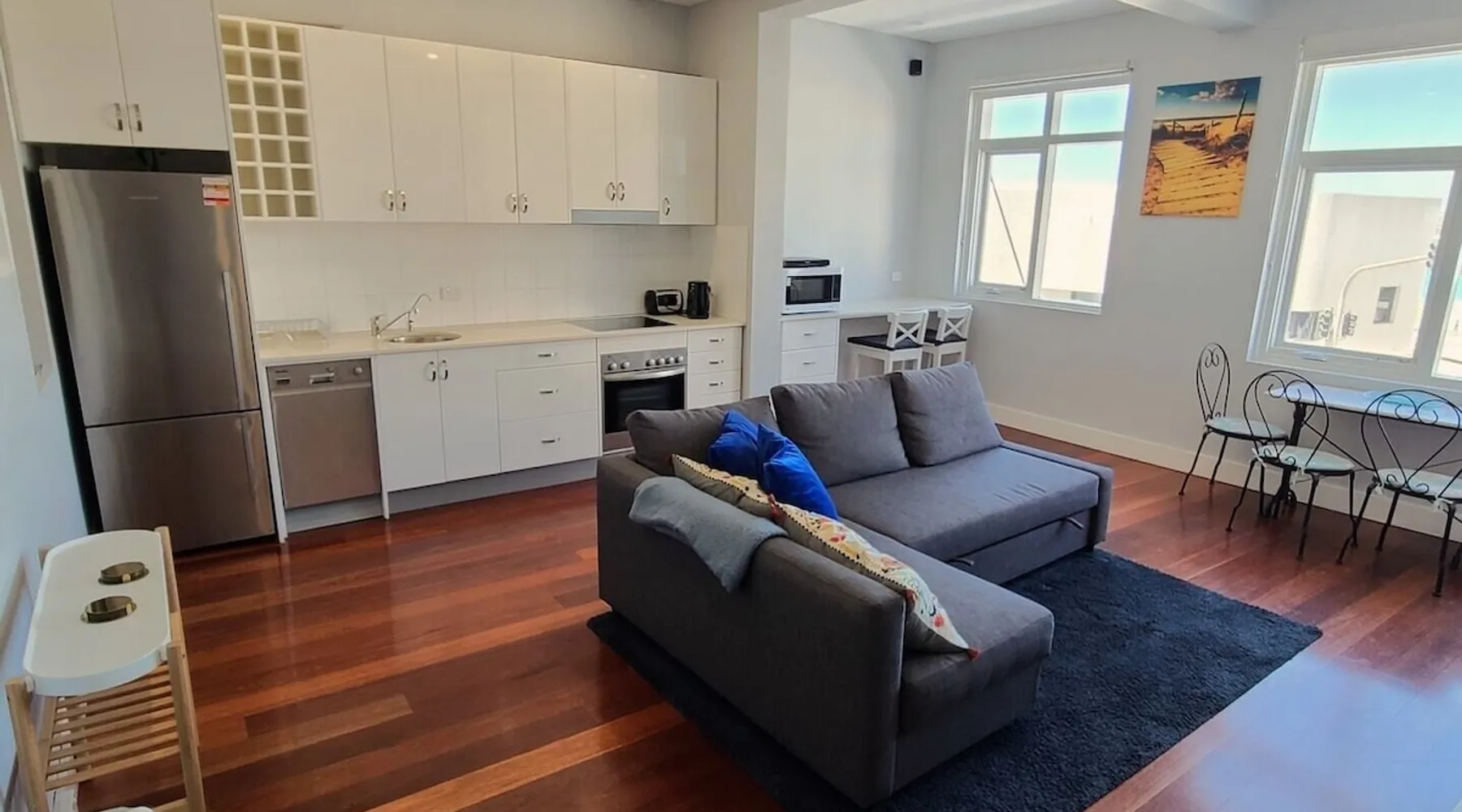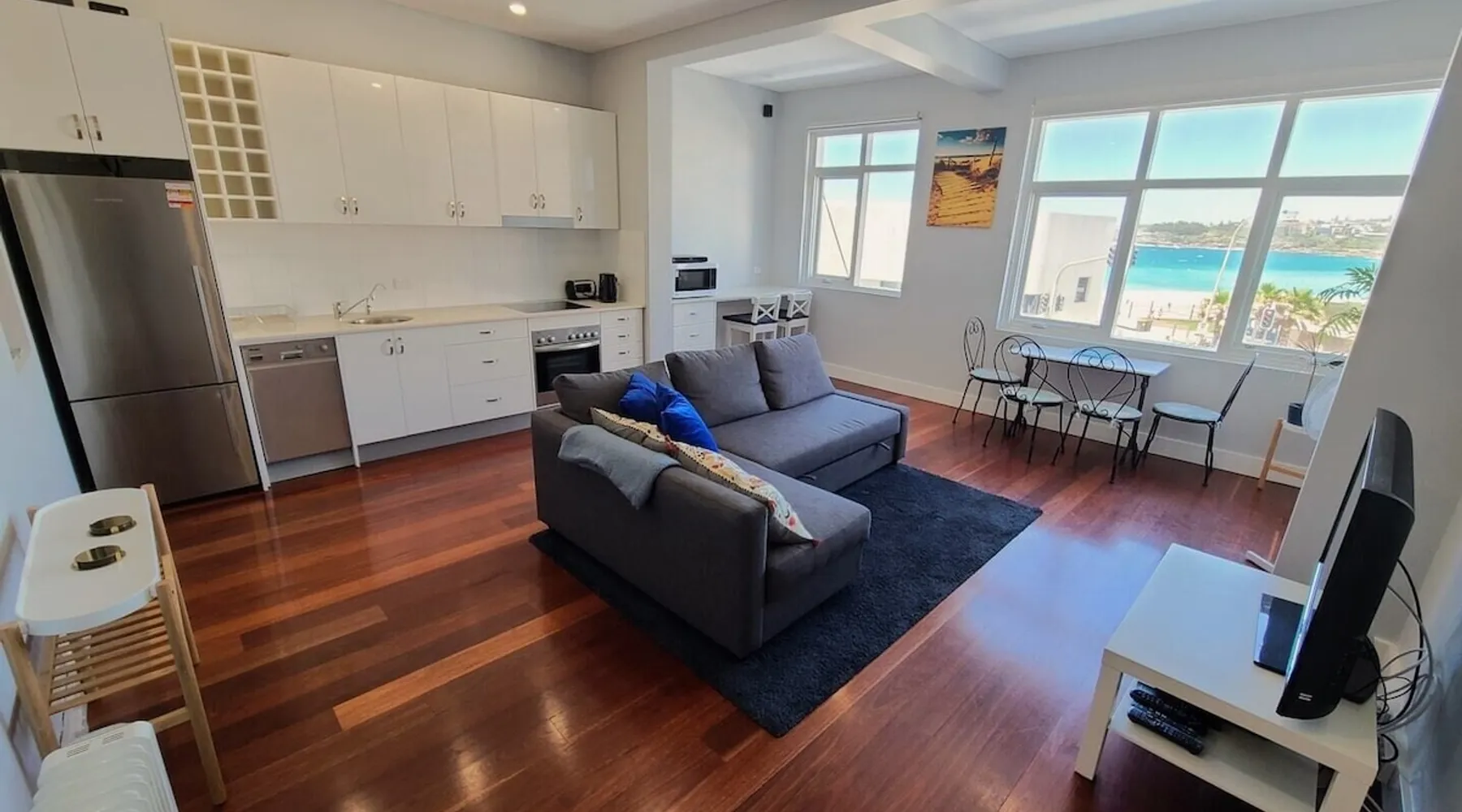Bondi Beach View Delights This well-appointed one-bedroom with sofa bed apartment in North Bondi, located opposite the beach, has stunning views over Bondi Beach with very comfortable accommodation for your stay and everything you need for up to 4 guests including a well-equipped kitchen, all bedding, towels and free Wifi. Please read the full listing below before booking to ensure you have all the important information to give you the best possible stay. A very spacious one bedroom open plan fully furnished apartment just metres from the beach. Capable of sleeping up to four adults with one queen size bed in the bedroom and a double sofa bed in the living room. This apartment has everything a holiday visitor may need and we try hard to keep it in a condition we would expect when renting a holiday apartment ourselves. Air conditioning is provided by two portable air conditioning units in the living room and bedroom which vent out through the windows to help keep the apartment cooler on warm days. The bathroom has a large walk in shower as well as a laundry area with a washing machine. A large drying rack for clothes is provided. There is a washing machine in the apartment and additionally coin-operated washing machines and dryers in the communal laundry at the rear of the property. This apartment has a segmented but open plan layout. The front door opens into the spacious bedroom area and from there you walk through into the living room which is seperated by a large, open archway. Although it hasn't been an issue in any way for previous guests we prefer to make it clear there is no closeable door between the living and bedroom spaces. The bathroom does of course have a door. There is no parking with the apartment and all street parking in the area is time restricted to 1 or 2 hours before having to move your car during weekend working hours so we STRONGLY do not recommend guests come with cars. Parking spaces by the day may be available to rent in the area and for guests that must have a car we recommend checking parking rental websites such as Parkhound. We need to advise prospective guests that a house directly adjacent to this building is being demolished and rebuilt between February 2024 and April 2025. The are other apartments between this one and the worksite however so we'd expect any noise levels to be reduced. During this time however, there may be some noise transmission Monday to Friday 7am to 5pm and Saturday 8am to 3pm. If you are coming to Bondi to be a tourist and expect to be out during the daytimes exploring the city, then this may well not effect you too much but we wanted to make guests aware in advance so they can make an informed decision before booking. We are also advised that between April and June 2024 the lobby and common areas in this building will be renovated but they are a relatively a small area and we don't expect this will cause major impact beyond minor inconvenience Please note if your stay is to include the nights of Christmas or New Year's Eve a 5 night minimum stay is required. We just make guests aware that the portable air conditioning units cannot be used overnight between the hours of 10pm and 7am due to council regulations. There is a fan available for cooling during that period however. This property is managed by Holiday Rentals Australia, a professional and licenced dedicated holiday rental agency. By choosing to book with professionals, you can be assured your stay is in the best possible hands. Please note this is strictly a no smoking apartment. From street level guests must climb stairs to the apartment as it is located on the first floor of a building with no lift. All the apartments we manage come with a welcome letter and property information so you know how everything works to ensure you can get the most out of your stay. There is also a local map with some highlights such as the local supermarket, bus stops and train station plus maps of Sydney for those not familiar with the area. All bedding and towels (note one bath towel per person) are included along with beginner basics such as tea, coffee, sugar, milk, shampoo, bodywash and toilet paper to get you through the first few days. If you require use of the sofa bed please book as minimum 3 guests (even if just 2 are staying) as there is an extra charge for the sofa bed bedding. Prior to arrival we ask all guests to quickly fill in some contact information and tell them a little bit more about how we hope they'll look after the apartment. As we continue to improve the property over time the furniture and furnishings may change from those shown in the photos. Bookings over Chistmas require a minimum 4 night stay and New Year's Eve requires a minimum 4 night stay, bookings made for less than this requirement will need to be cancelled. THIS SECTION CONTAINS IMPORTANT INFORMATION, PLEASE MAKE SURE YOU READ BEFORE BOOKING : Bookings over Chistmas require a minimum 5 night stay and New Year's Eve requires a minimum 4 night stay, bookings made for less than this requirement will need to be cancelled. This is a quiet building and we expect all guests to be considerate of the neighbours. Please treat the apartment as your own but please no wild parties. We kindly ask guests to wash and put away all used items from the kitchen and leave any rubbish in the external rubbish area when they leave. If you require use of the sofabed for your stay please book for 3 or 4 people to ensure the small additional cost for the bedding is included in your booking. Occupancy of one or two people is understood to just use the bedroom. Prior to arrival, like staying in a hotel, we ask guests to fill in a registration form to ensure we have full contact details for them. This form also provides more information about the property and how to ensure you get a 5 star review. Languages English