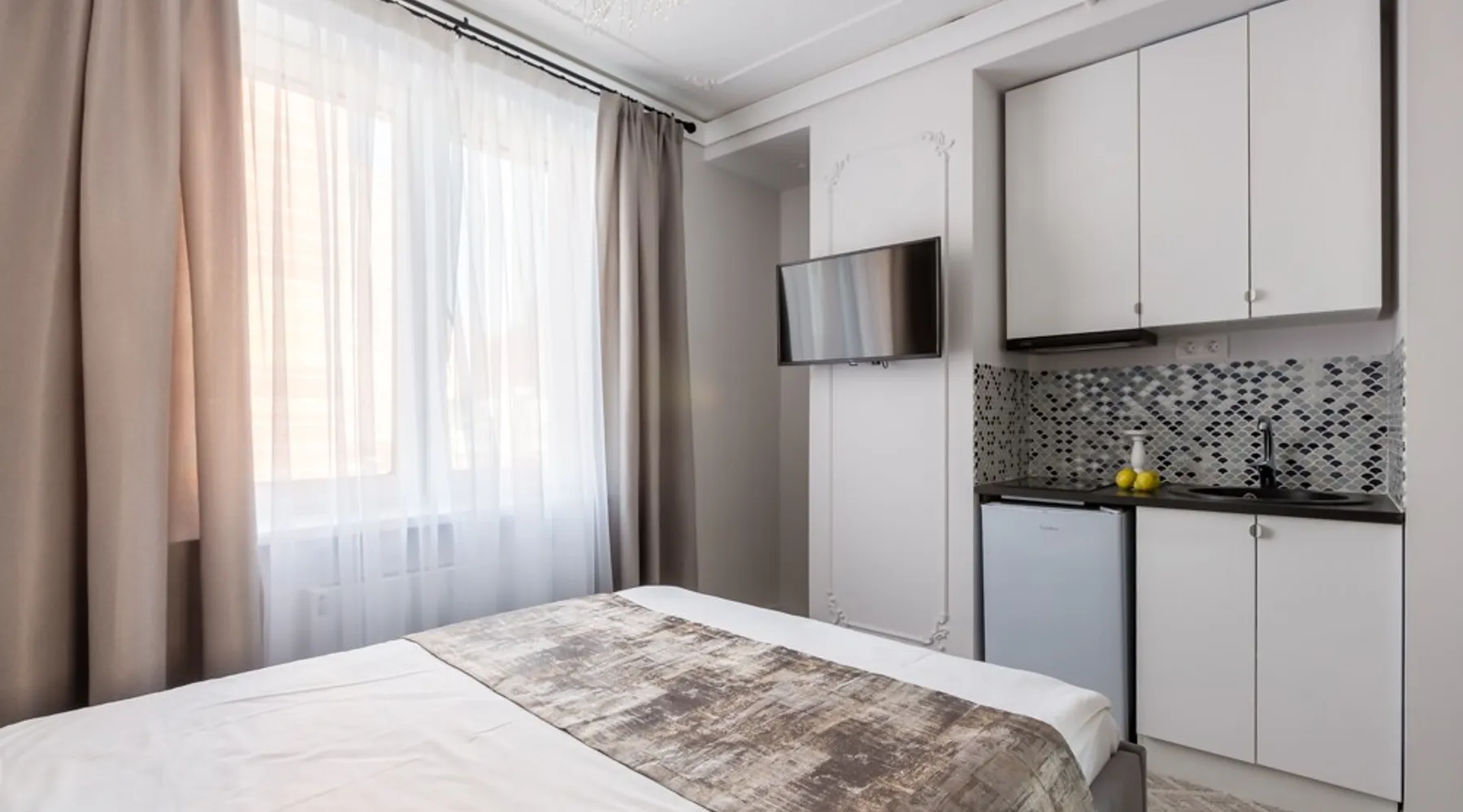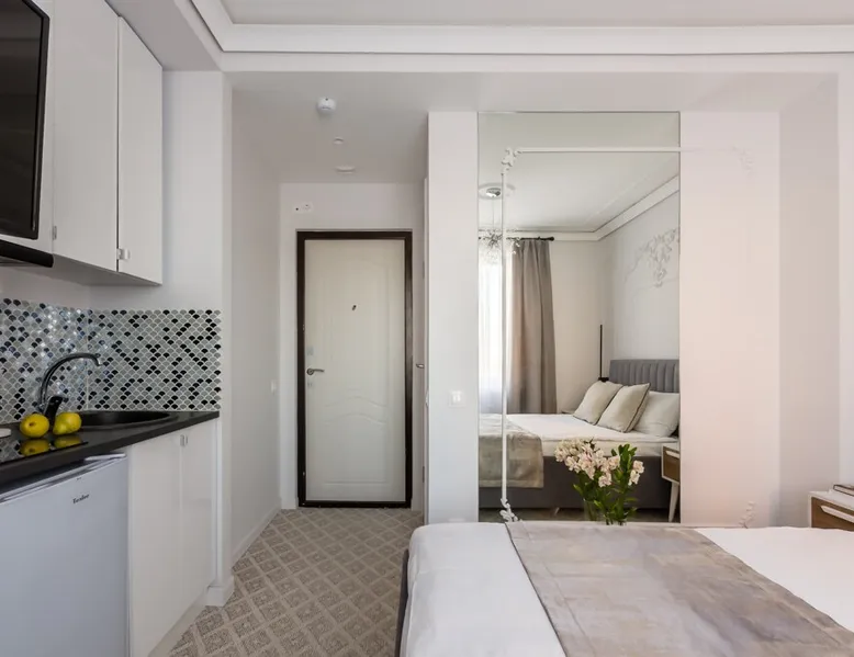 The apartments are located near the railway station Lyubertsy The space Rent a modern studio in the residential estate "Clouds" with fresh designer repairs, only 300 meters from the railway station Lyubertsy-1( 3 min walk). The apartment is designed for 2 people, the apartment has a new comfortable double bed. The photos of the apartment fully correspond to the reality! Not far from the apartment there is a shopping and entertainment center, chain supermarket, beauty salon, fitness - club,pharmacy, bank branches, Customs Academy. The studio is equipped with everything you need for a comfortable stay. Home appliances: plasma TV, fridge, electric kettle, microwave, stove, iron, hair dryer ,washing machine, ironing board. There are all necessary utensils for cooking and other pleasant things. The price includes unlimited high-speed Internet, snow-white sets of linen and towels, as well as hygiene supplies. The apartment is regularly cleaned professionally. Check-in to the apartment is possible at any time convenient for you after 15: 00, check-out is before 10: 00. The apartment is strictly for non-smoking guests! Guests over 21 years old! Guest access The apartment is perfectly clean and has all the amenities for a comfortable stay: • Double bed • Unlimited high-speed internet (wi-fi) • Kitchen fully equipped for cooking: tiles, fridge, microwave, electric kettle, water filter,tableware, tea, sugar, salt, etc. • The bathroom also has everything you need: washing machine, hairdryer, hygiene supplies, washing powder, etc. • Bedding sets and terry towels, perfectly clean and ironed. • Television • Ironing board, iron • Shoe cleaners, slippers and other nice things :) All the photos are true. Each check-in is preceded by a professional cleaning service. The final cleaning of the apartment is included in the price. If you stay with us for more than 10 days, you will have a free professional cleaning service every 7 days. In addition, cleaning can be arranged at any convenient time for an additional fee. Other things to note Self check-in is possible at night (from 23:00 to 06:30) Please note that we do not accept guests under the age of 21.